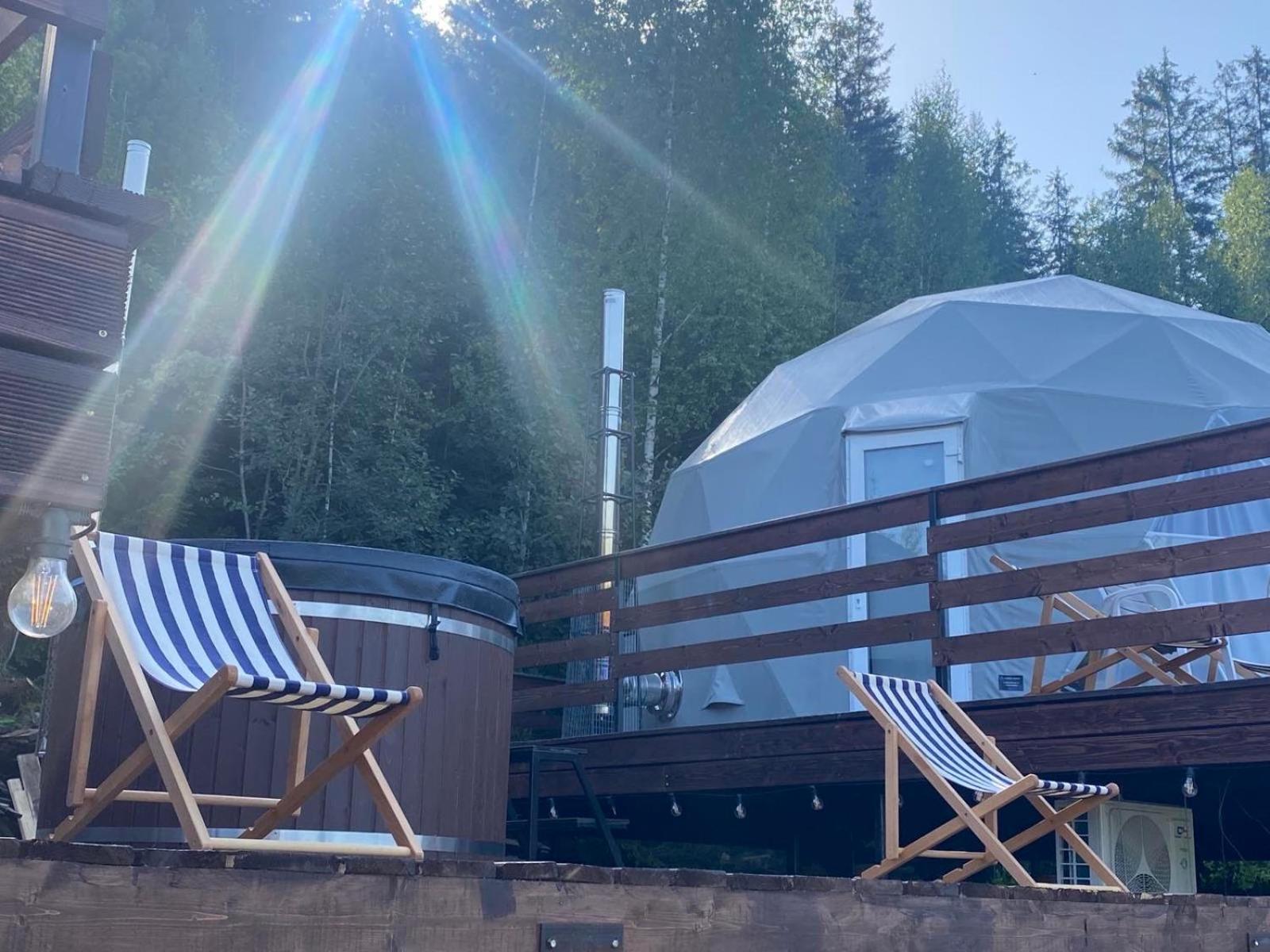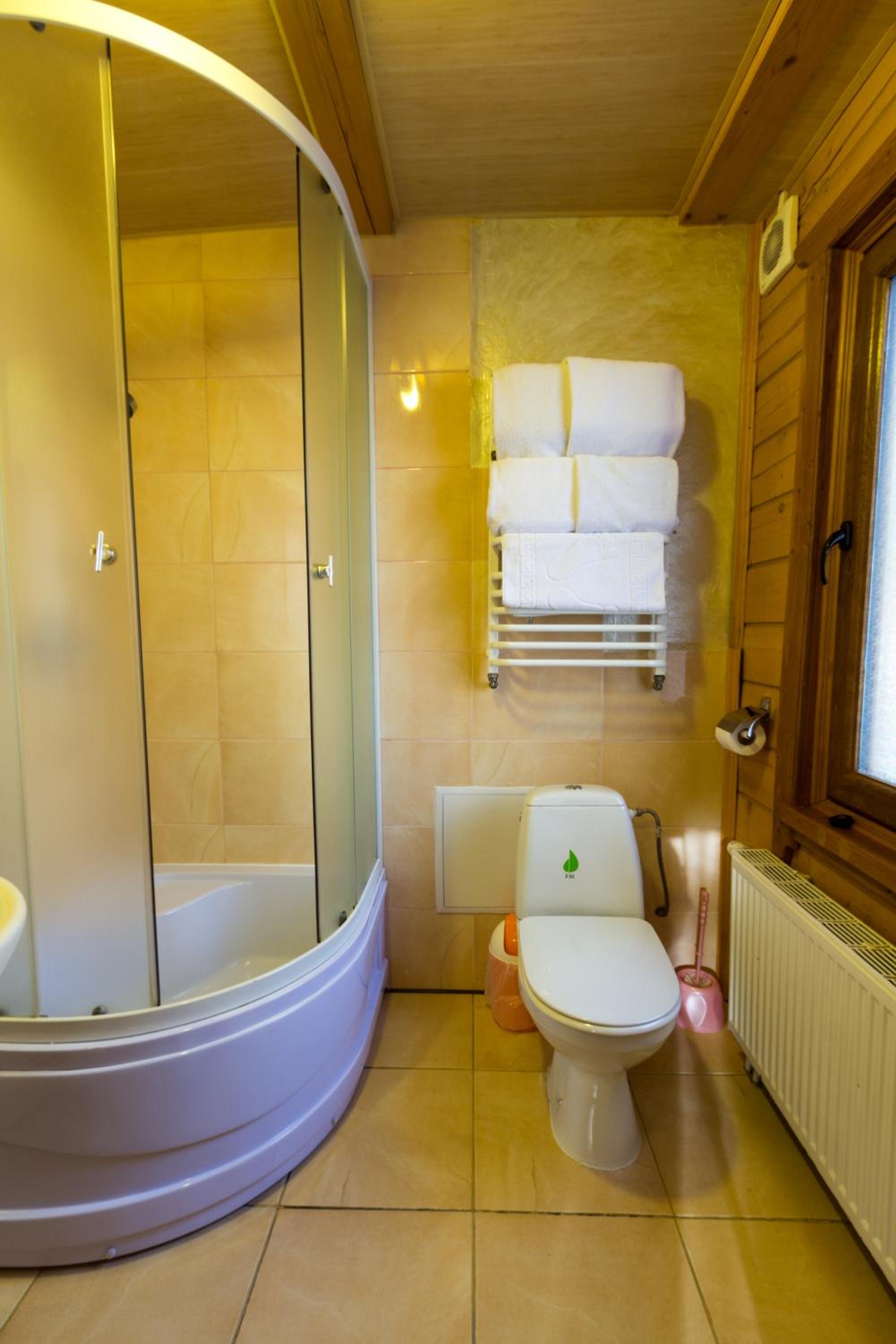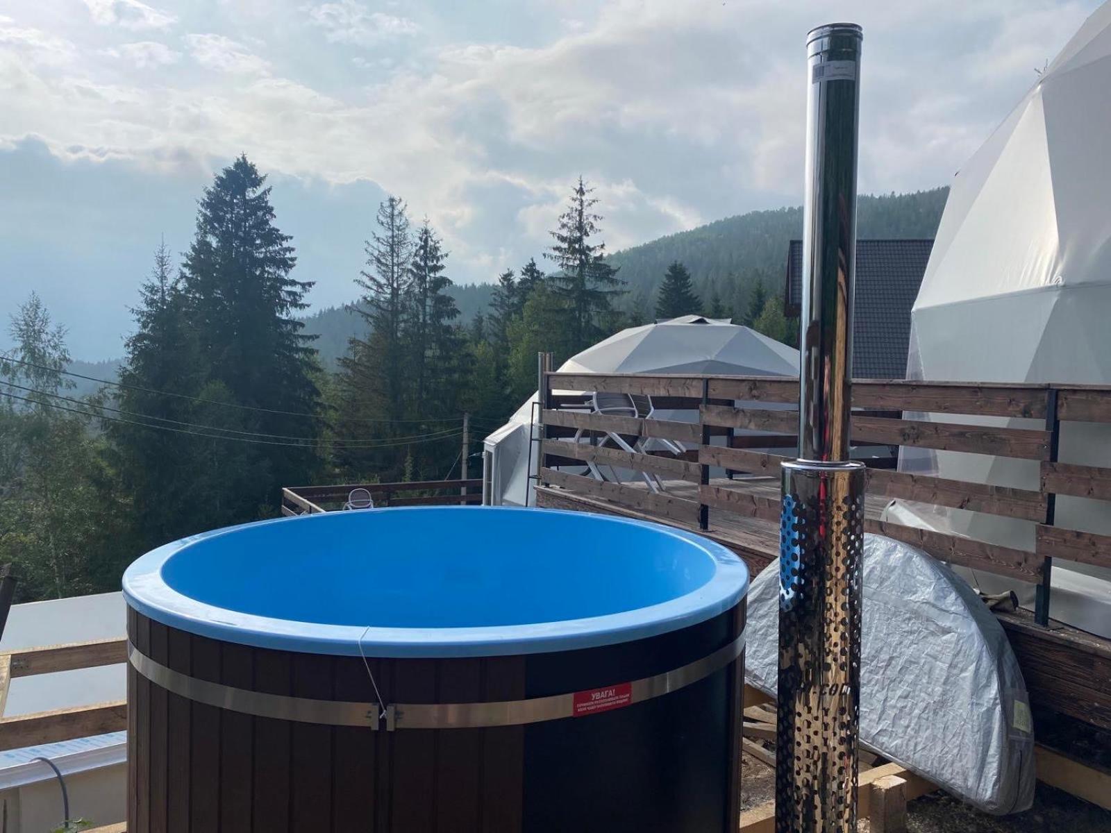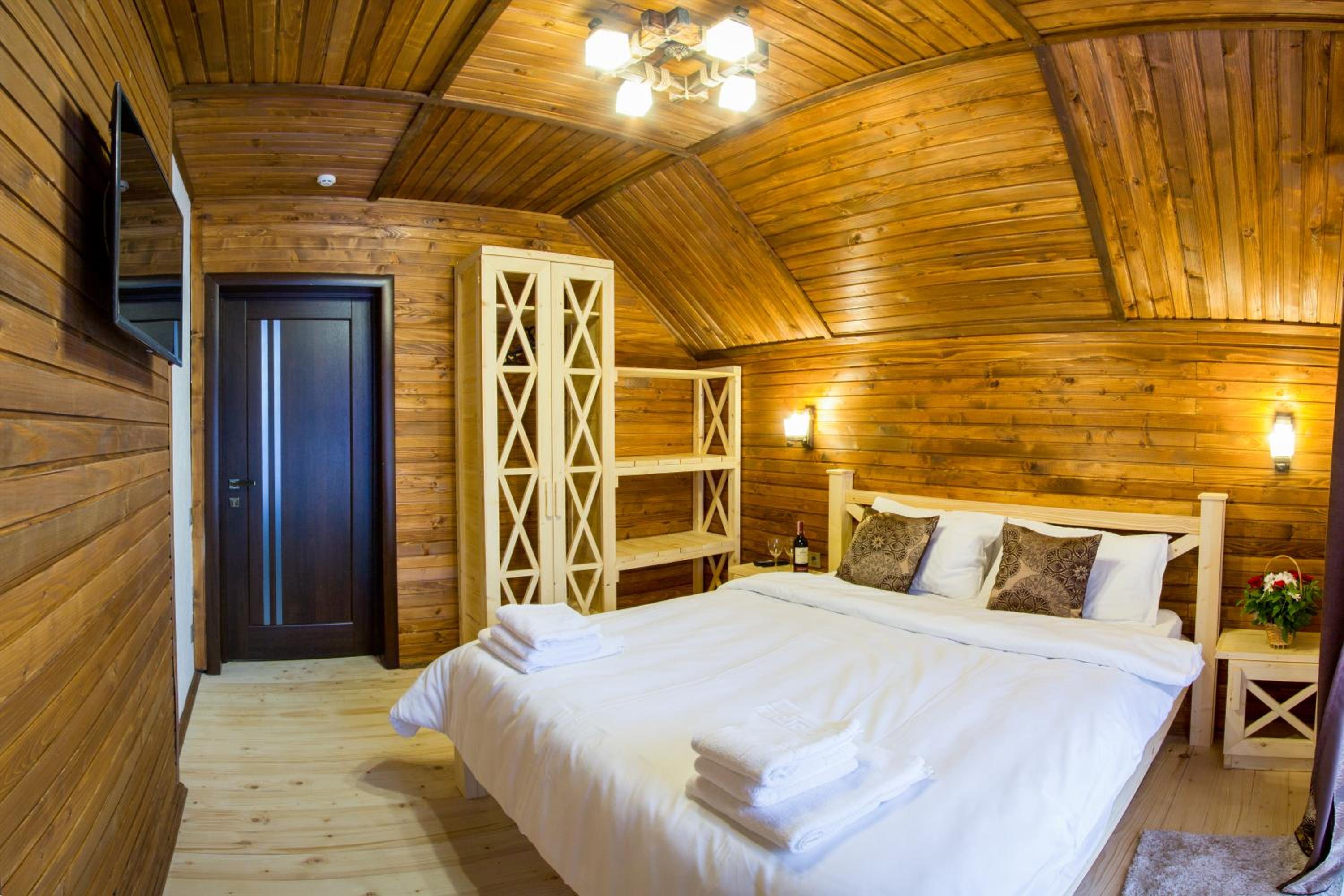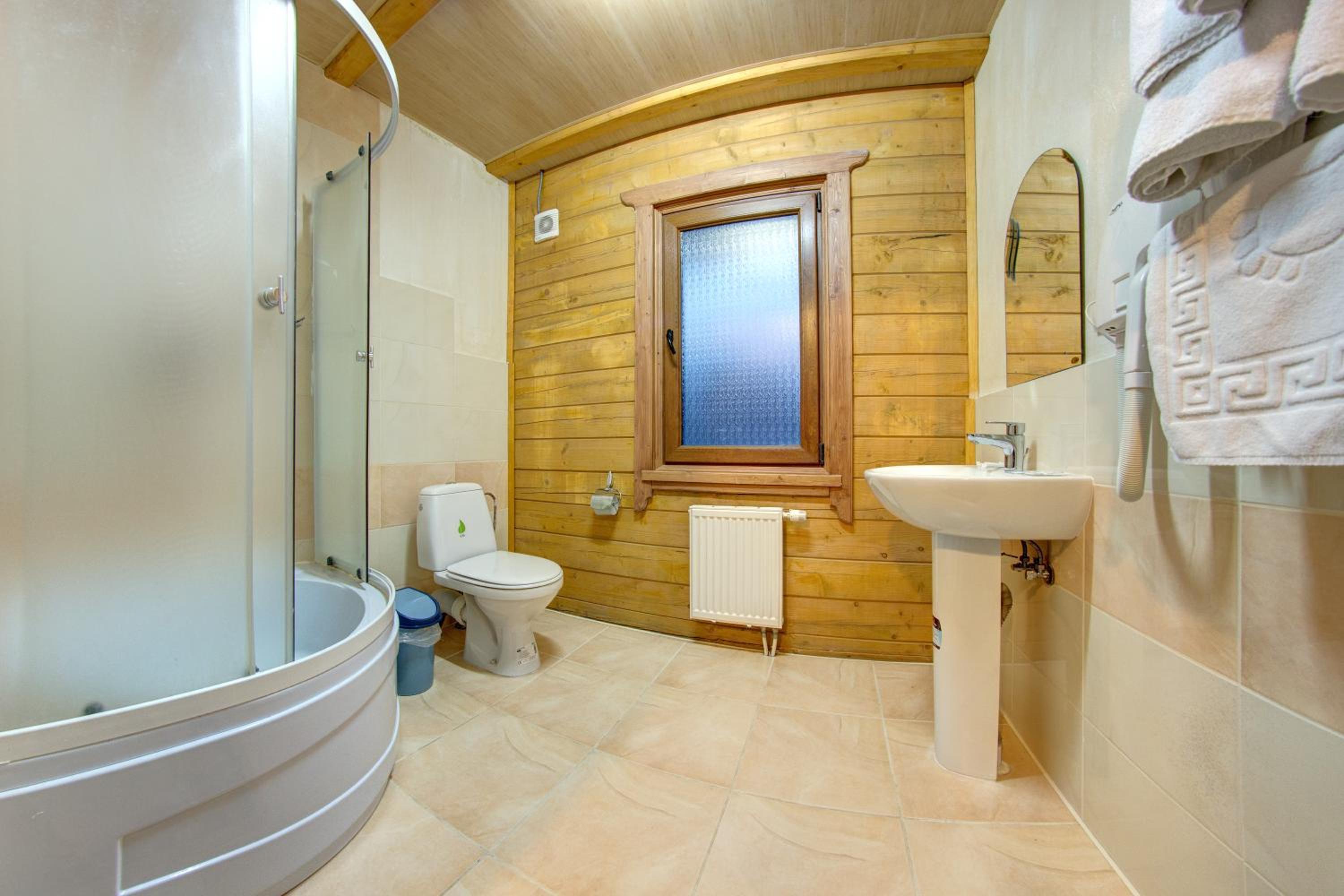 Дуже смачна їжа, великі порції. На території є все необхідне для комфортного відпочинку: басейн, чан, гойдалки, батут, ресторан, альтанки для відпочинку, шикарні краєвиди. Є парковка, котеджі зручні для проживання родиною. Персонал завжди допомагав у вирішенні питань.