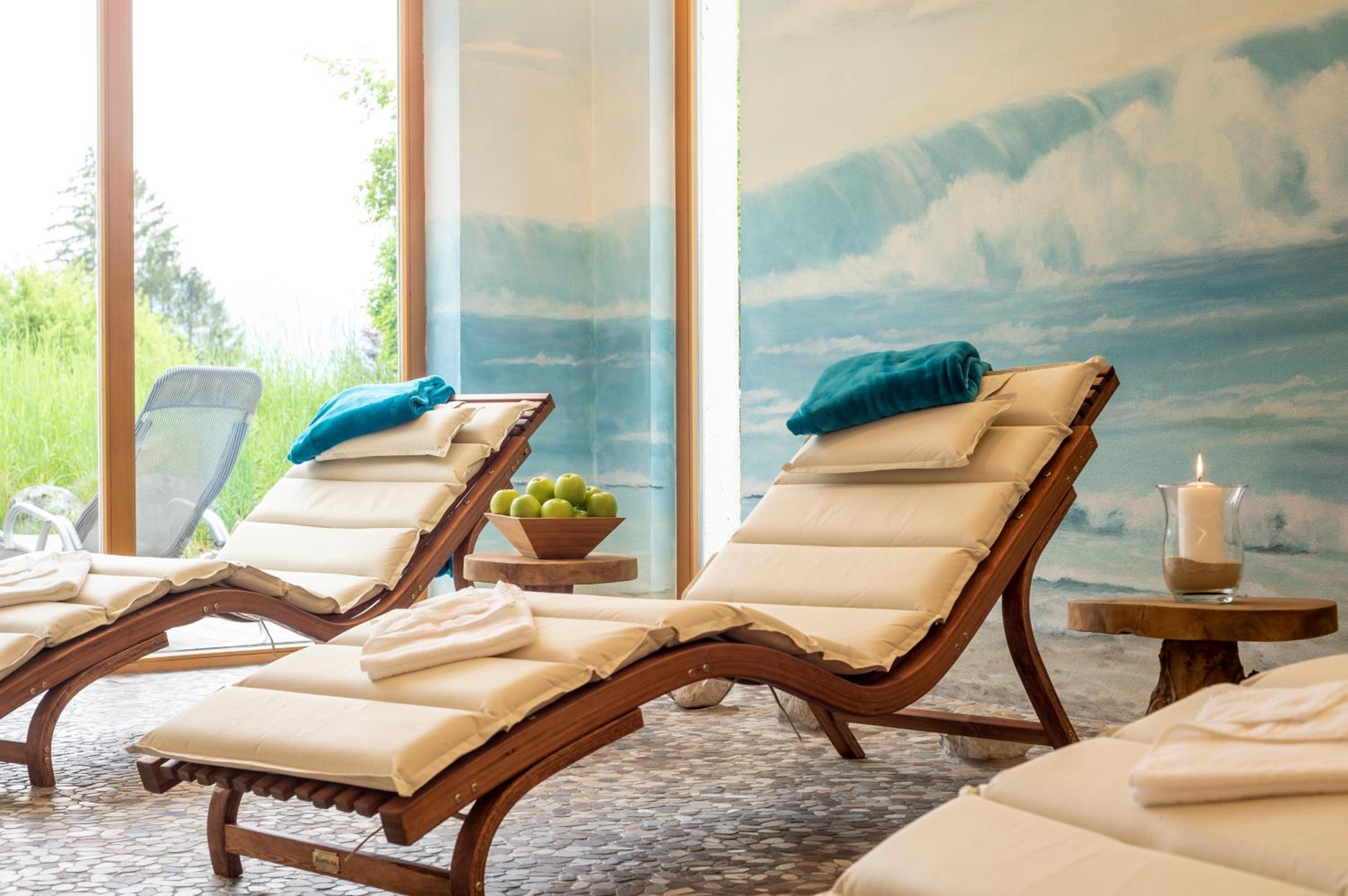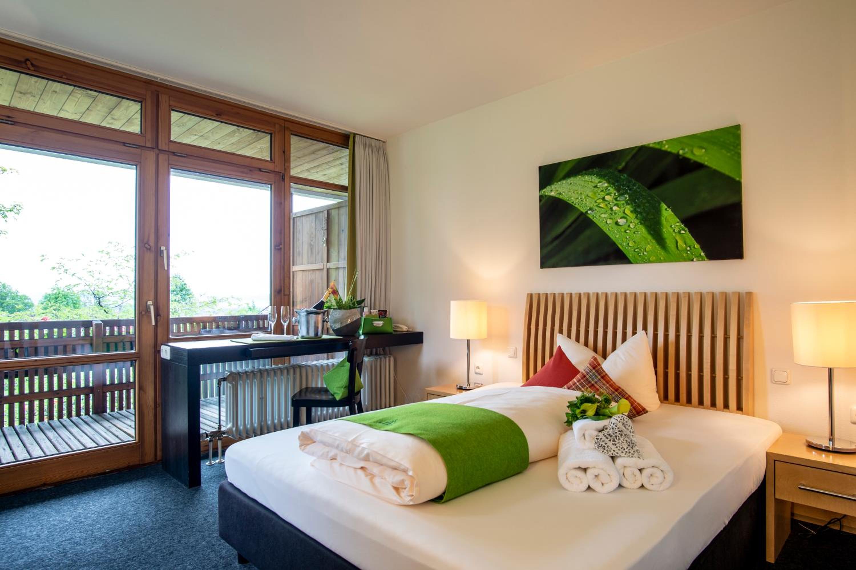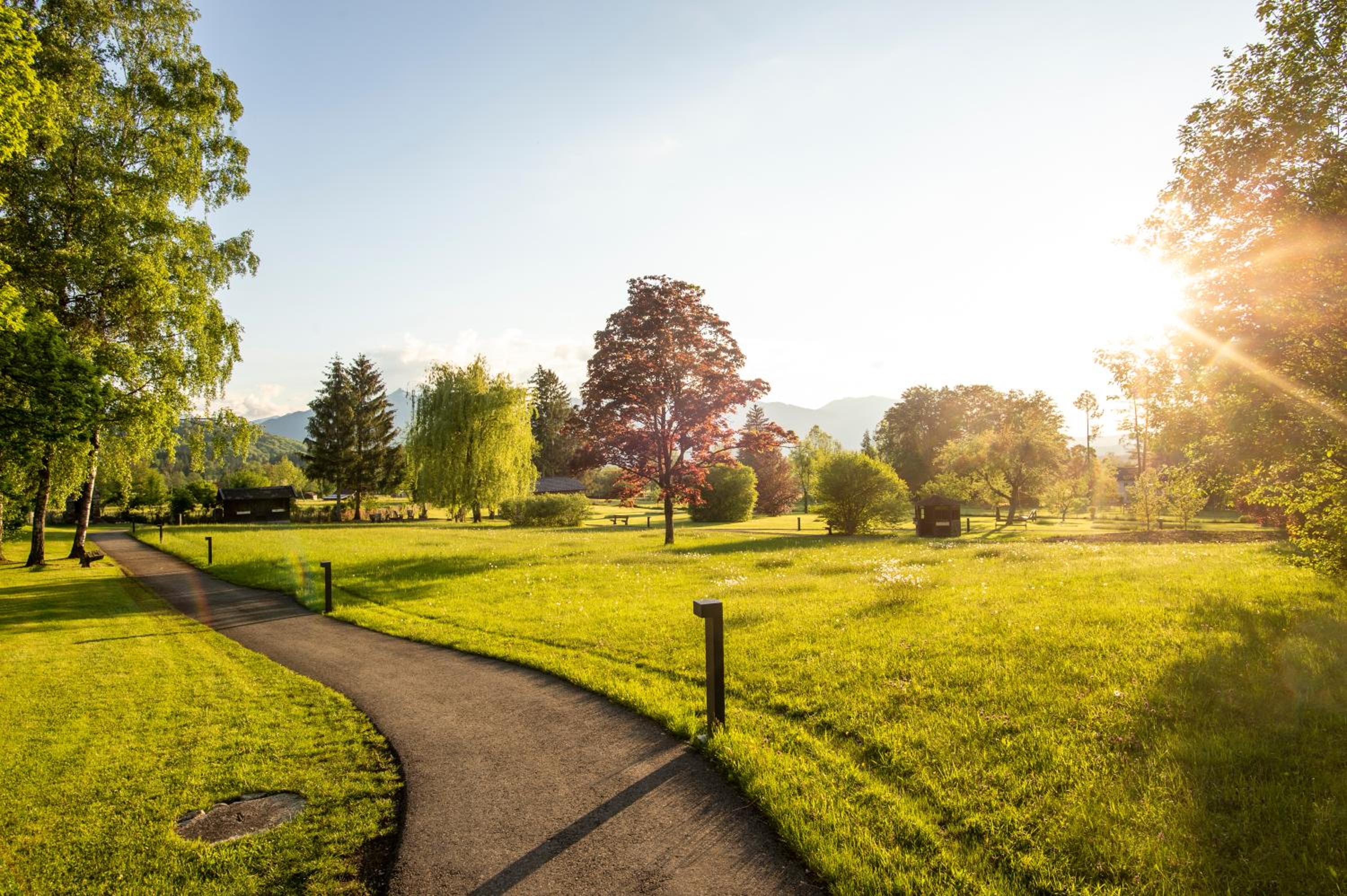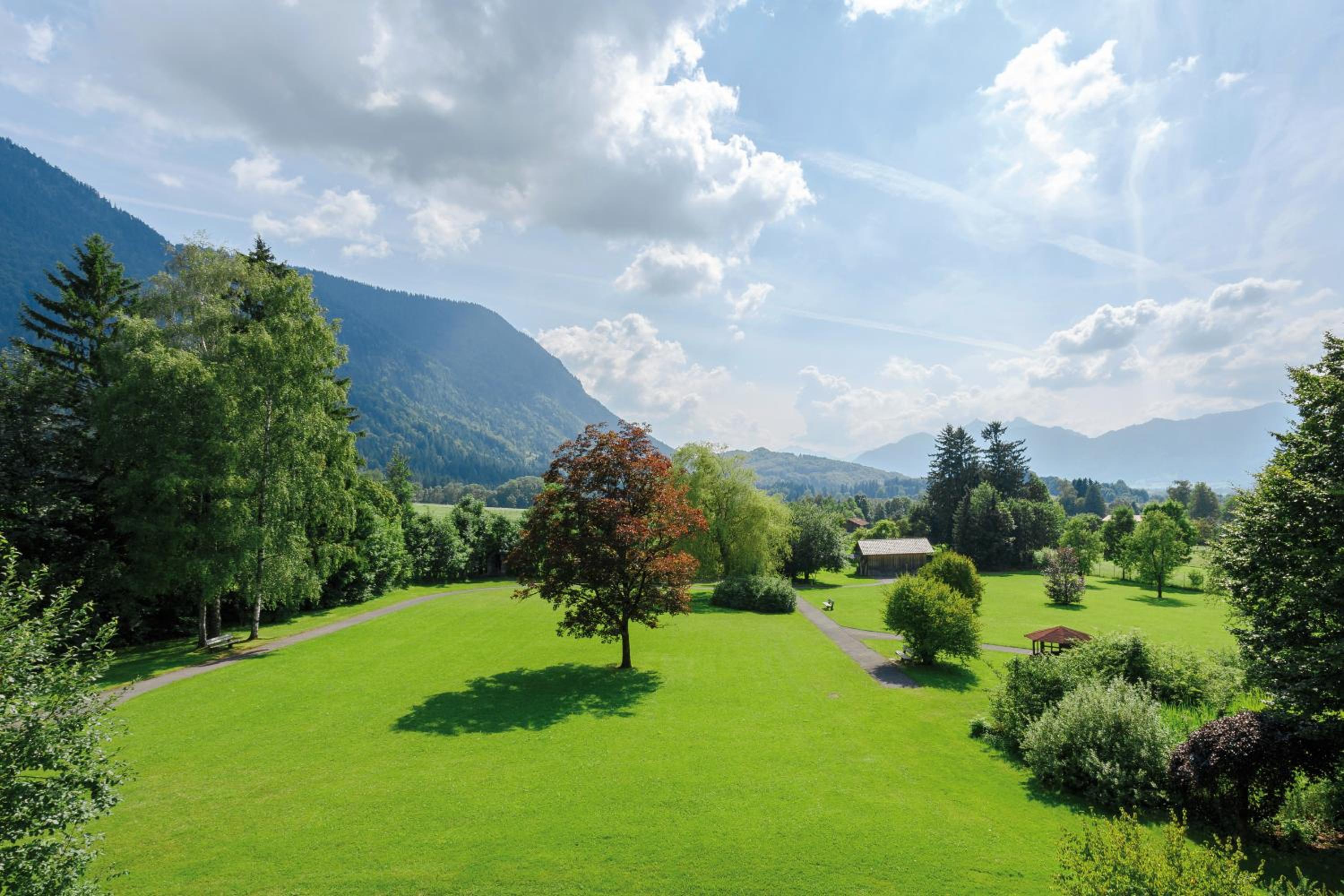 Impressive Panoramic Views: Nestled within a 25,000 m² park, our alpine-style hotel offers balconies and terraces with breathtaking vistas of the Alps.