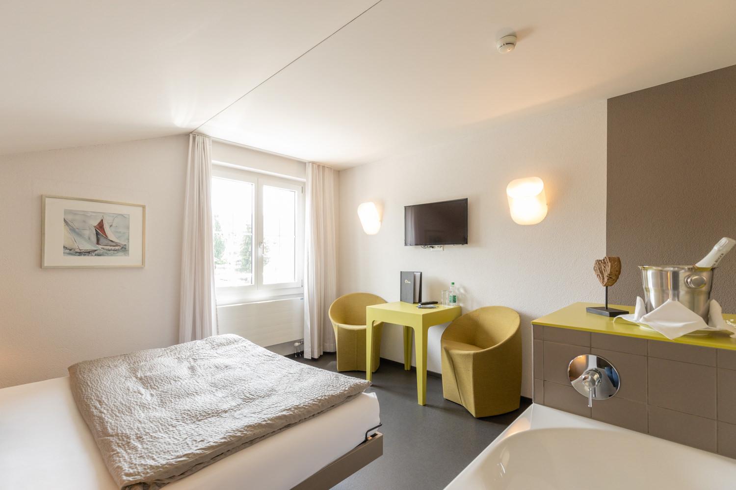 Hotel Restaurant Sternen offers comfortable rooms with modern amenities including flat-screen TVs and private bathrooms. Enjoy a restful night's sleep with cozy bed linen and towels provided.