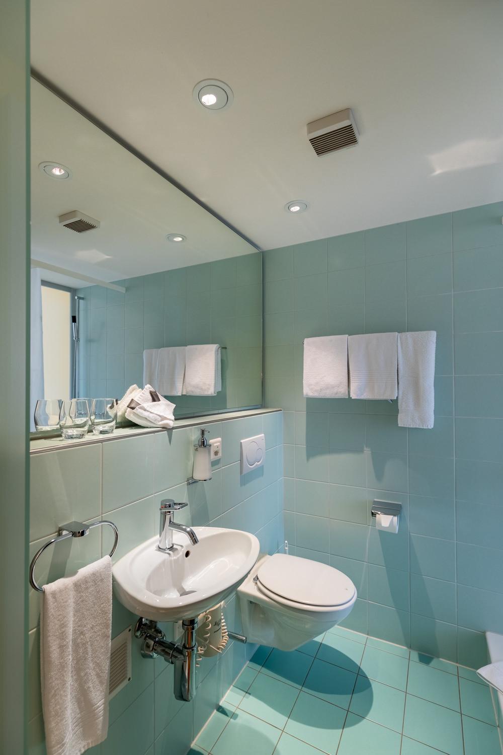 Kleine Zimmer, Bad umständlich eingerichtet, keine Klimaanlage, kleiner Lüfter leihweise