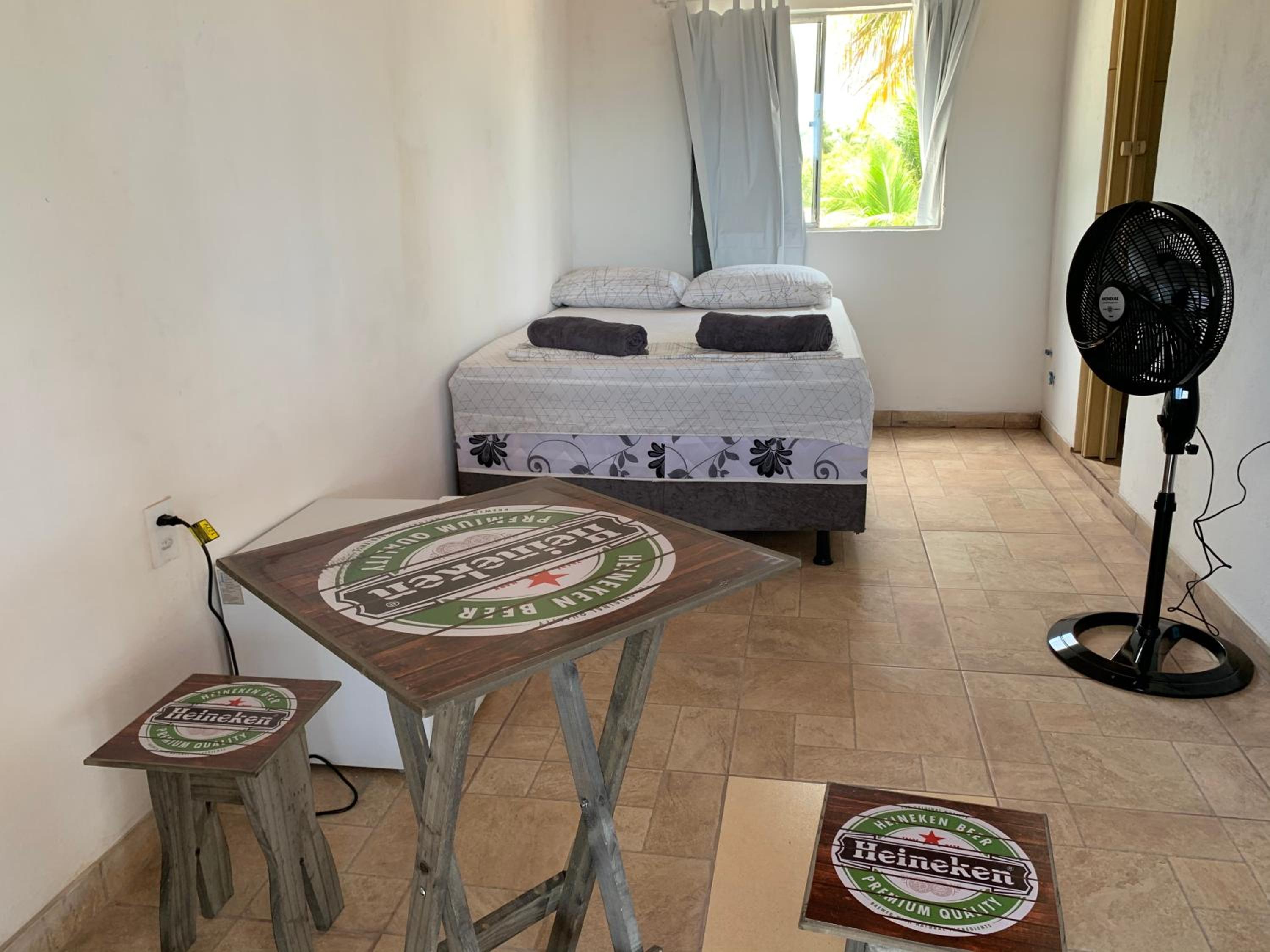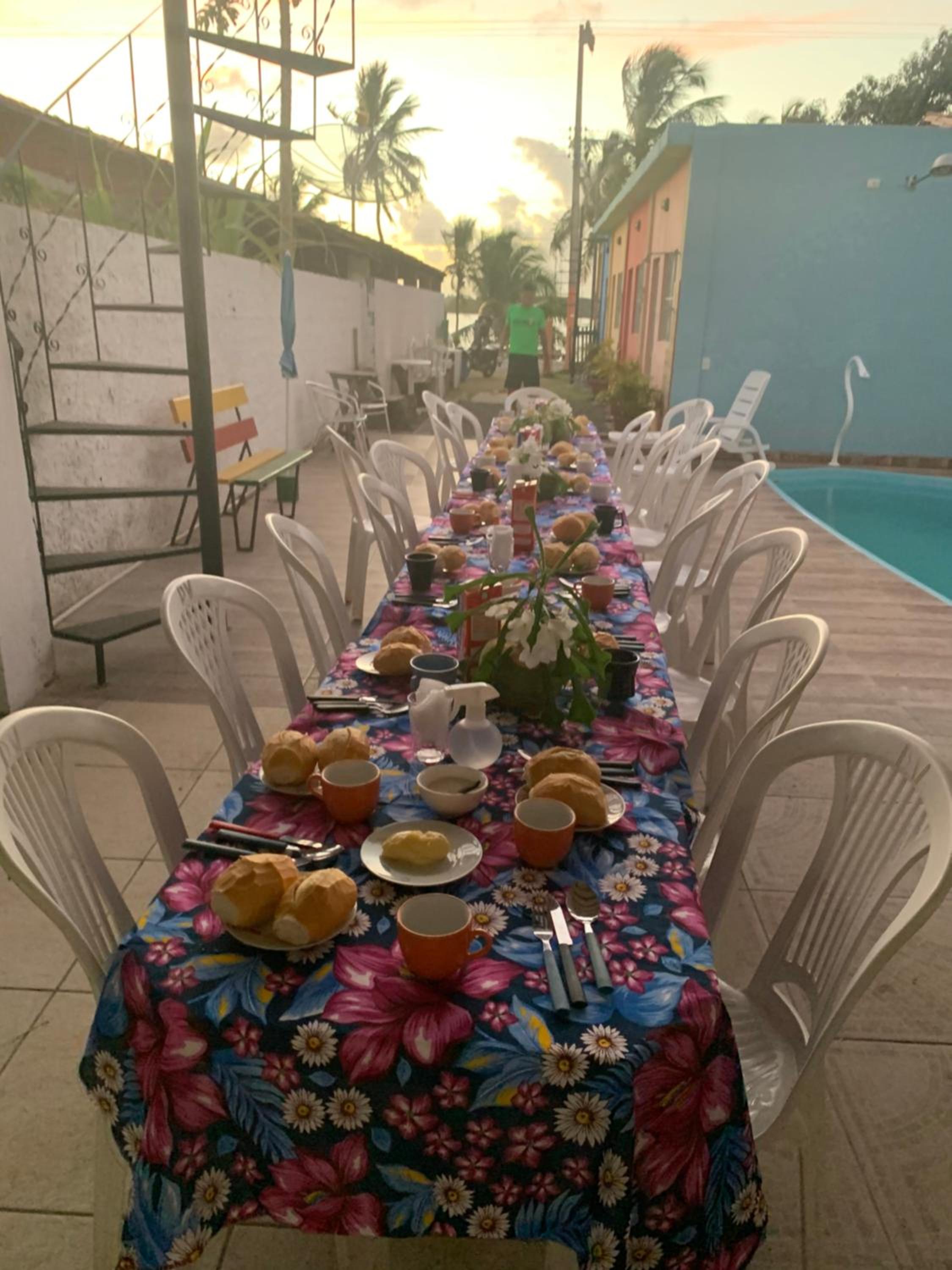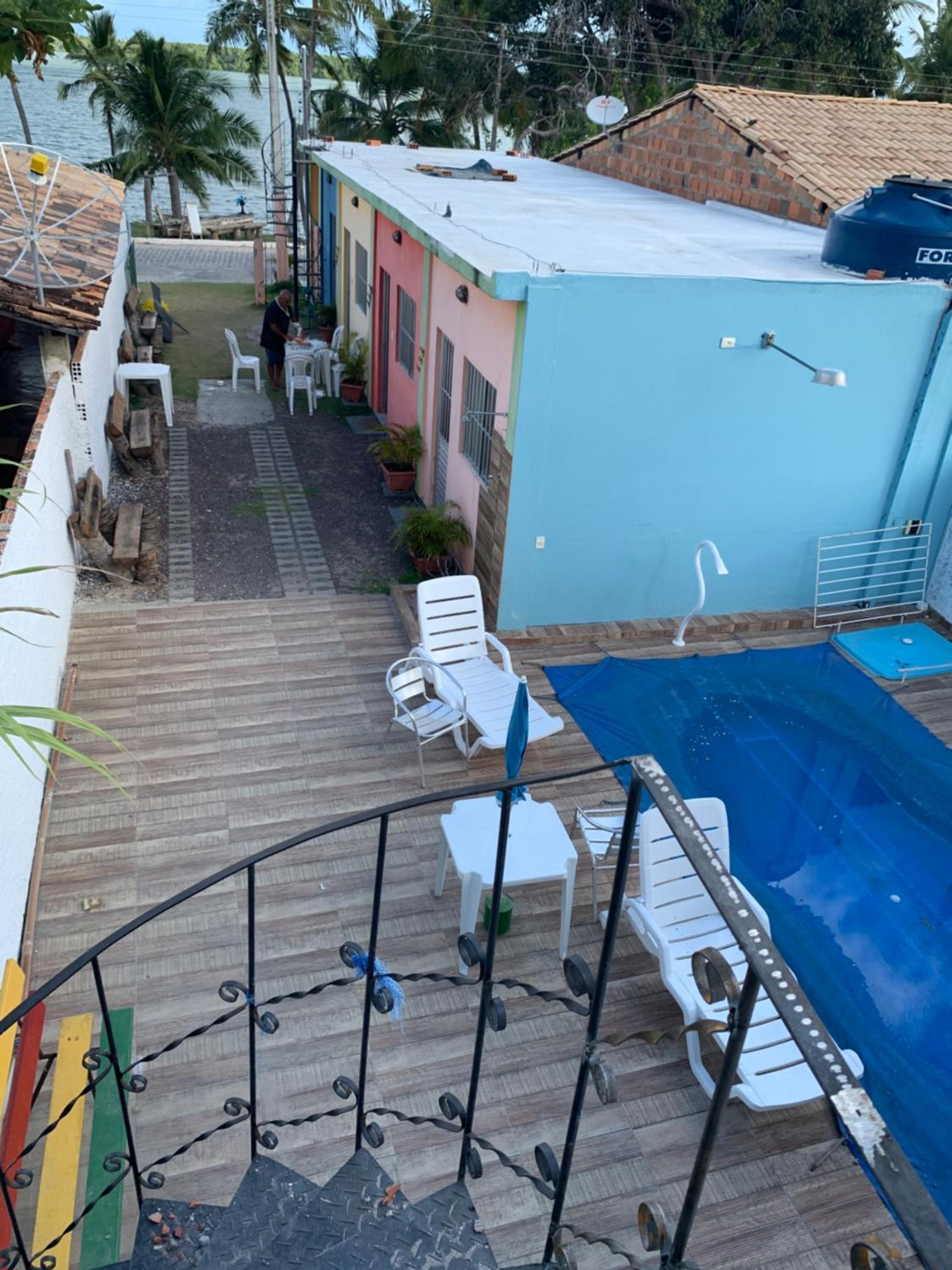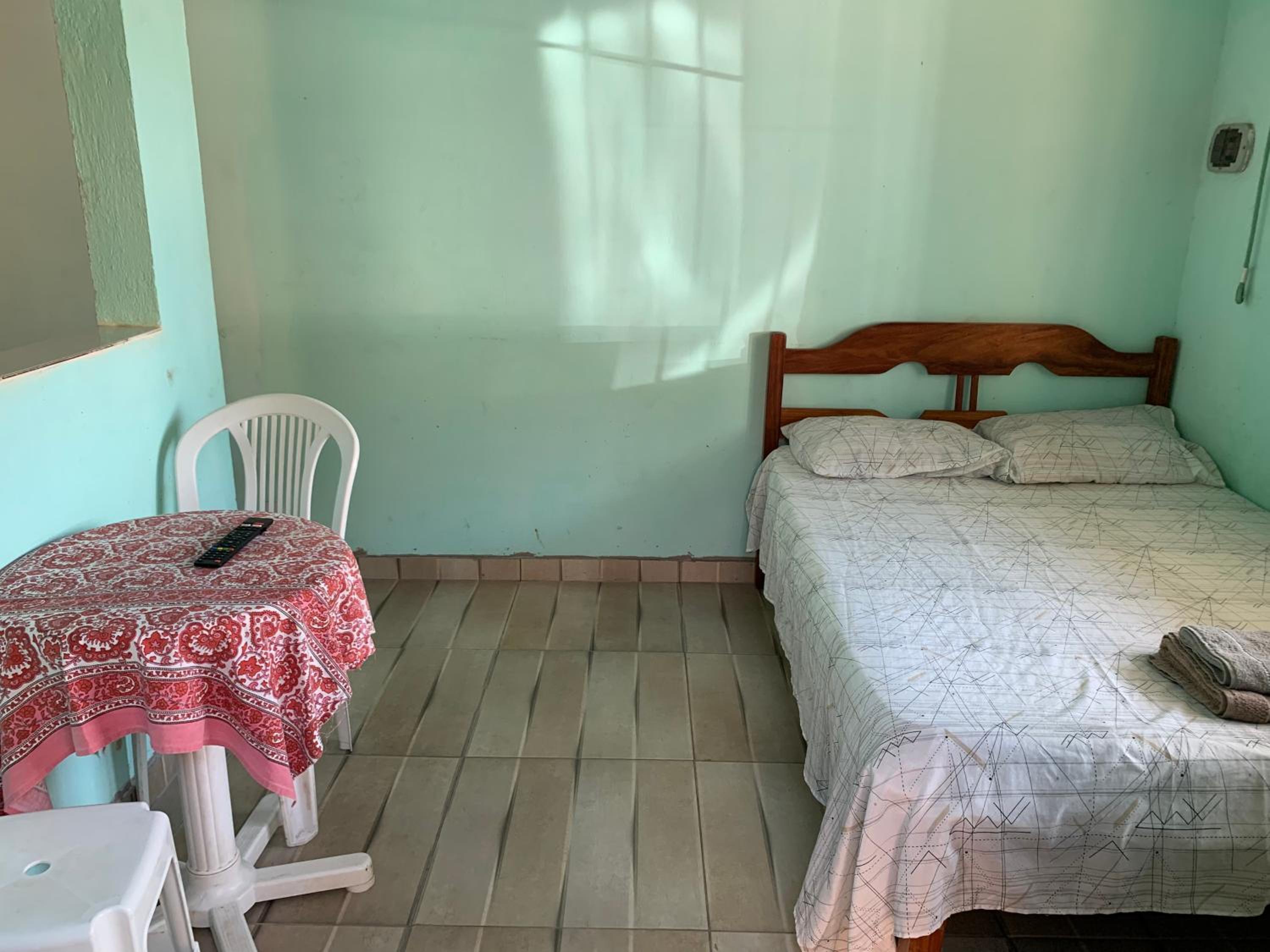 Fiquei em um quarto de telha de plástico, tipo colonial, esquenta muito, na madrugada choveu parecia que ia furar a telha, vazou água por elas e tinha uma goteira que caia bem em cima do vazo, sentava no vazo a goteira pingava na perna. O quarto não tinha ar condicionado, o local tem mosquito, somente a cama do casal tinha mosquiteiro, paguei cama extra para minhas filhas, porém a delas não tinha mosqueteiro e acabaram dormindo na nossa cama. O café não fica exposto para os hóspedes, vc tem que solicitar, preenchendo uma lista, o que vc gostaria de comer. Ficamos duas diárias e a piscina ficou o tempo toda suja, não entramos nela. Recomendo procurar outro local.