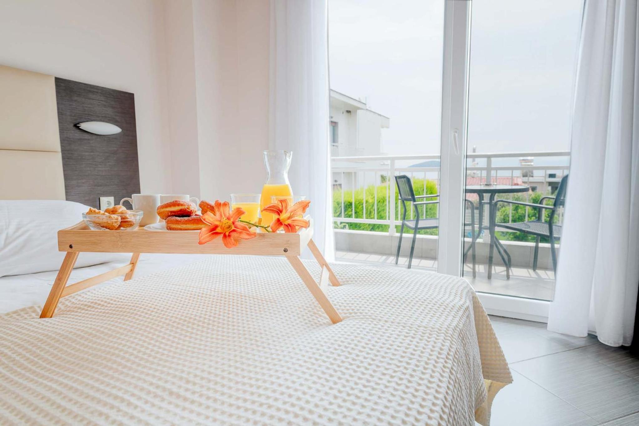 Culinary Delights and Coastal Charms: Delight your taste buds with our mouthwatering buffet breakfast (additional charge) and explore the flavors of Greece. Enjoy the convenience of our beachfront location, just a stone's throw away from the sandy shores of Nea Iraklitsa.
