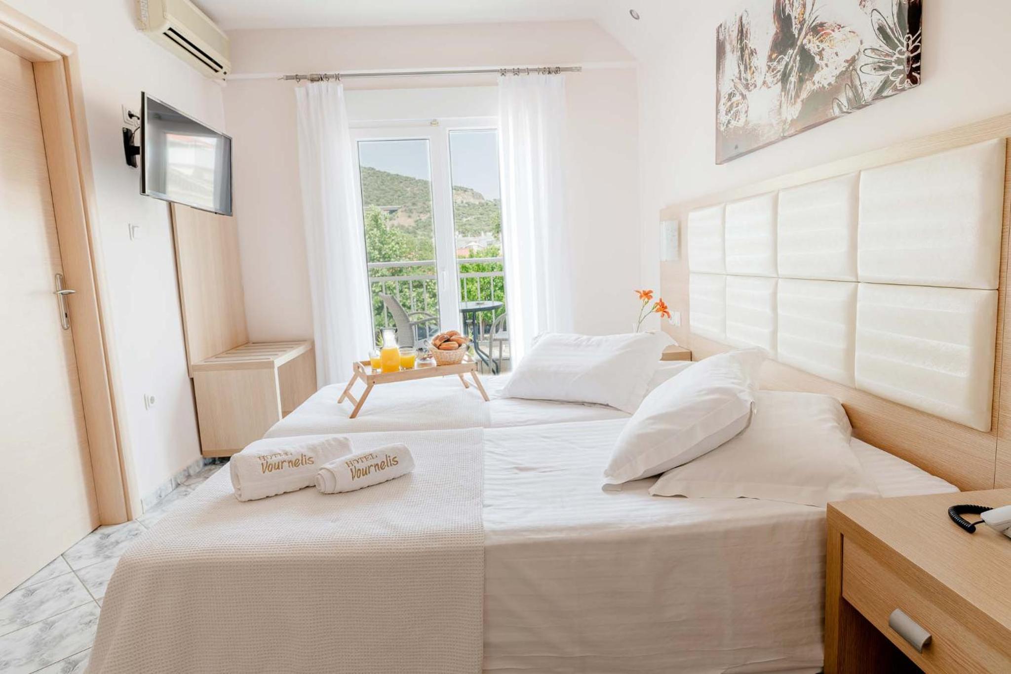 Convenience and Comfort: Stay connected with free Wi-Fi in public areas, and enjoy the ease of free on-site parking. With Kavala Airport a short drive away, Vournelis Hotel offers the perfect blend of relaxation and convenience for your getaway.
