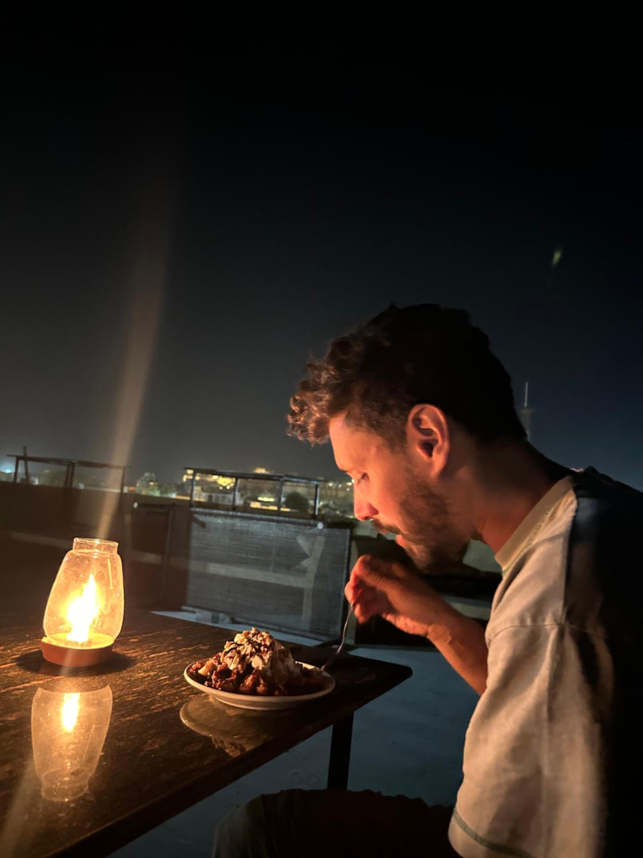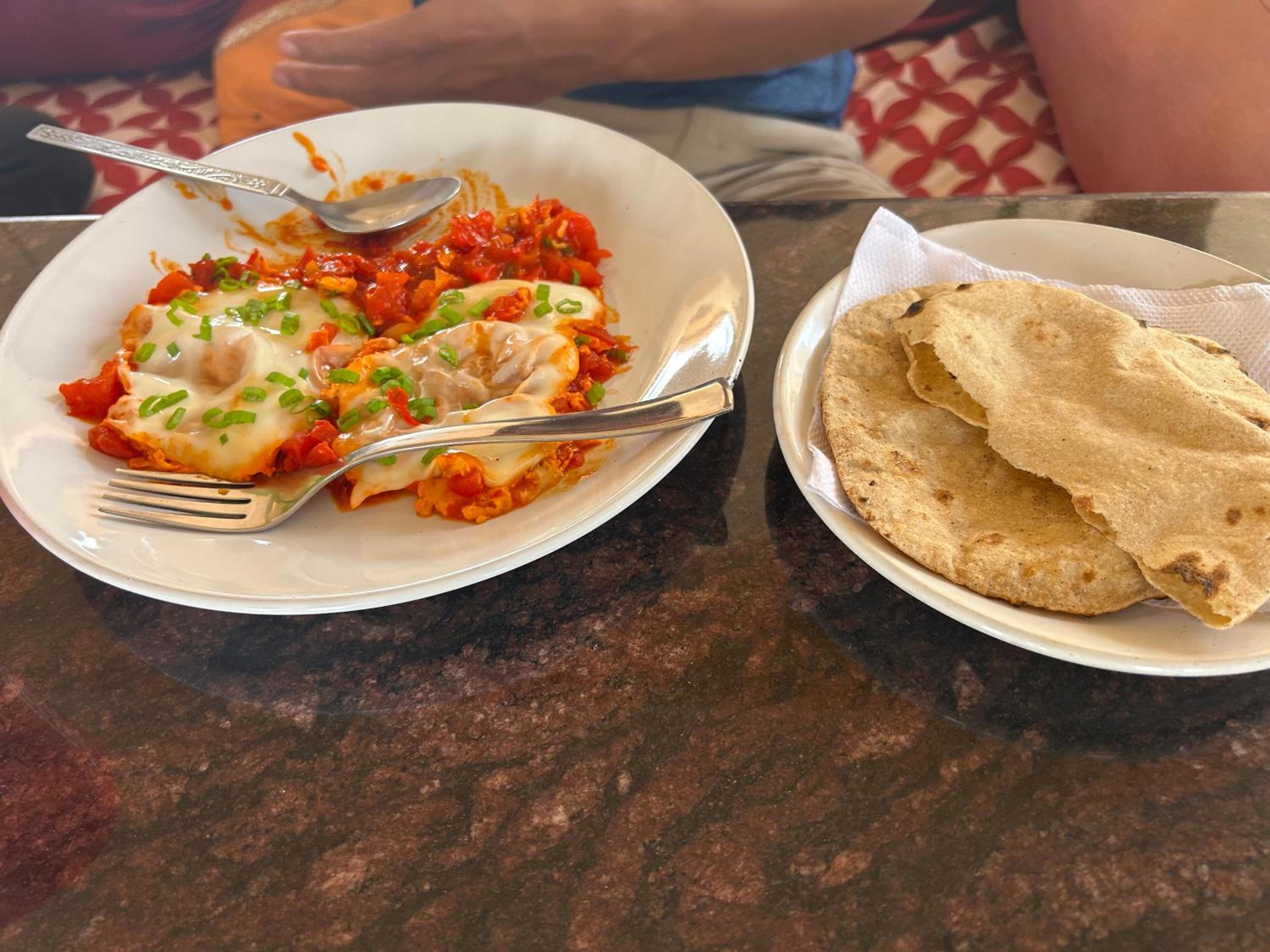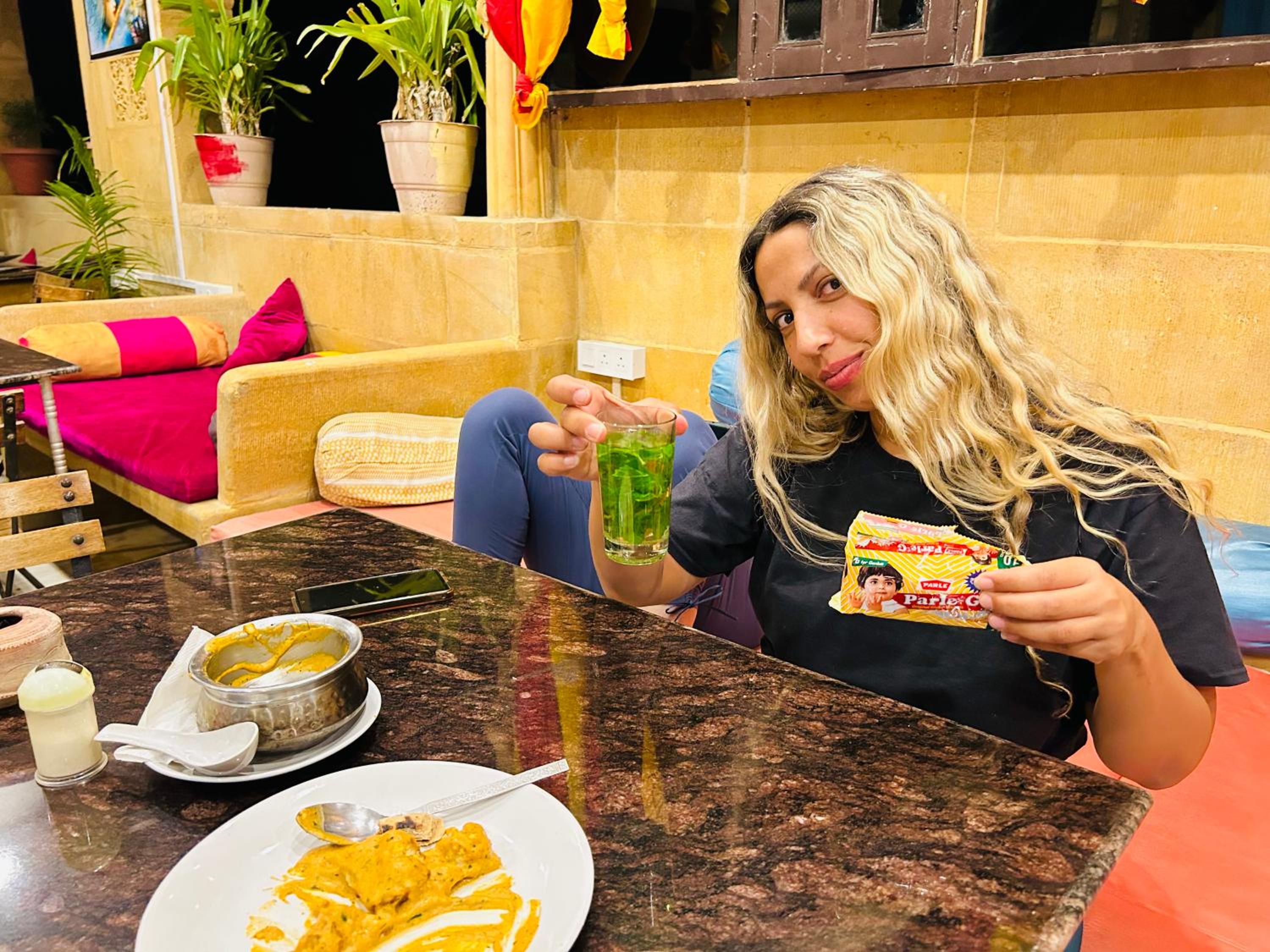 Das Essen im Restaurant ist auch sehr lecker und günstig. Der Chai und das Alooh Paratha waren besonders lecker, und man hat einen tollen Ausblick auf die Stadt.