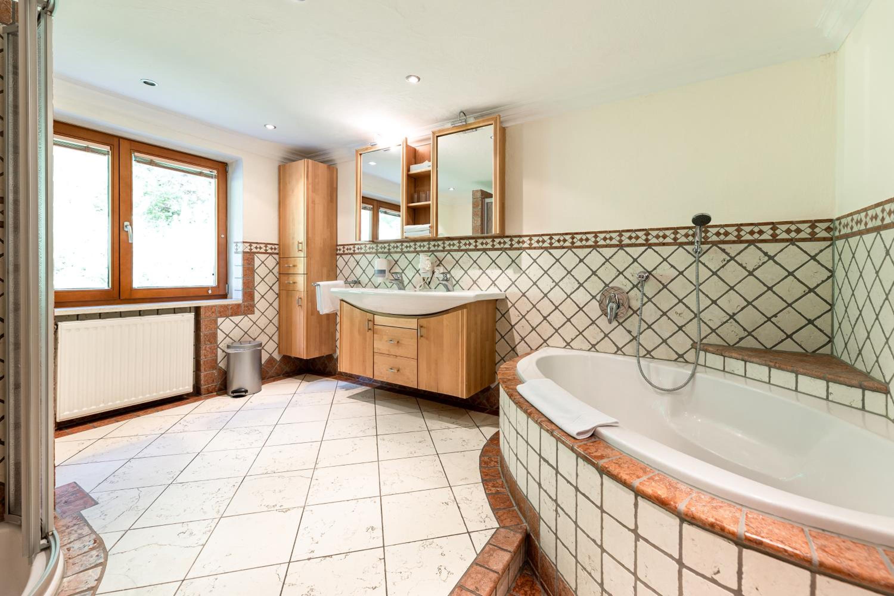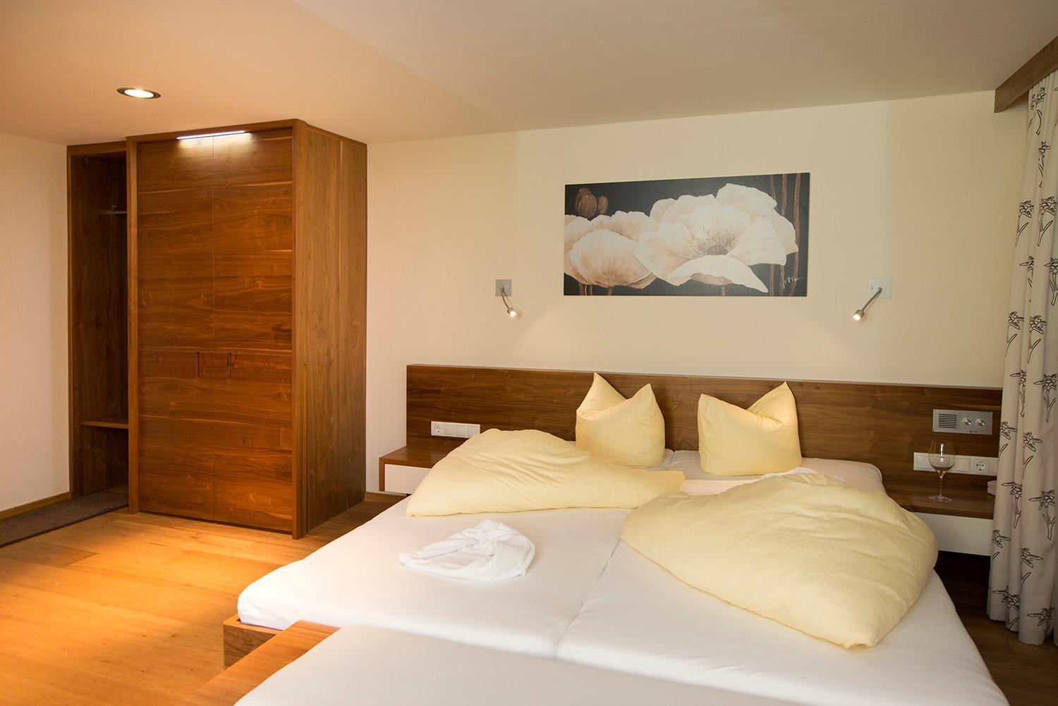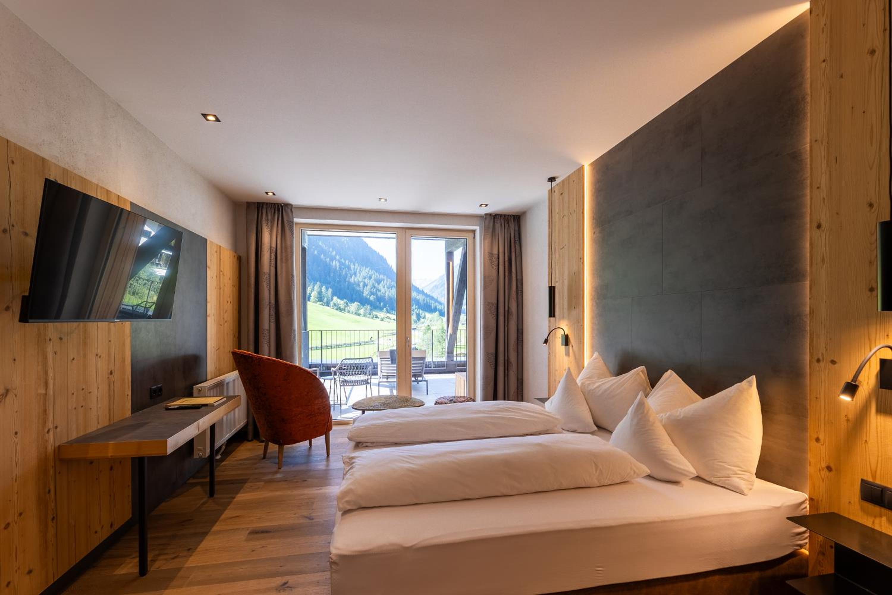 Sehr bequeme Betten, tolle Aussicht von der zugehörigen Terrasse im 4. Stock in den Talschluss. Der Wellnessbereich bietet mehrere Saunen mit gemütlichen Ruhezonen. Wir waren bestens zufrieden und kommen gerne wieder!