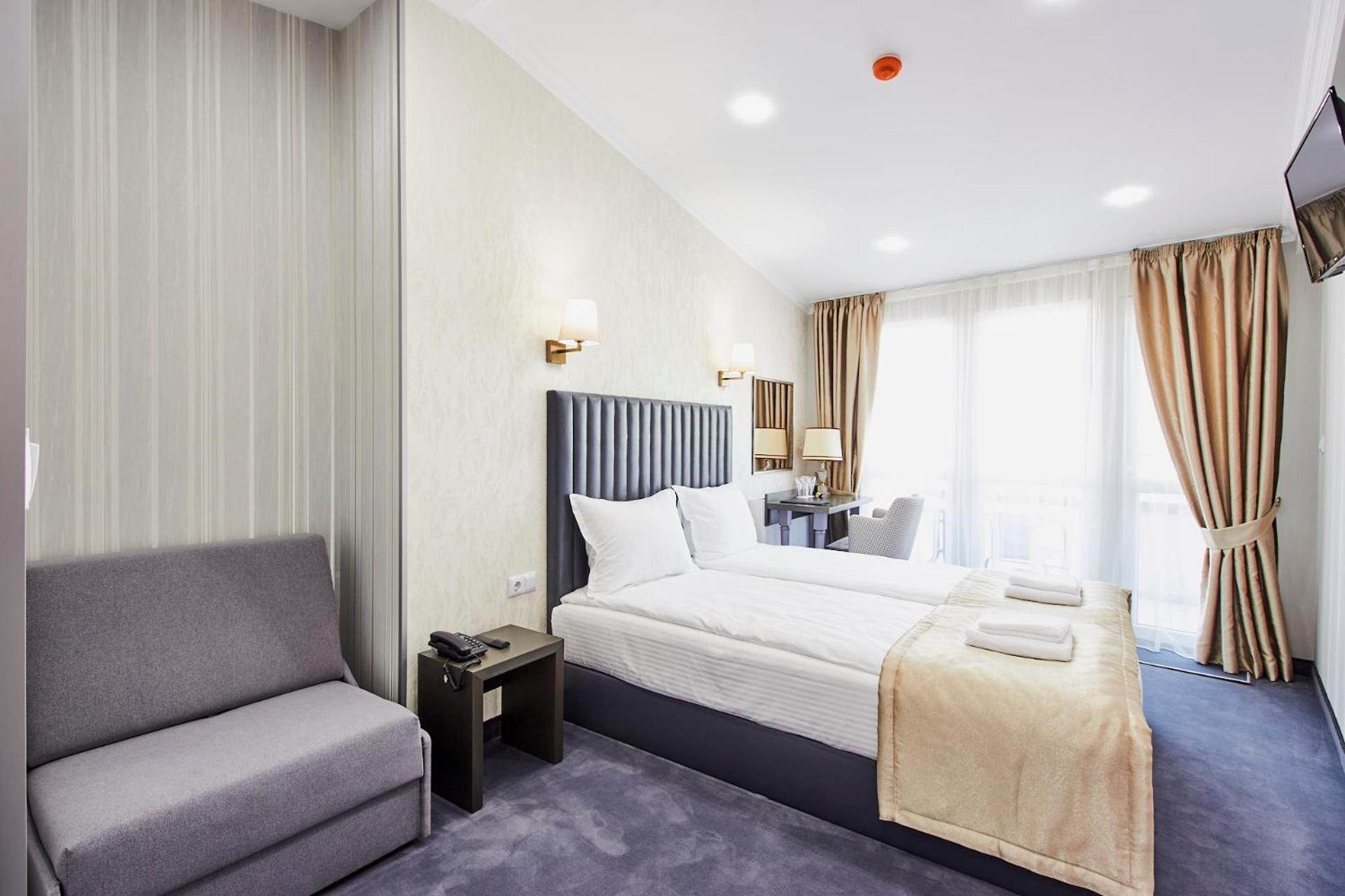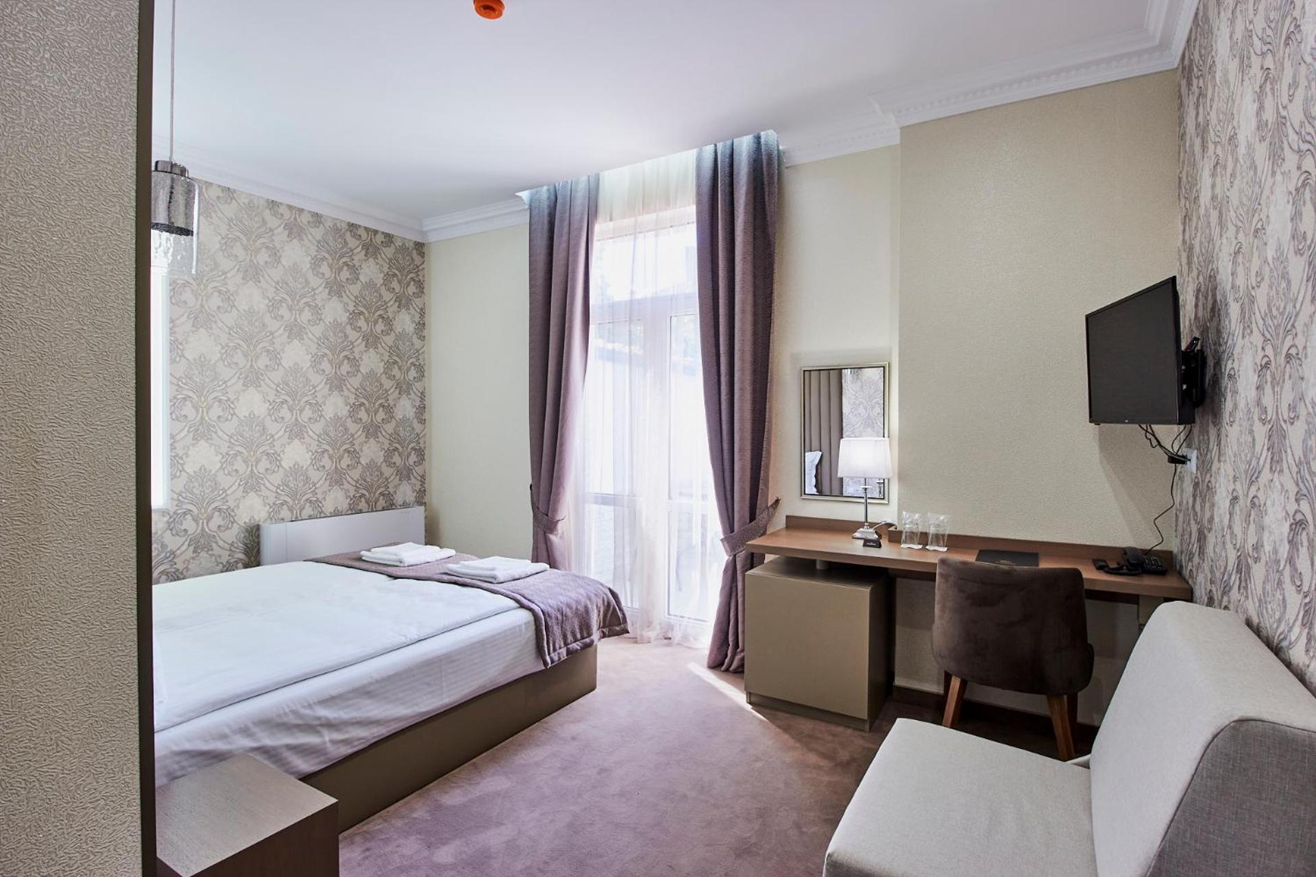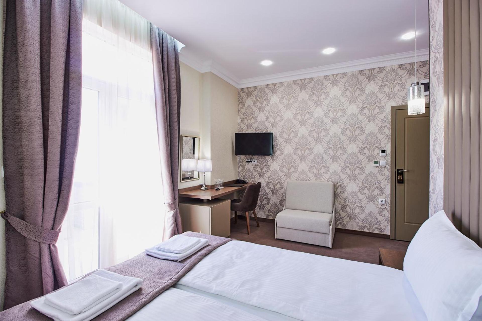Хотел Паризи, nestled in Kazanlŭk, offers a luxurious stay just 32 km from Mall Galleria. The 3-star hotel boasts a serene garden, free private parking, a charming terrace, and a cozy bar. Guests can enjoy the convenience of free WiFi and impeccable room service. Each room features a desk, a modern private bathroom with complimentary toiletries, a flat-screen TV, and refreshing air conditioning. Some rooms even offer a delightful balcony to unwind. Bed linen and towels are provided for a comfortable stay.
