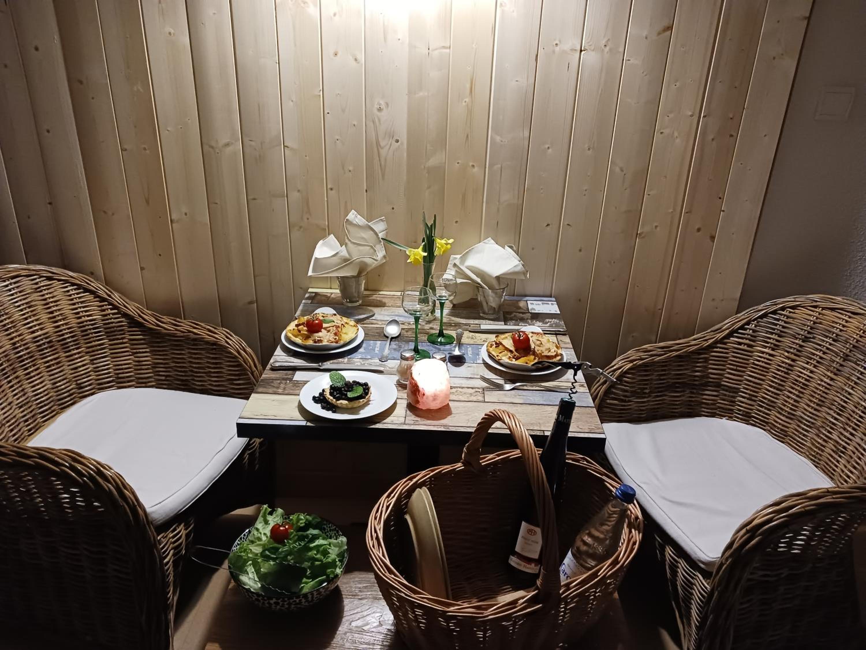 It’s comfortable to go to the ski slopes, the madame managing it was very nice. They serve you the breakfast in the room. The place is isolated in the middle of the forest, the night sky was impressive.