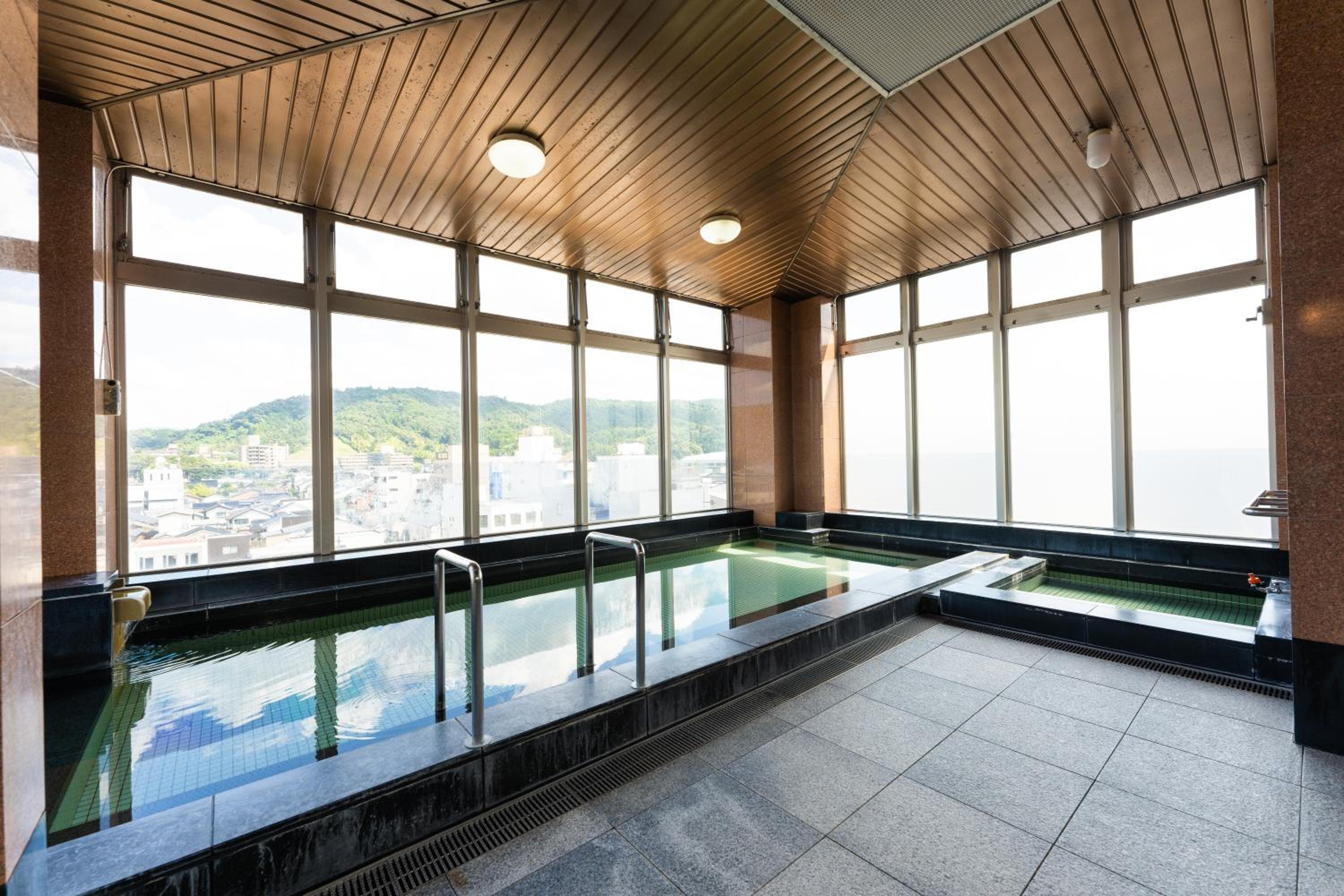 Hotel Ark 21 offers a unique experience with its top-floor public bath and sauna, providing stunning city and mountain views. Guests can relax and unwind while enjoying the picturesque surroundings.