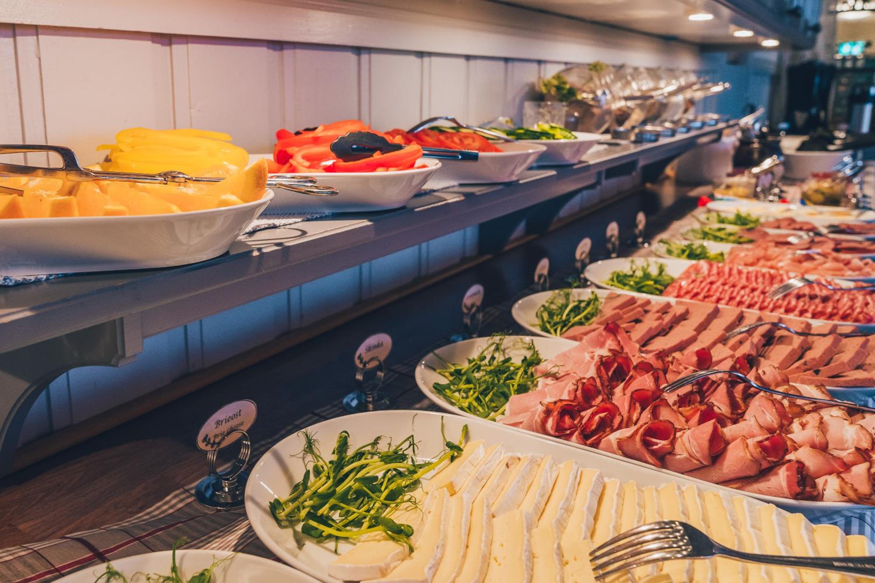 Mycket god frukost med mycket att välja på.