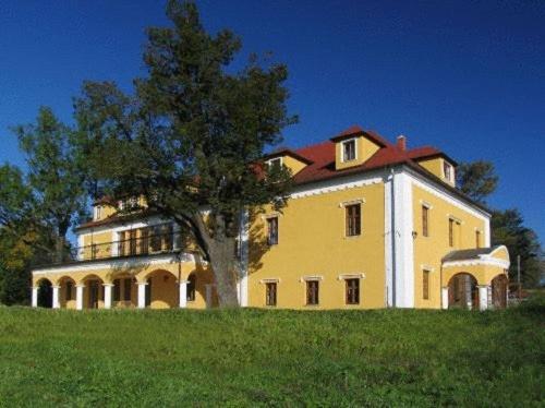 Experience a stay like no other at Kastiel Lucivna, a beautifully renovated manor house nestled in a serene natural setting. Each spacious room boasts an en suite bathroom, a cozy seating area with a sofa, satellite TV, and a convenient small fridge.