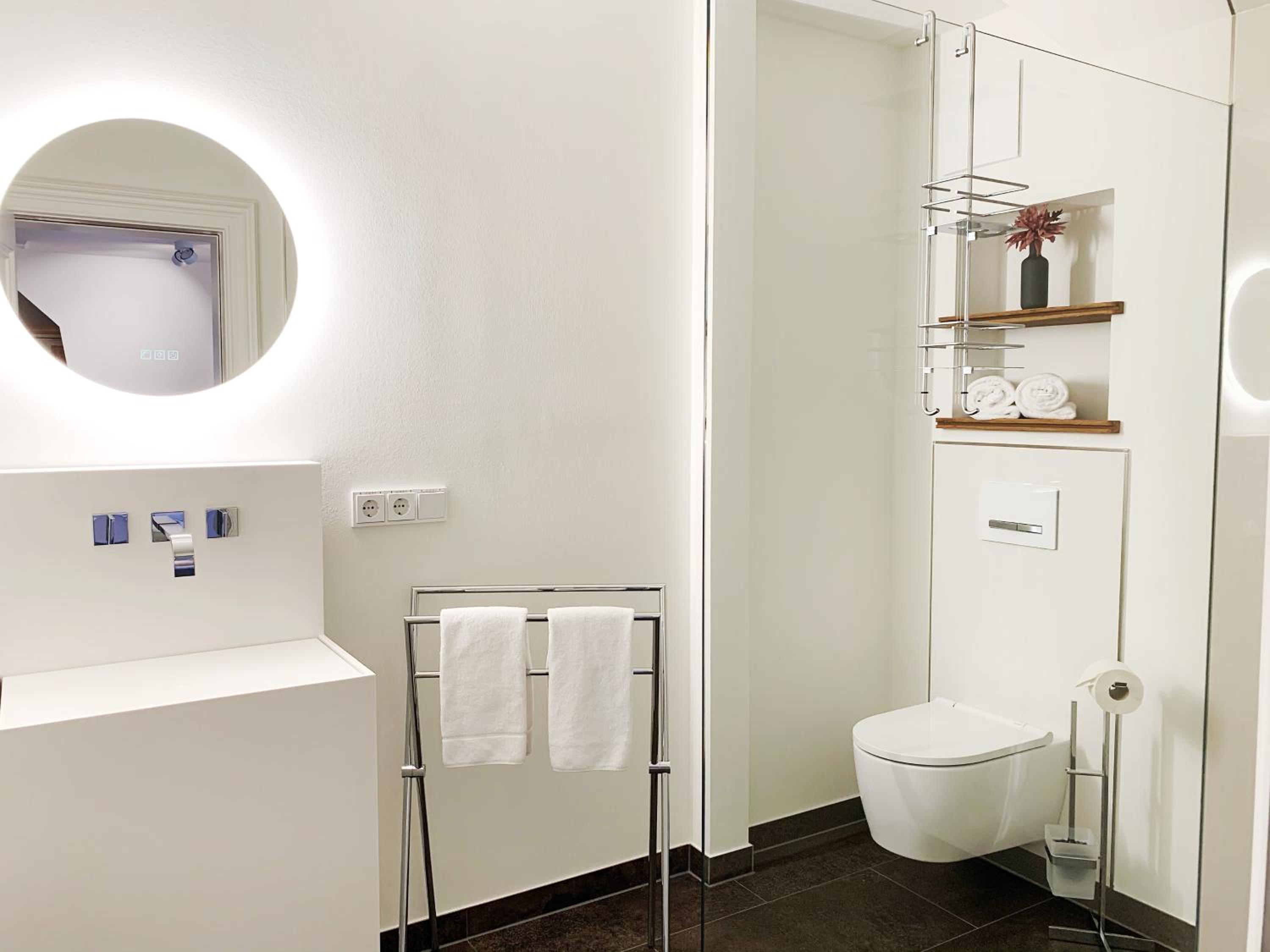Zimmer recht groß, Bad sehr modern. Design Waschtisch sehr unpraktisch, da extrem flach. Hier geht Design vor Funktionalität.