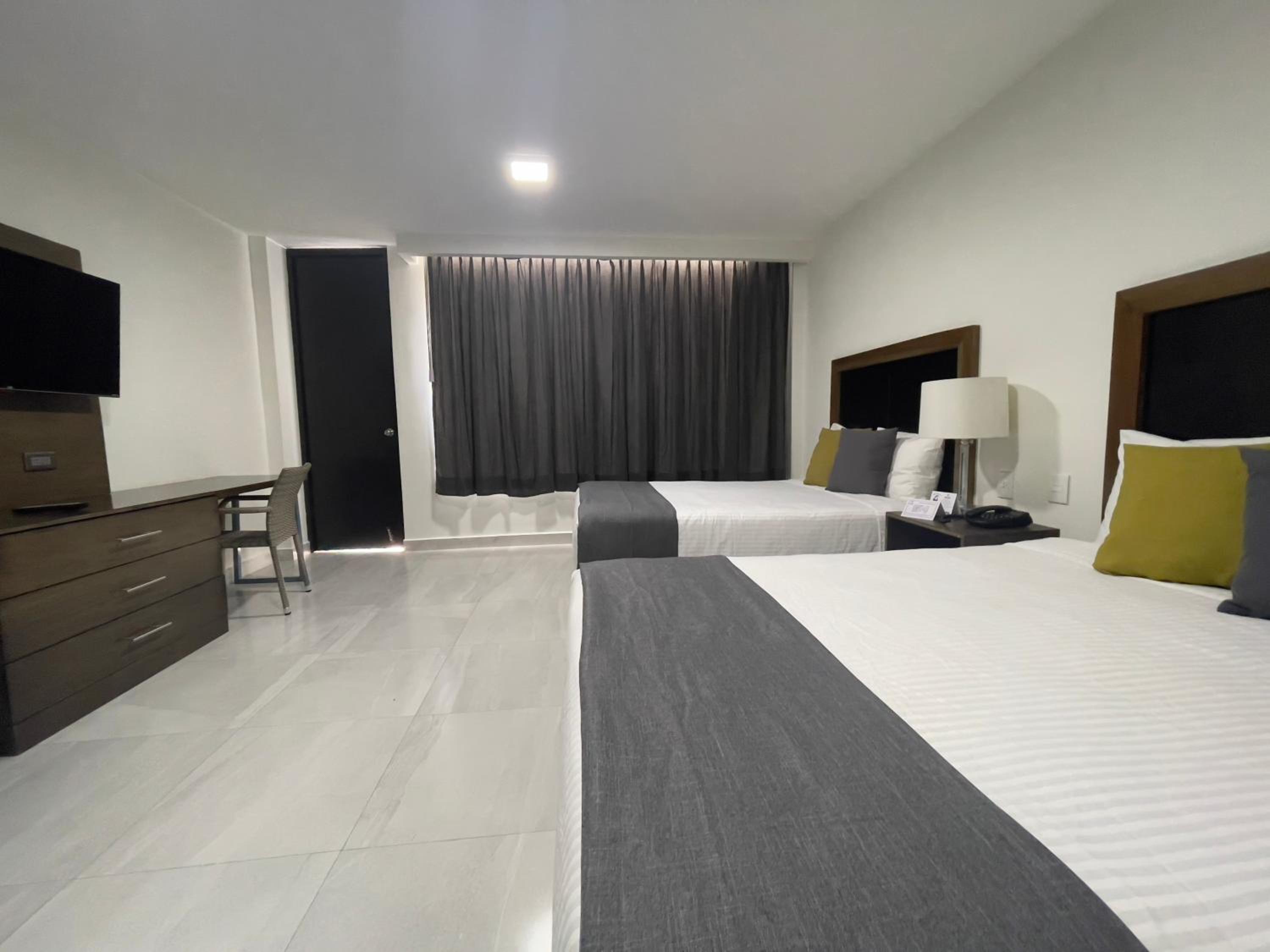que los cuartos estan un poco viejos y huelen mucho a humedo lo que no me permitio estar mucho tiempo en el cuarto porque me daba alergia y se me tapaba la nariz. adicional que recepcion rrara vez contestaba el telefono para atender. ademas creo que por ser huespedes las sombrillas y mesas en las playas deberian ir de cortesia ya que nos cobraron un extra de $500 pesos por hacer uso de ellas siento que esa parte le daria un plus.