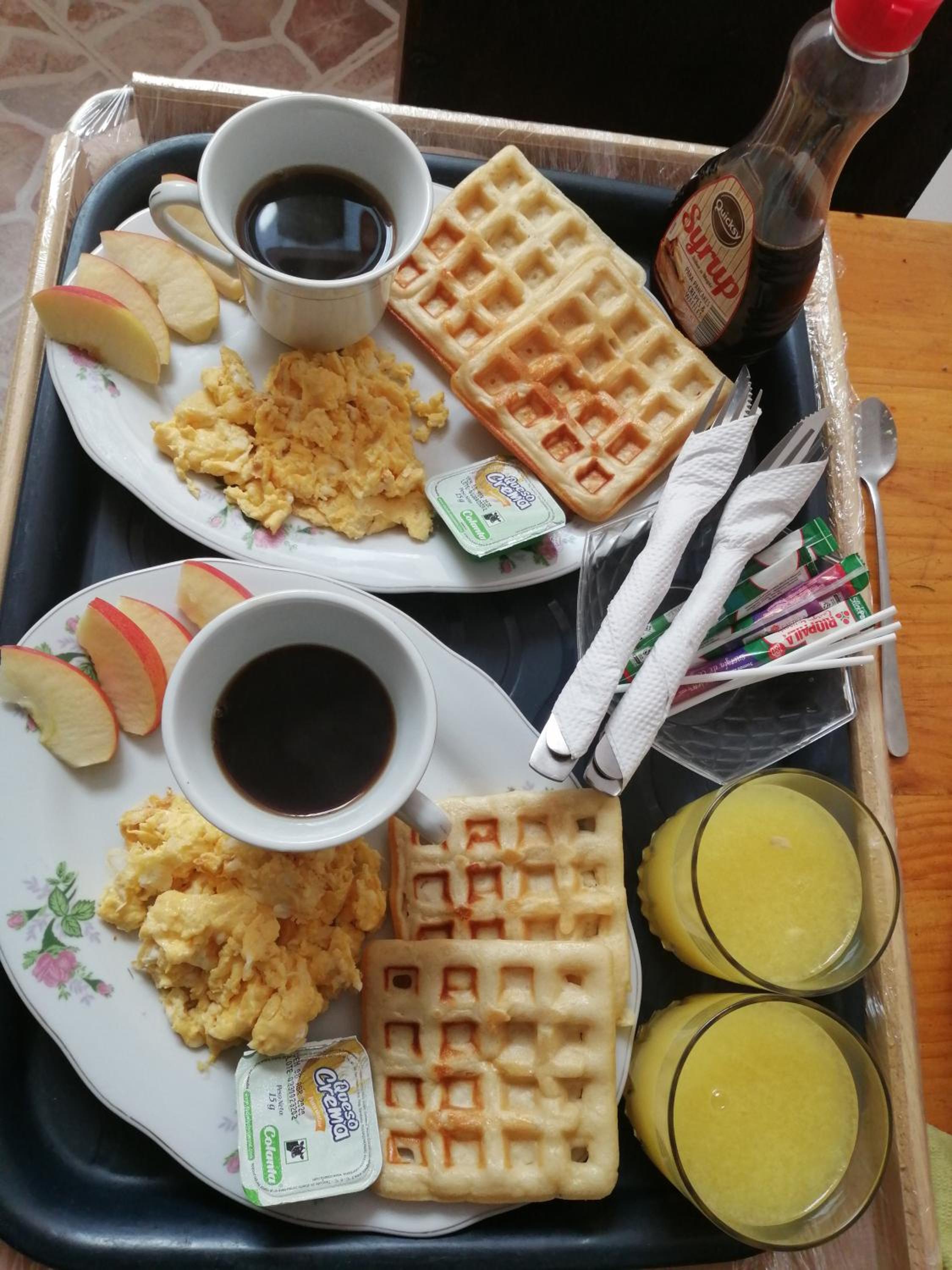 El desayuno un poco escaso, no te comentan que tiene en total para desayunar, no cuentan con mermelada, solo huevos y arroz con porotos. El café te lo sirven en vaso de plástico.