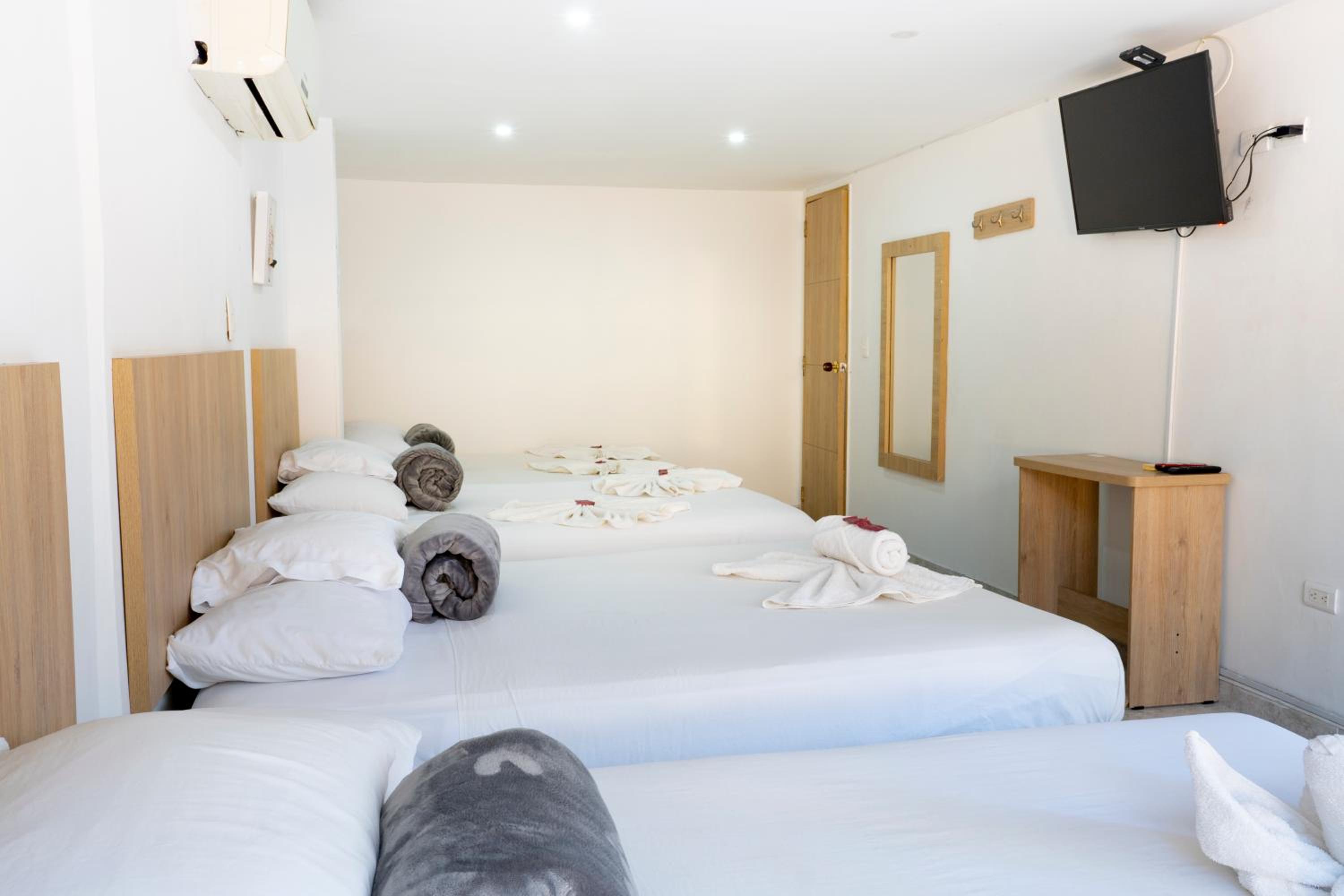 El personal servicial, excelente ubicación y la habitación para 4 tiene 4 camas muy cómodas!