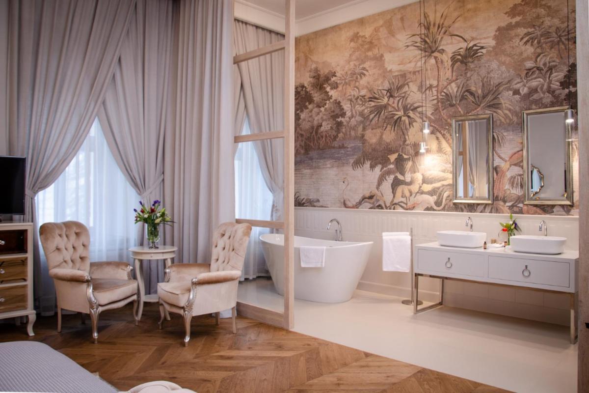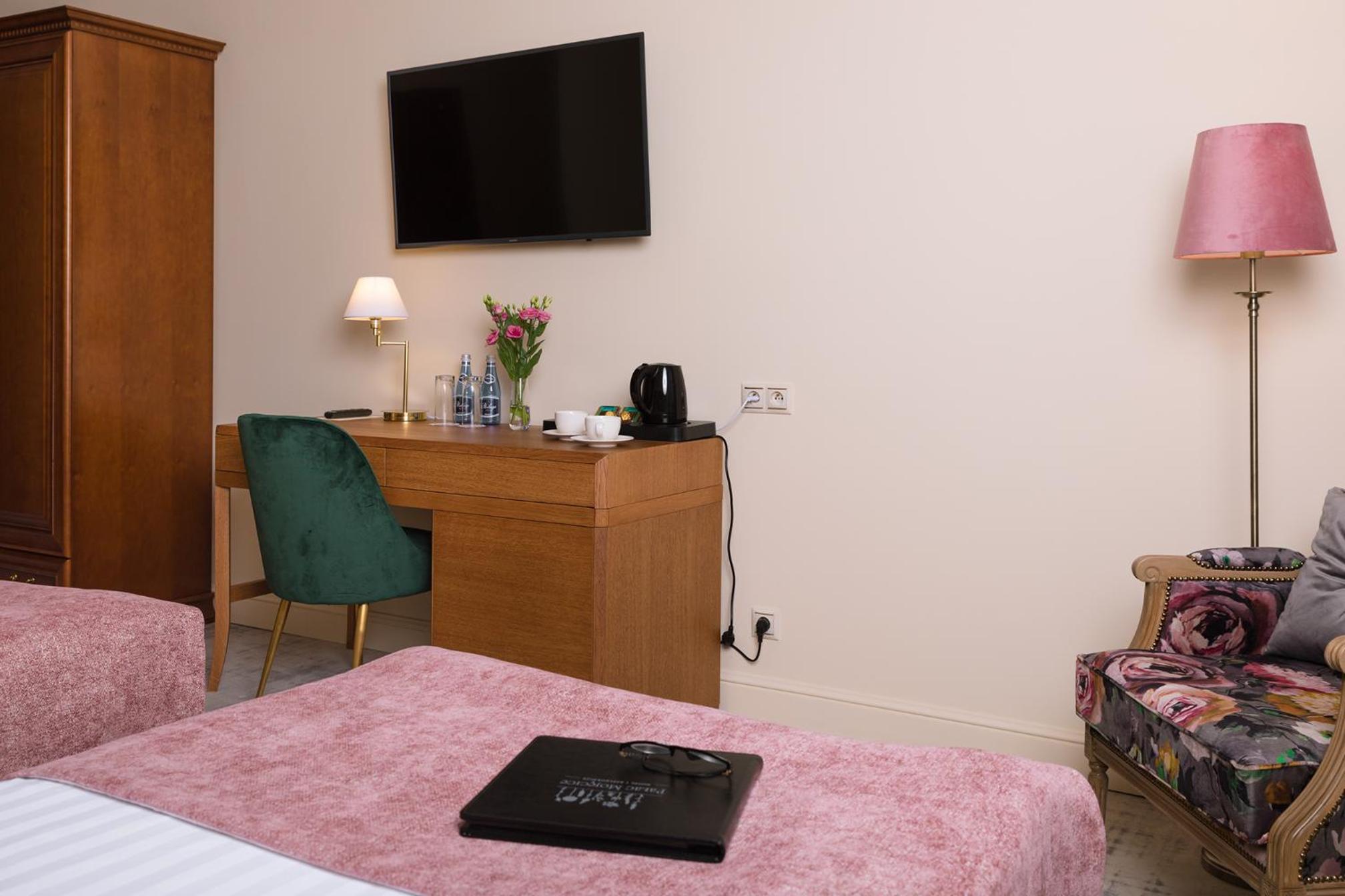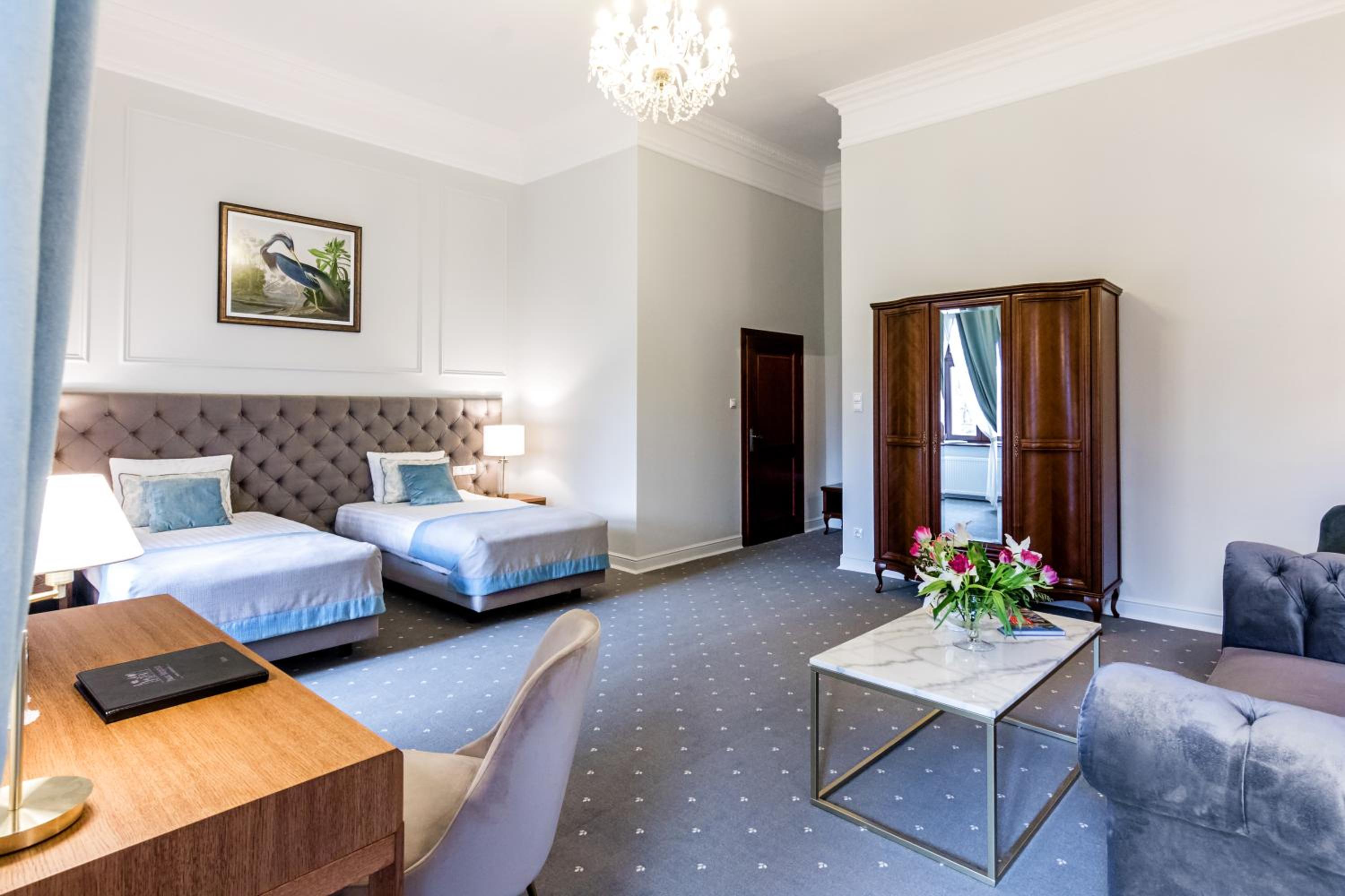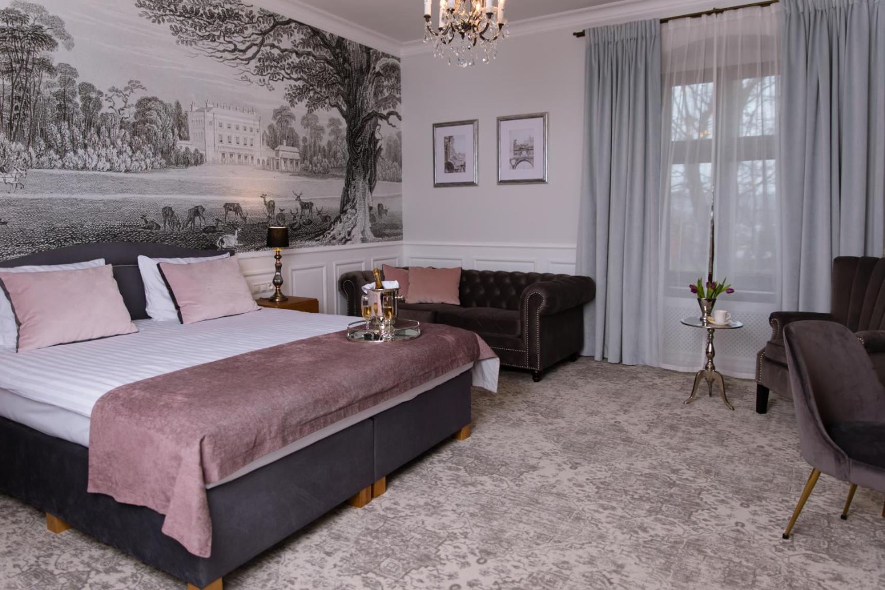 Pałac Mojęcice offers elegant guest rooms equipped with modern amenities such as flat-screen TVs and free toiletries. Each room provides a comfortable retreat for guests to unwind after a day of exploring.