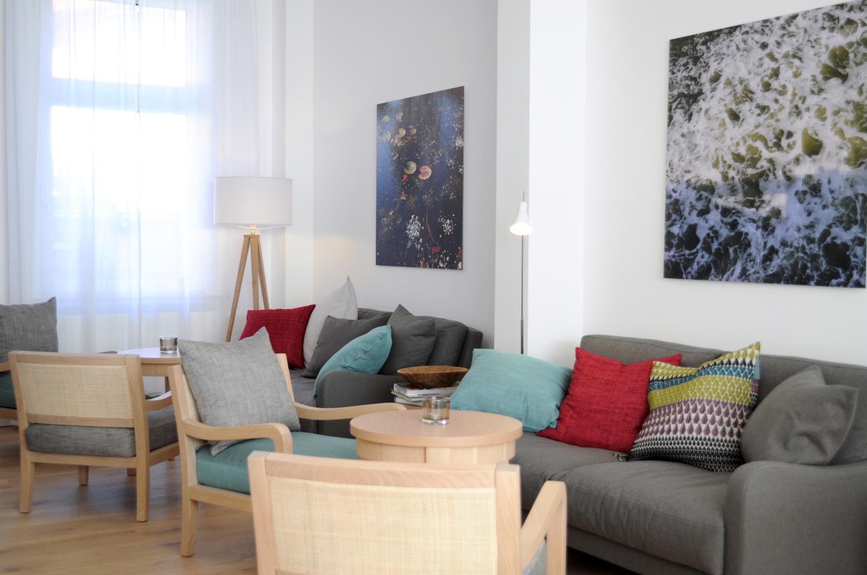 Individually decorated rooms at Hotel Aquamarin offer a unique experience inspired by the island's natural colors. Enjoy contemporary furnishings, extra amenities, and a cozy lounge with a fireplace.