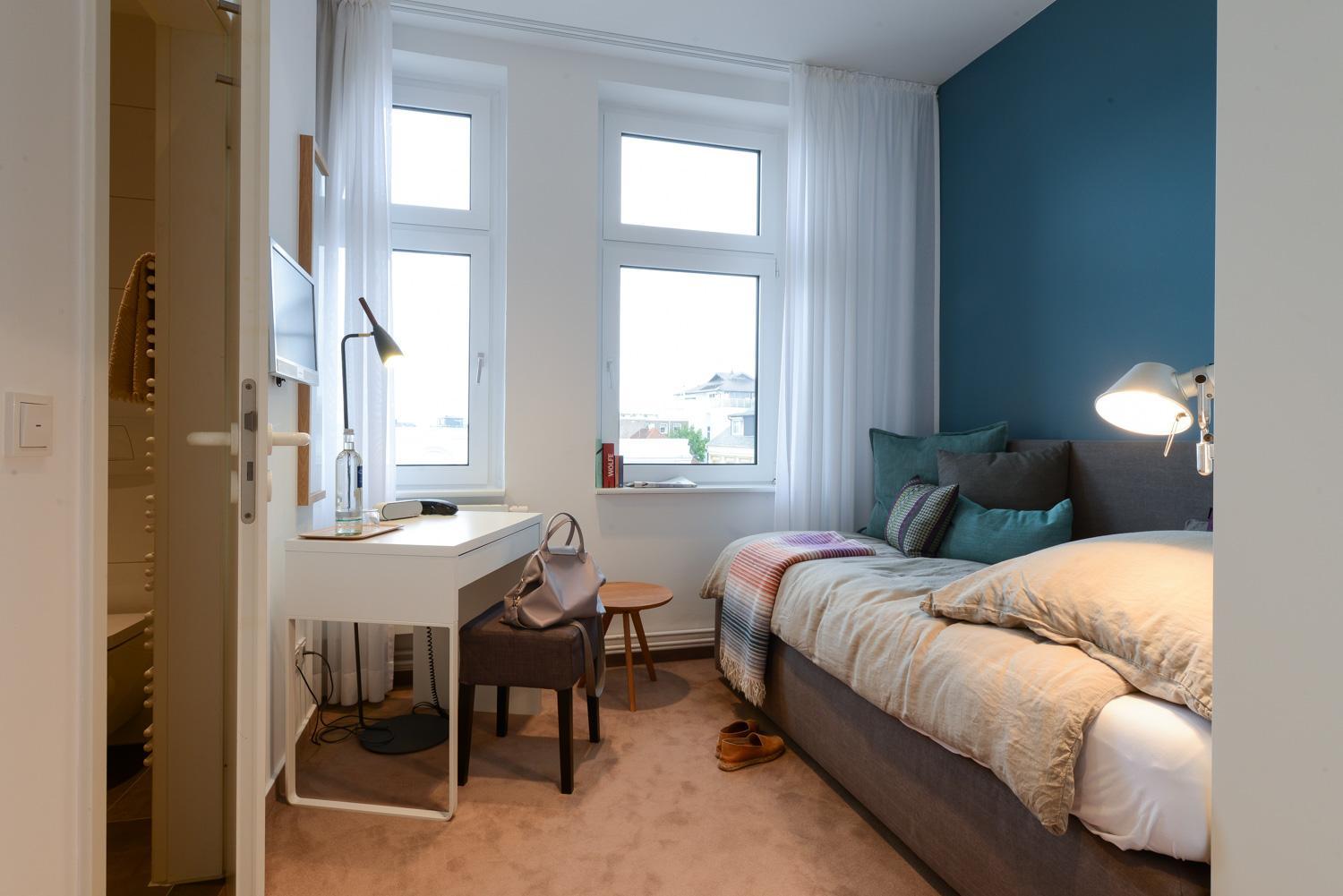 Die Einzelzimmer sind winzig und bzgl. Ablagefläche/Stauraum nicht wirklich durchdacht.