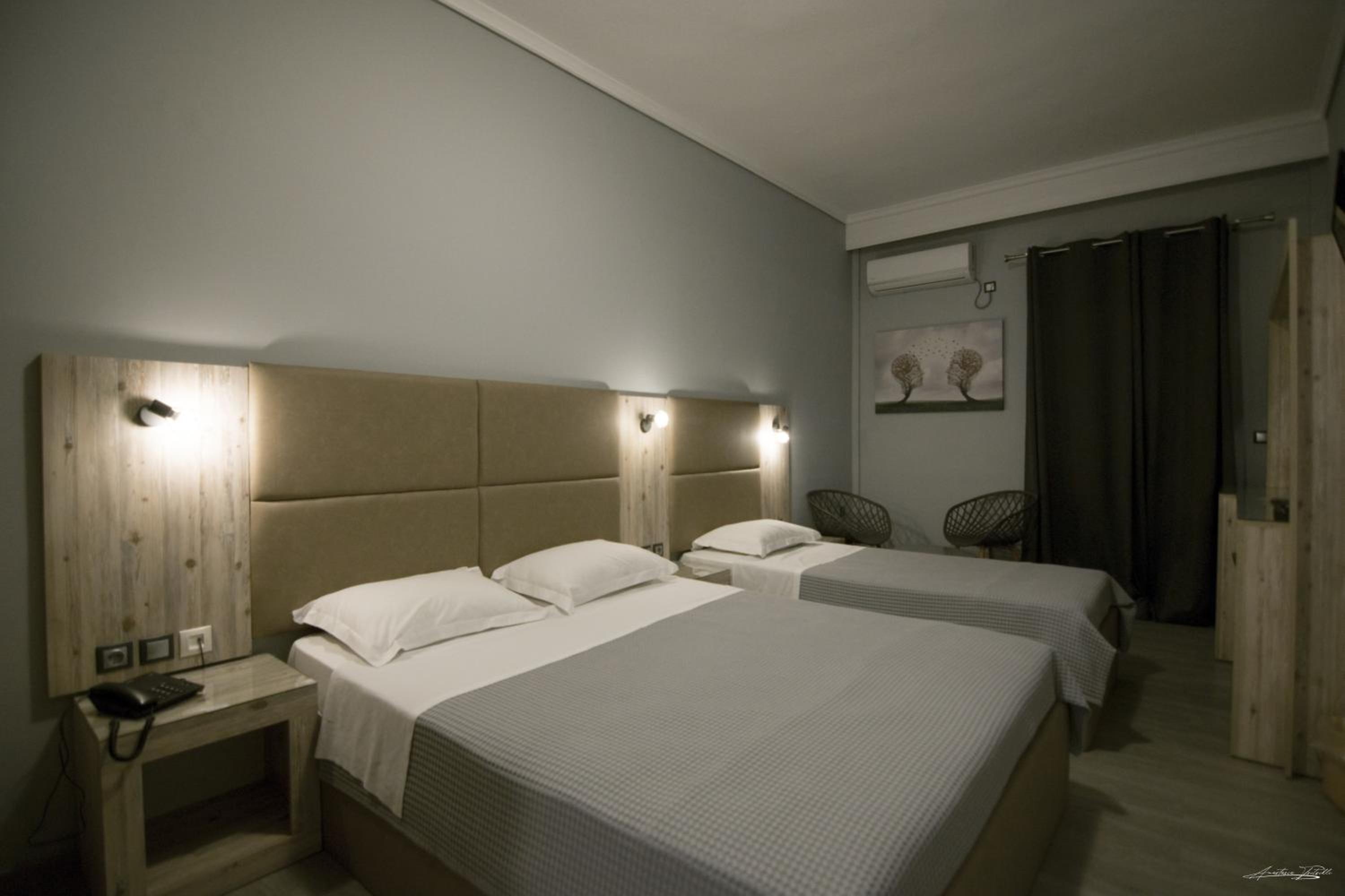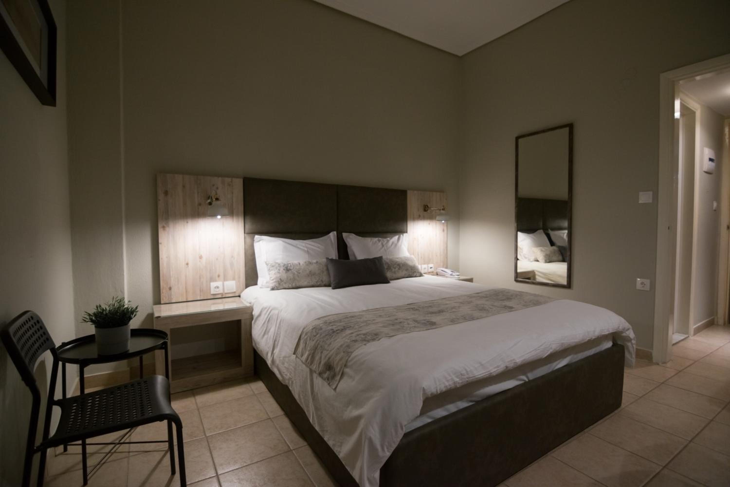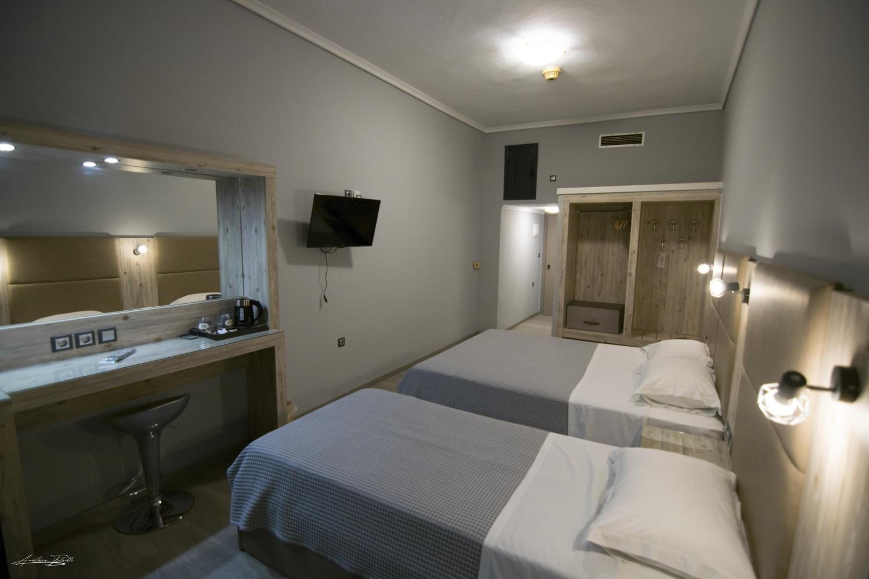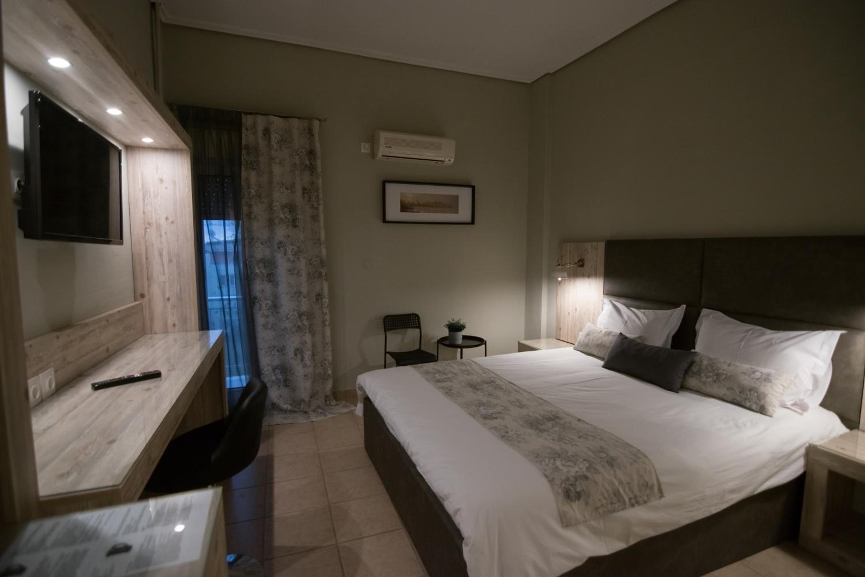 The room was renovated, clean and equipped with everything needed. Bed linen and towels were clean and had a pleasant scent. The location is very central, 5 minutes walk and one can get to the main square where all the cafes and restaurants are. There is a big Masoutis supermarket on the same street, just some 250 metres, only 3-5 minutes walk, from the hotel. There was no problem finding a parking space nearby. The reception clerk was friendly and did the check in early.