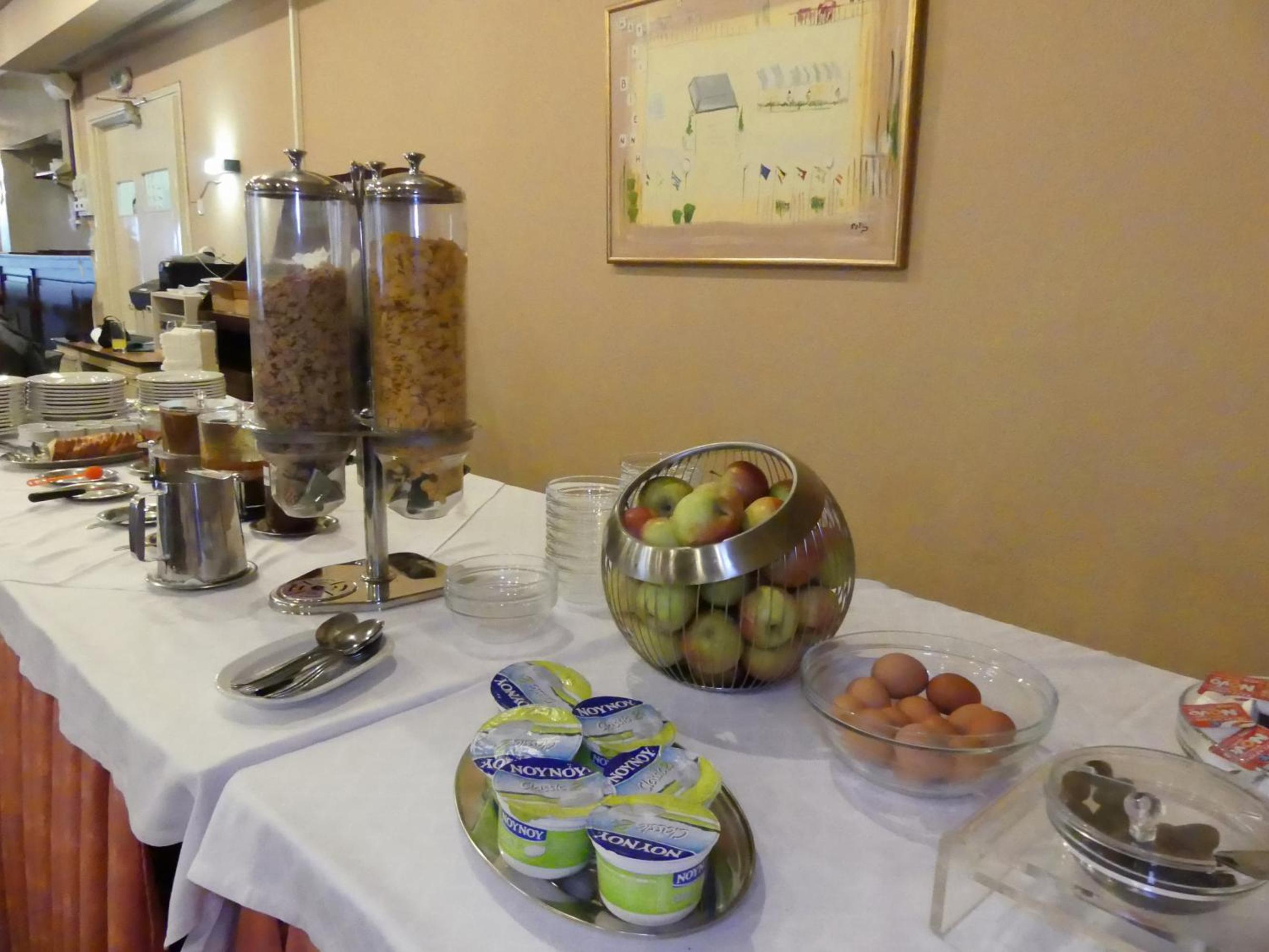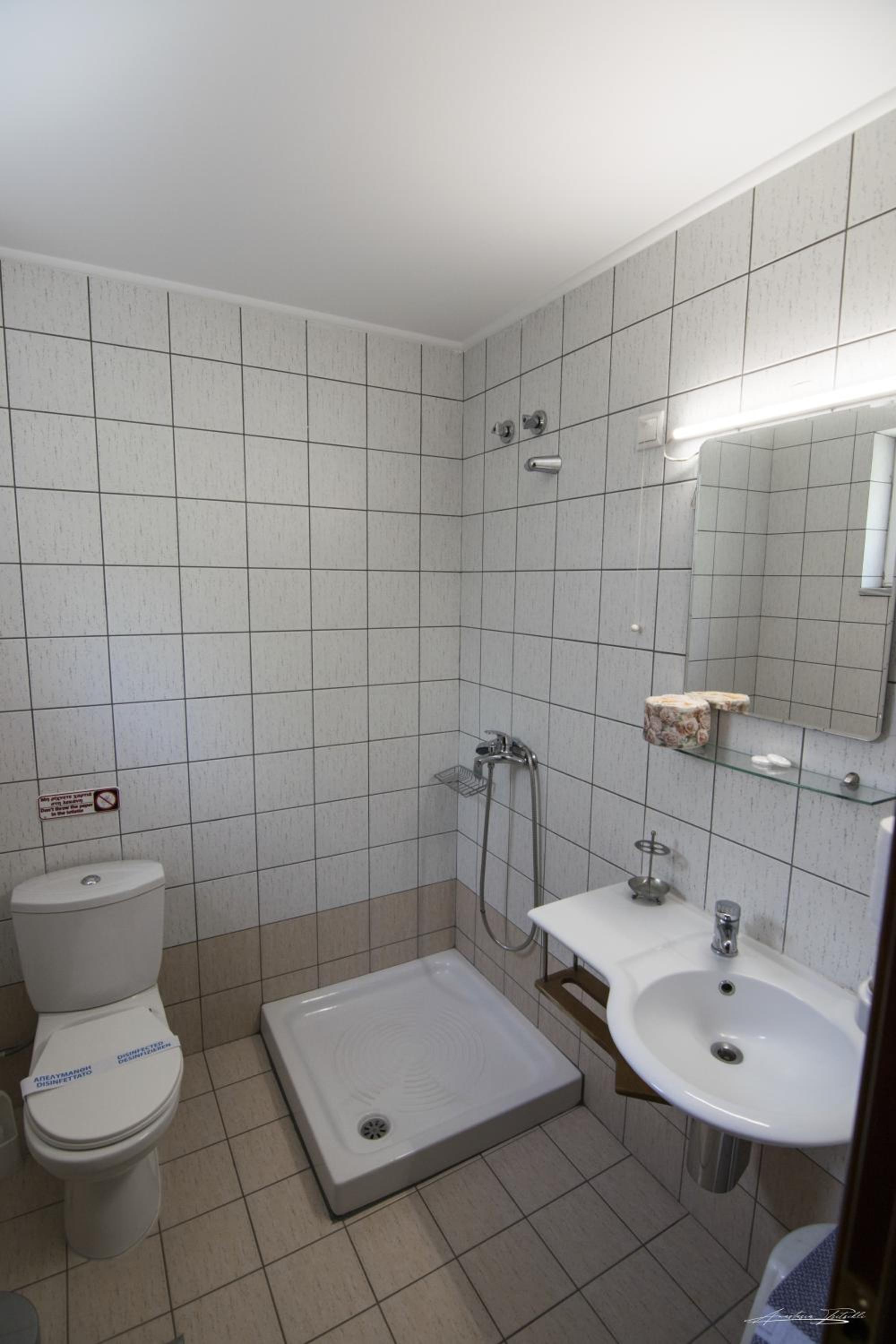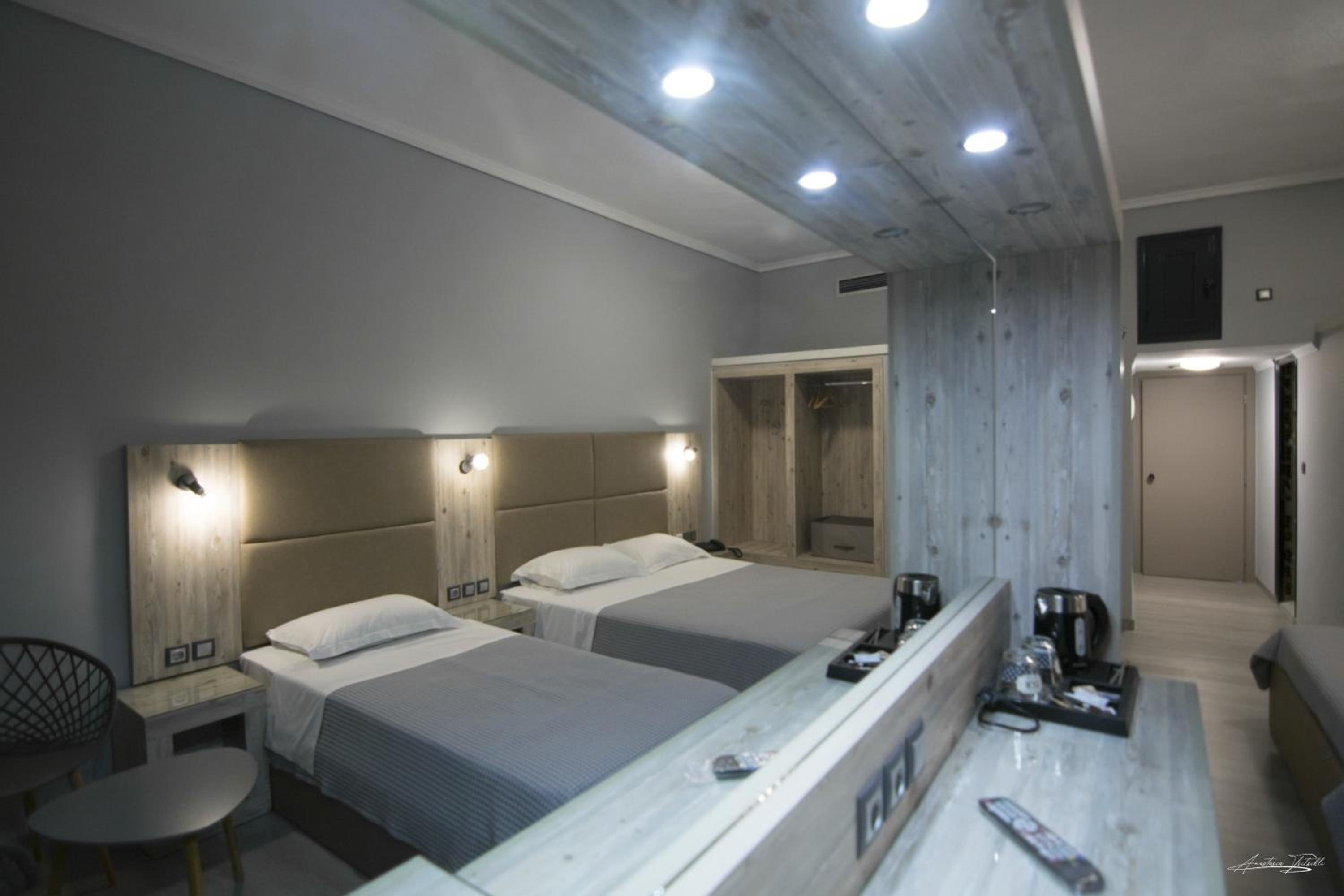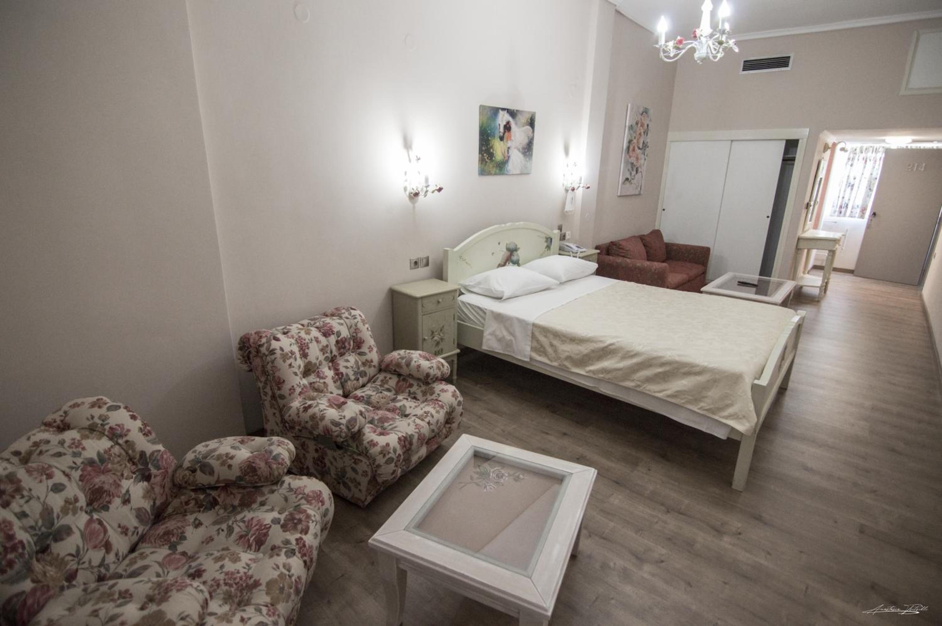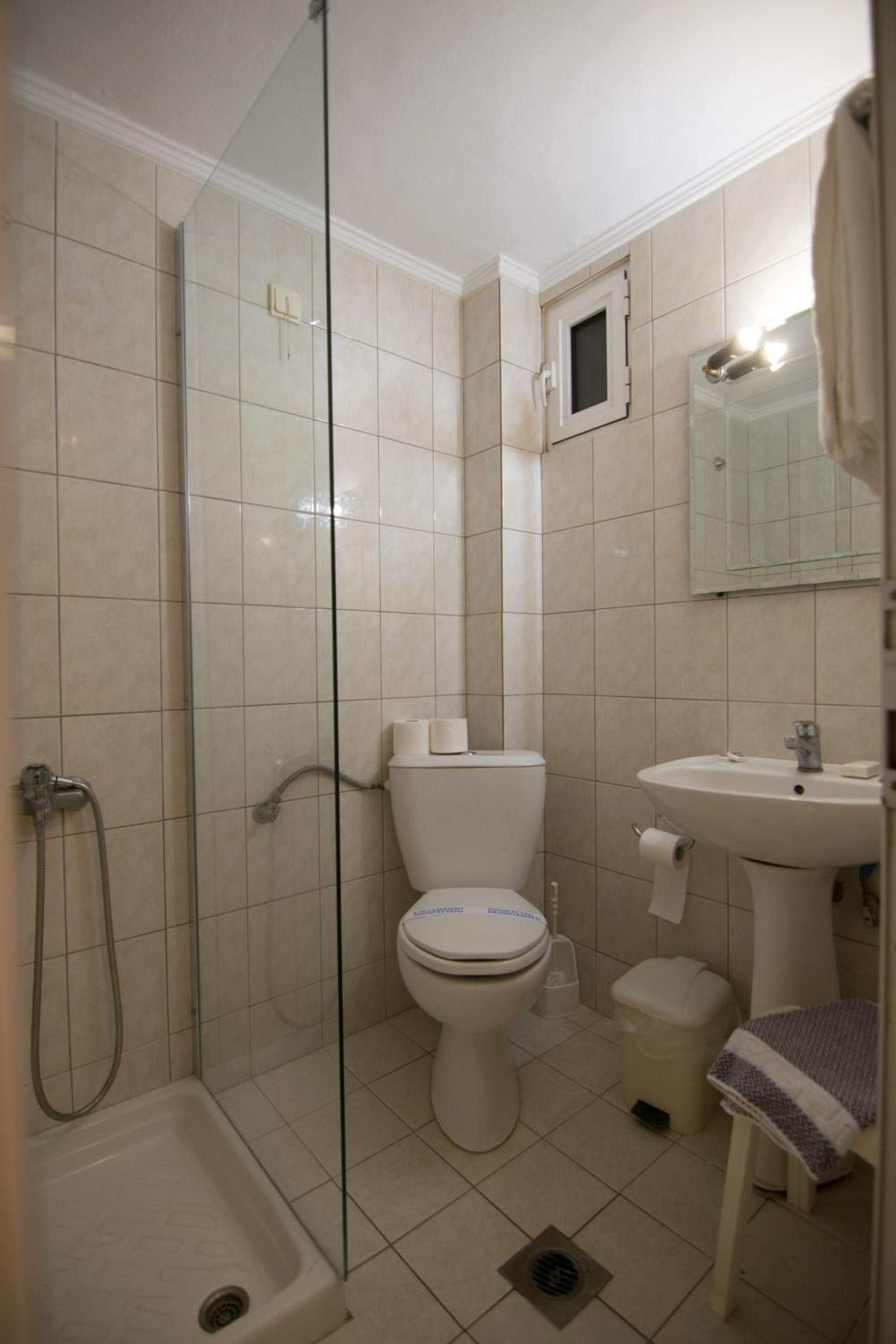 The room was renovated, clean and equipped with everything needed. Bed linen and towels were clean and had a pleasant scent. The location is very central, 5 minutes walk and one can get to the main square where all the cafes and restaurants are. There is a big Masoutis supermarket on the same street, just some 250 metres, only 3-5 minutes walk, from the hotel. There was no problem finding a parking space nearby. The reception clerk was friendly and did the check in early.
