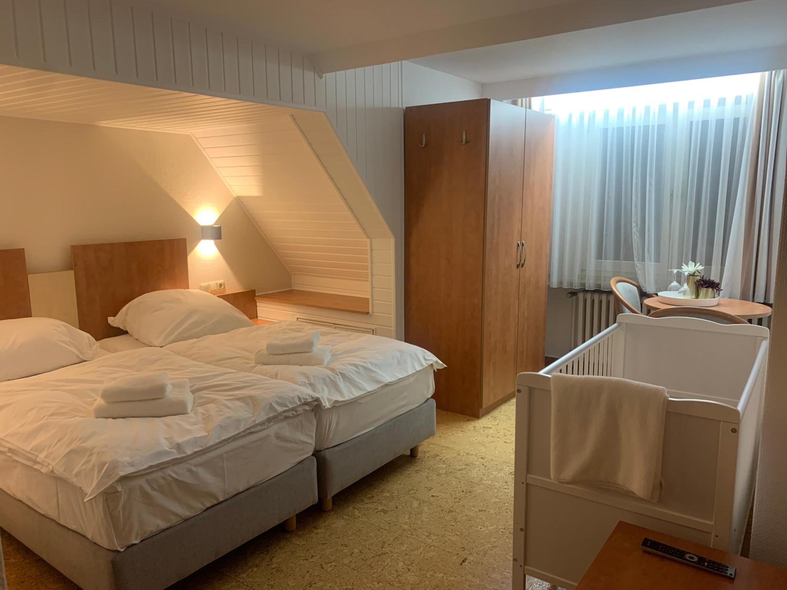 Modern Rooms with Premium Amenities: Each room at Hotel Gold´ne Krone is equipped with a desk and a flat-screen TV, ensuring a comfortable stay for all guests. Enjoy the convenience of room service and complimentary WiFi throughout the property.