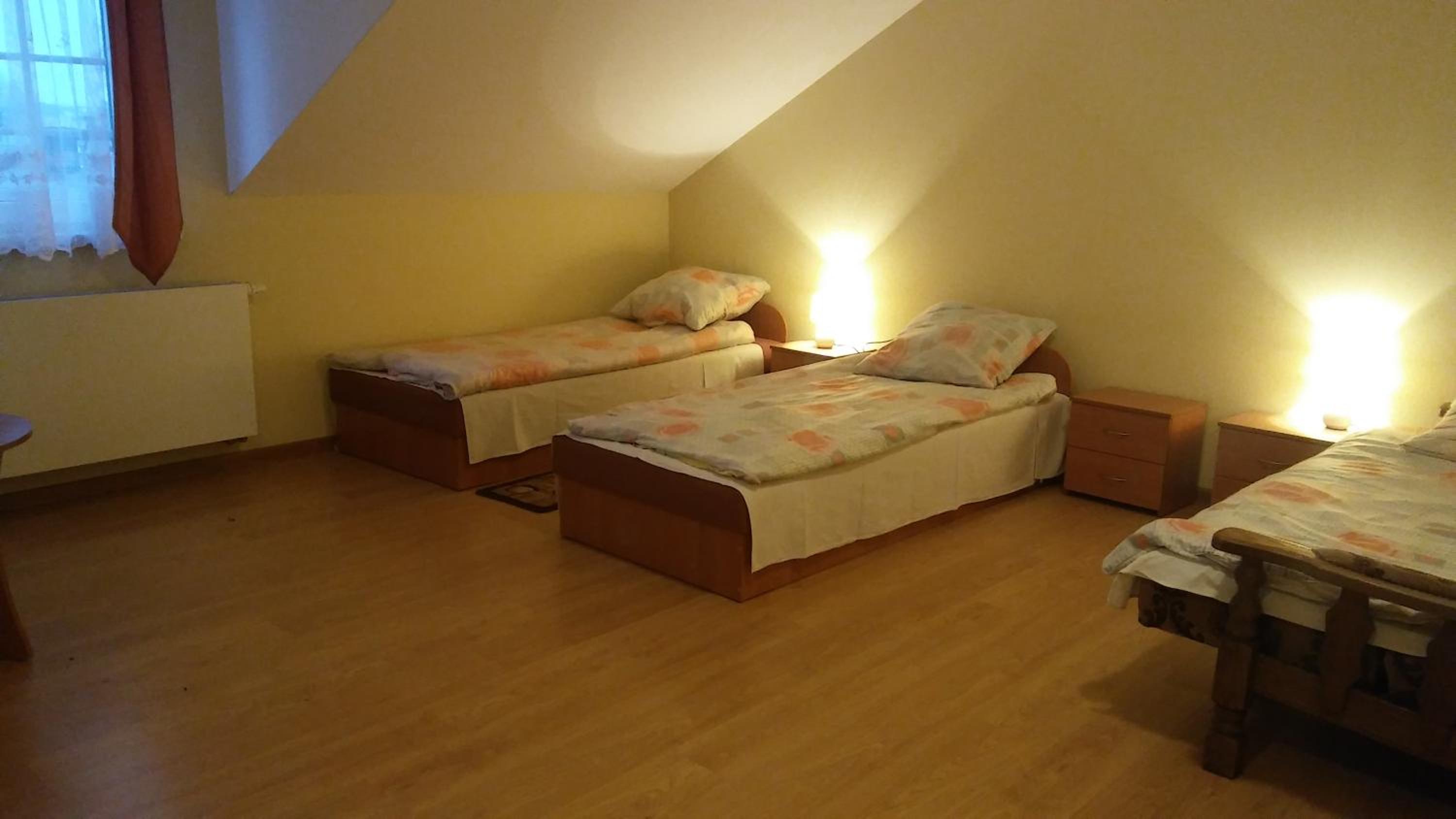 Dla 3 osób dostaliśmy 2 bardzo duże połączone ze sobą pokoje - super!. Cicha okolica, dobrze się spało. W oknach siatki przeciwko owadom, nic nam nie brzęczało :) No i śniadanie - absolutna rewelacja, obfite, świeżutkie, jajecznica pyszna, domowe naleśniki. No i przemiła obsługa. Dziękujemy !