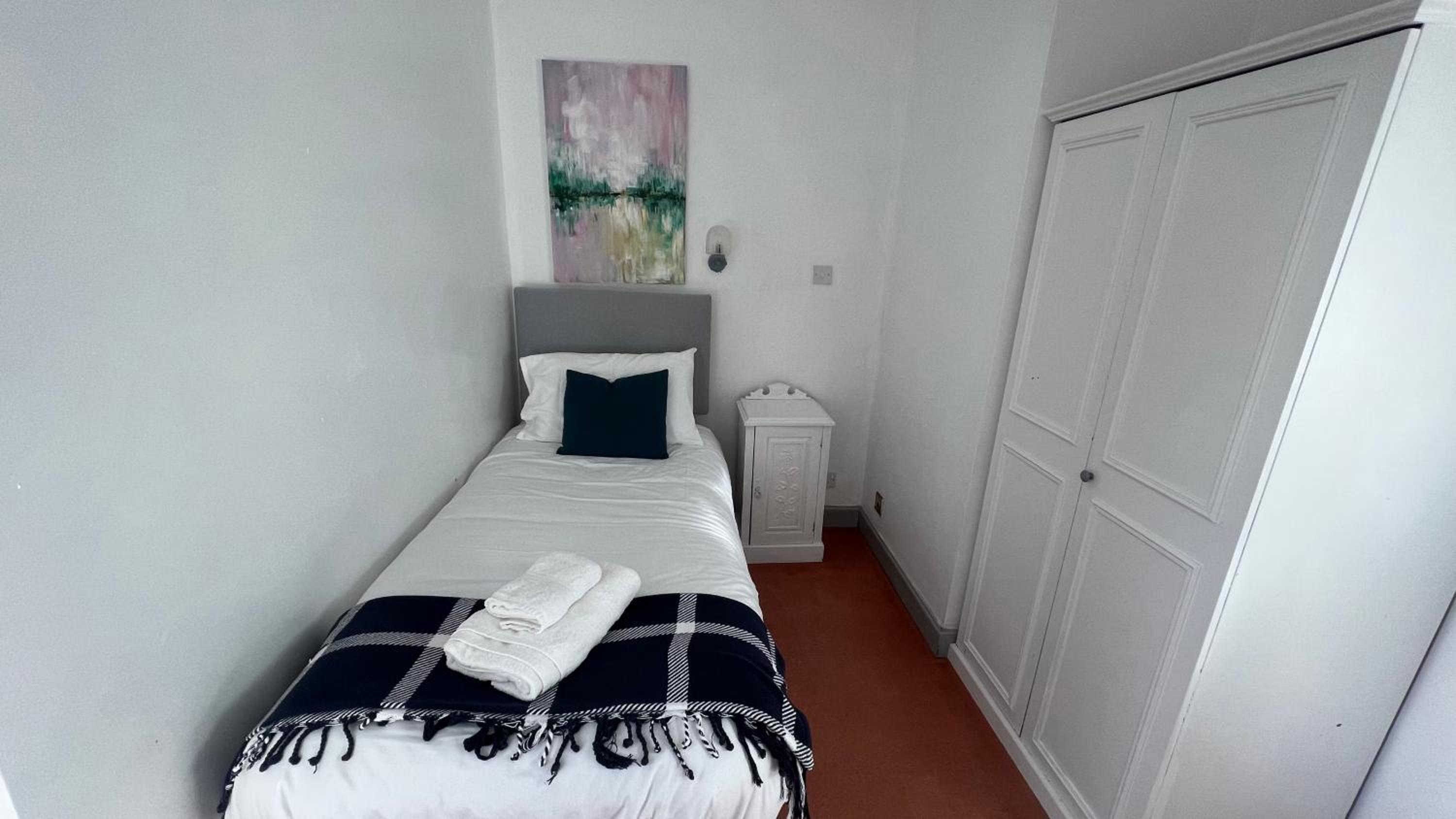 No TV in the room , heating in the room electric heaters should be put in the skip definitely passed there sell by date , decor poor , plaster coming off the wall in the bedroom , wallpaper coming off the wall in the dining room.