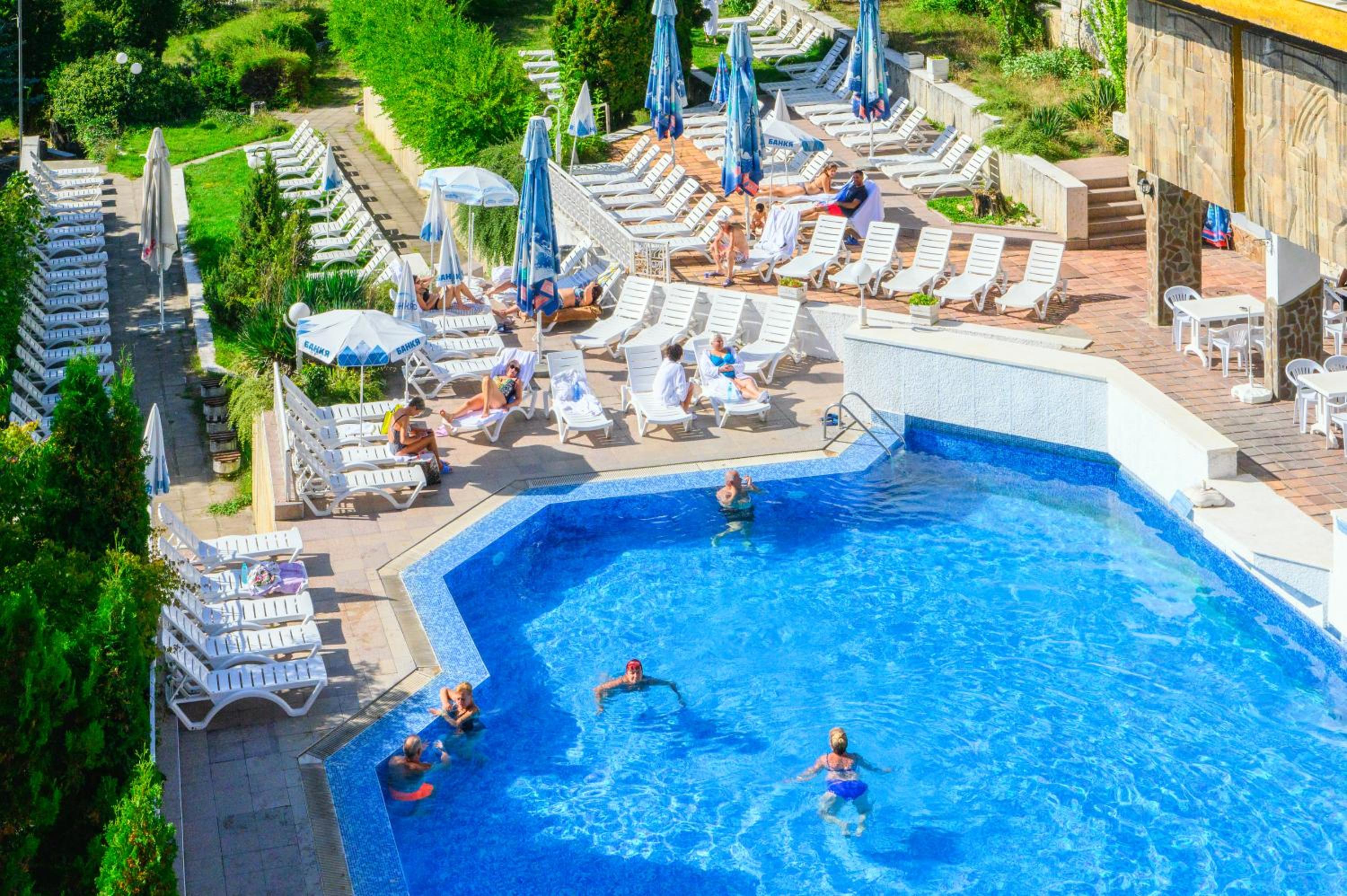 Остаряла база, малък басейн в който можеш само да се киснеш, без да плуваш, уж почистена стая, но кошче за боклук пълно.. Пълно с пенсионери по програма на НОИ... Не е за млади хора... Върнах се в бай Тошово време...