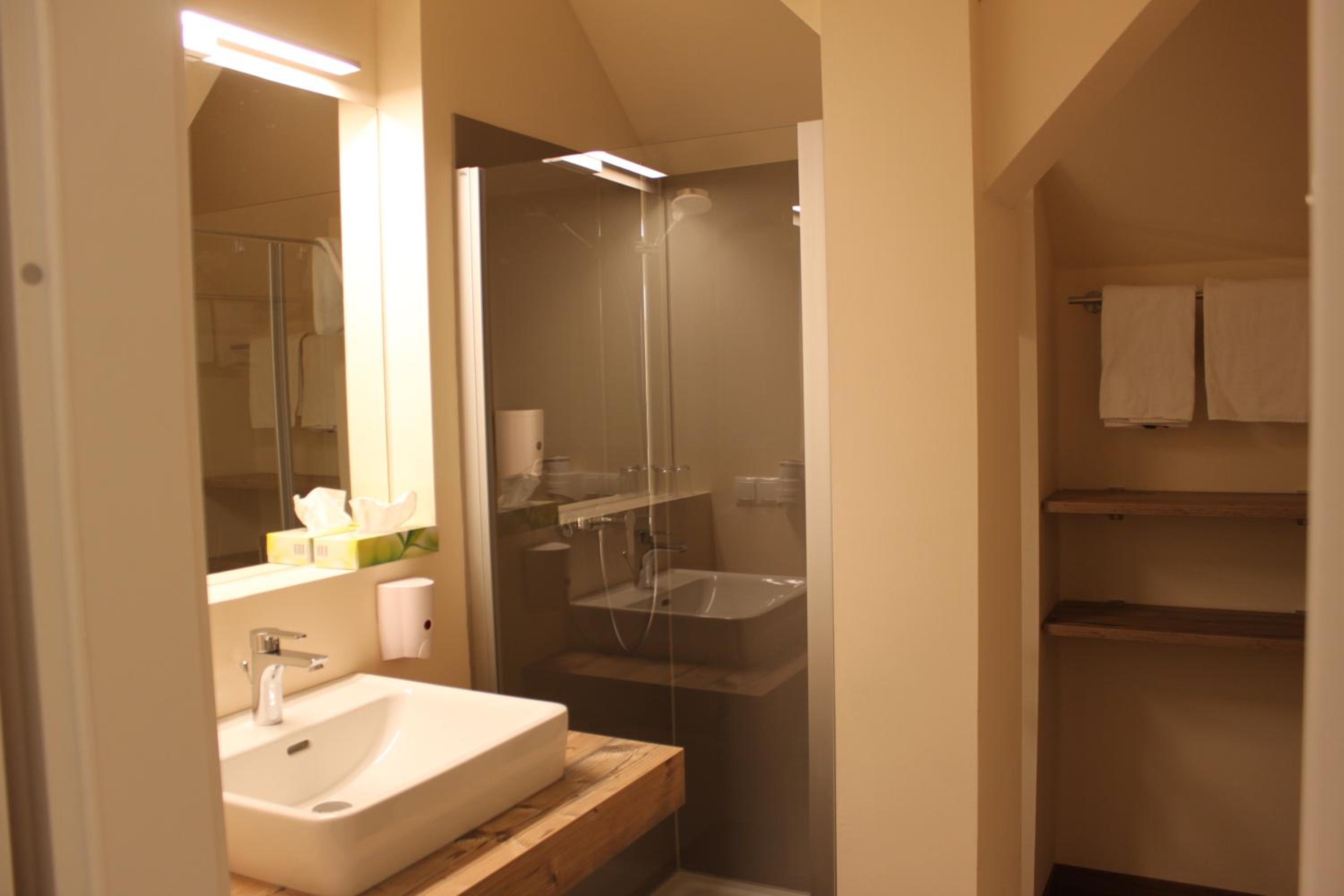 Good room, good bathroom, both very clean, good breakfast in coffee shop at church side.