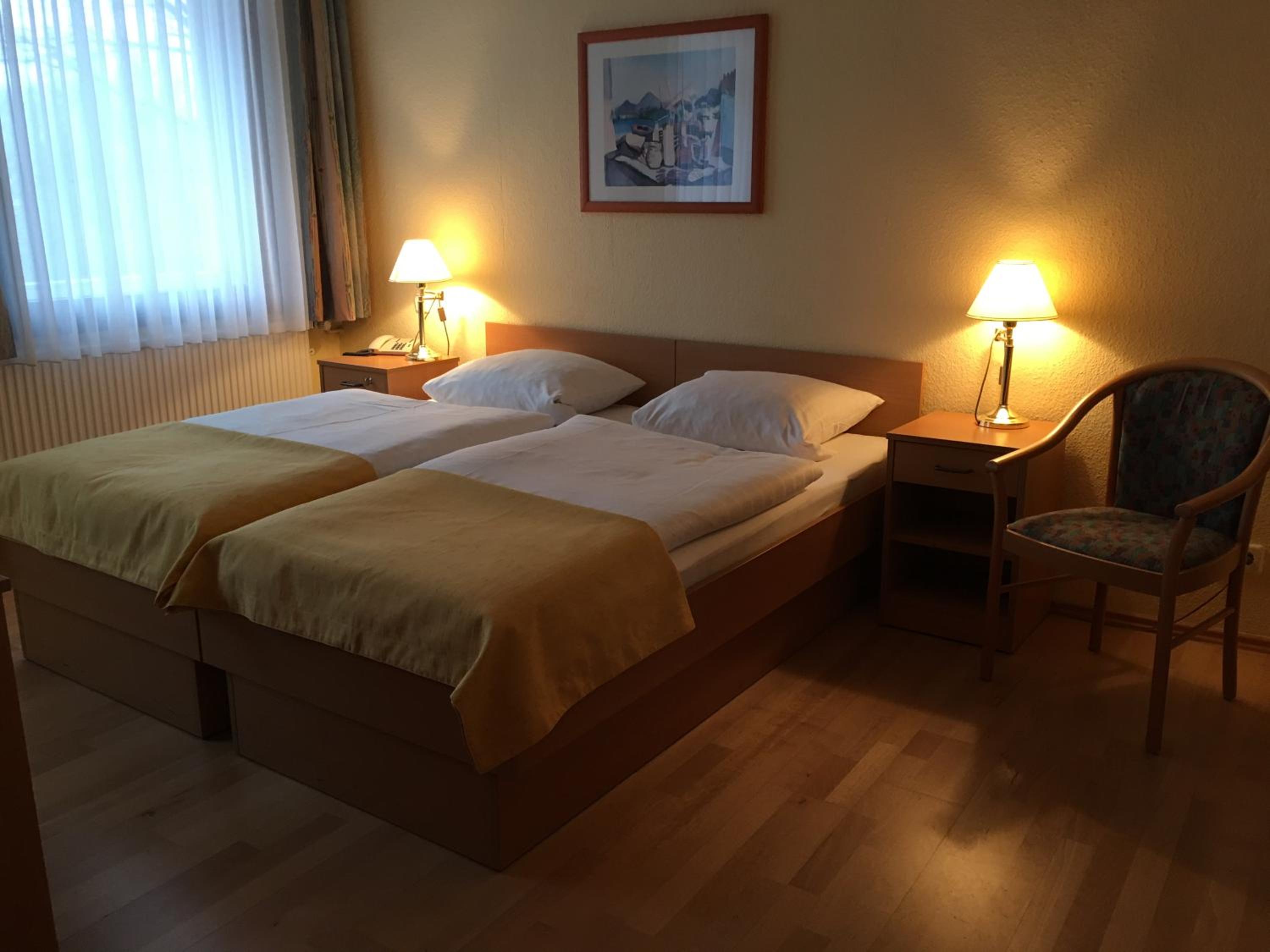 Hotel Steinkrug is convenient to the Autobahn. I arrived on their rest day but my key was waiting for me in a security box. All I had to do was make a phone call and was given a security number and I got my key. I have used this Hotel several times before and would recommend.