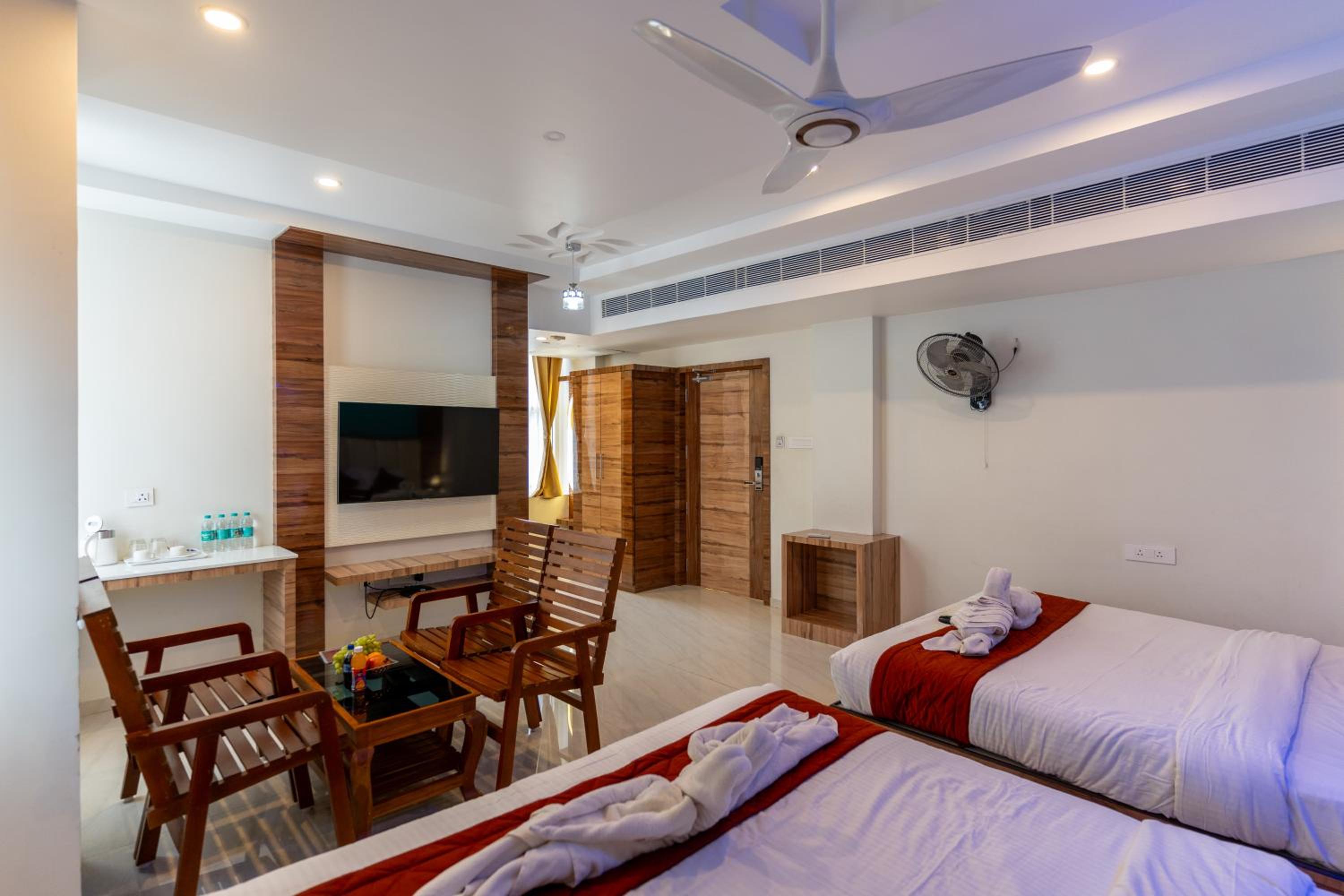 Experience comfort in every detail at Sree Bharat Residency. Our air-conditioned rooms feature modern amenities including a coffee machine, ensuring a relaxing stay. The 24-hour front desk, room service, and free WiFi add convenience to your visit, while the garden and terrace provide a serene environment to unwind.