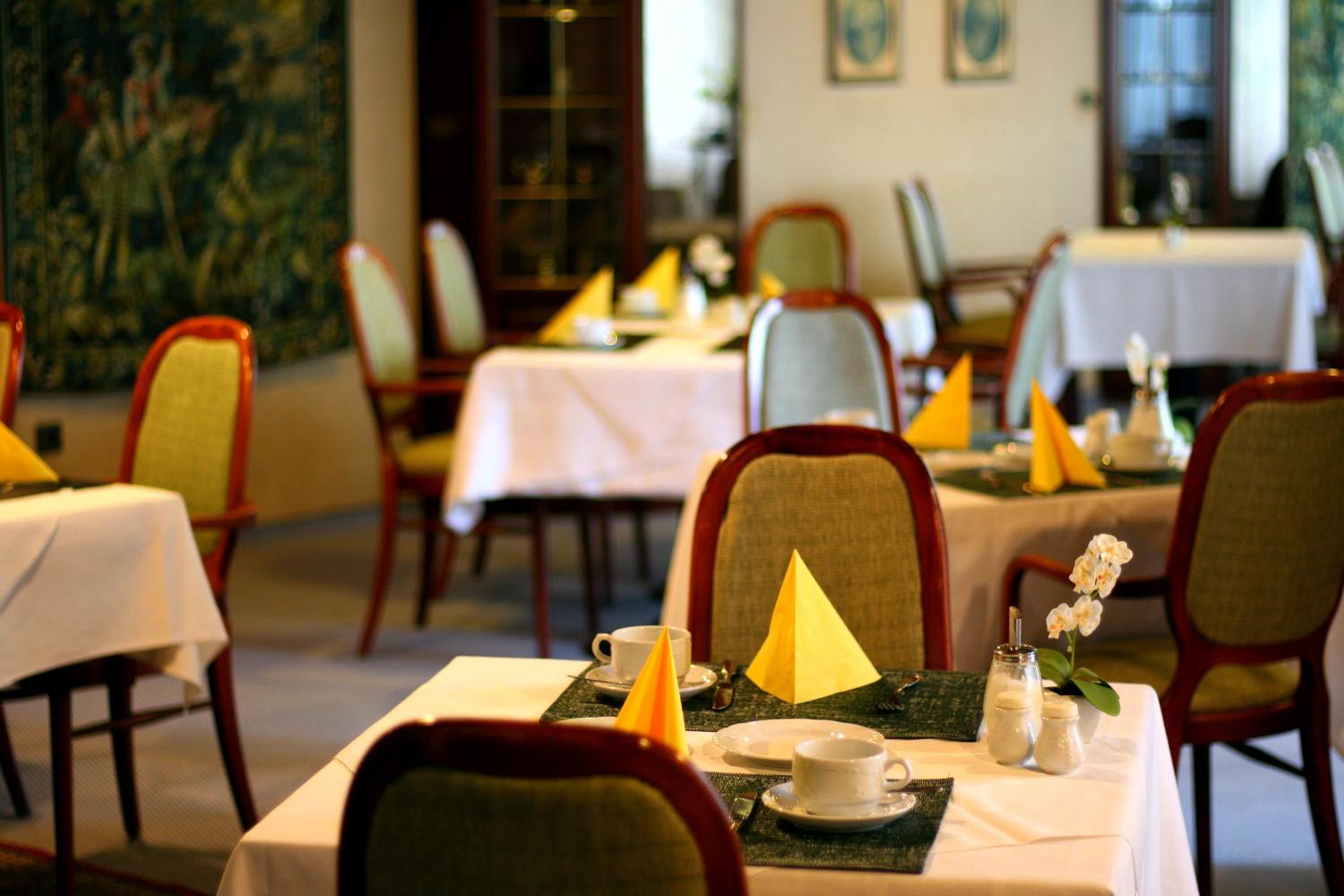 Start your day with a delightful breakfast buffet in the elegant dining room. The soft lighting and nostalgic prints set a romantic and historic ambiance for a memorable dining experience.