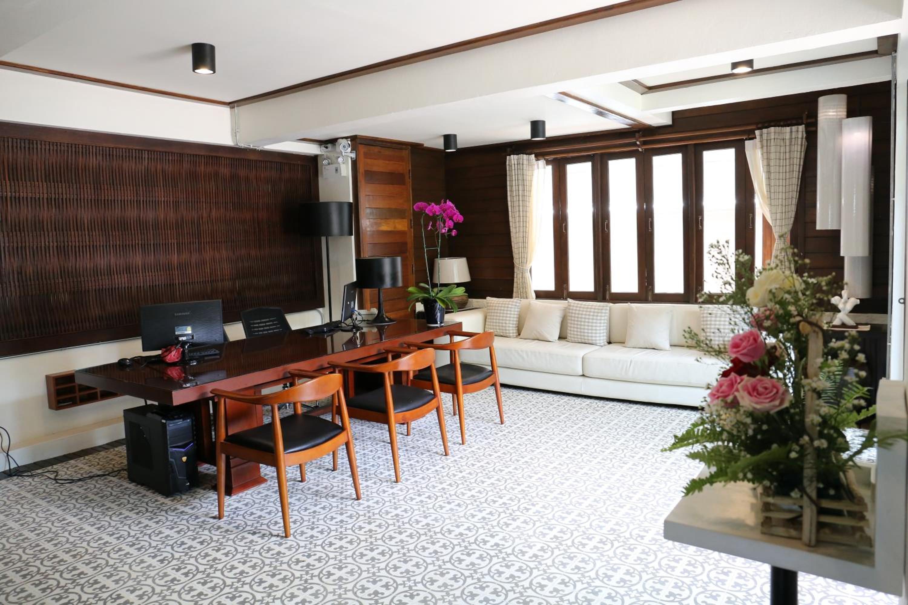This is a cheap room located close to Loy Kroh road, the room is large, spacious, with dark wood throughout and weak lighting. The bed was large, firm, and I slept well on it. My room was second floor, closest to road, right next to elevator and it was quiet all night. It also has a fairly large balcony on it with a small couch
