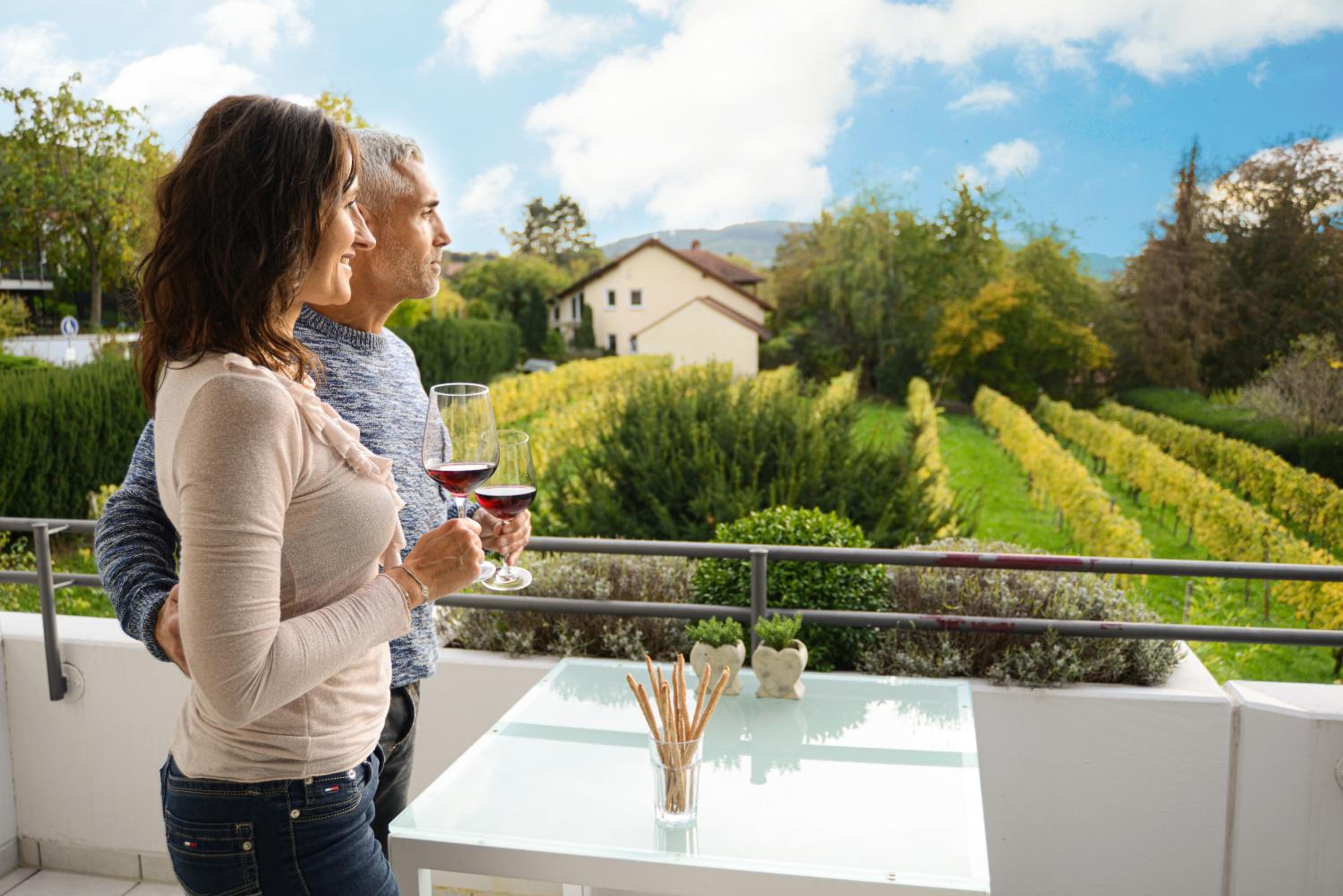 Experience comfort and style in each room and apartment equipped with modern amenities and stunning views of the surrounding orchards and vineyards.