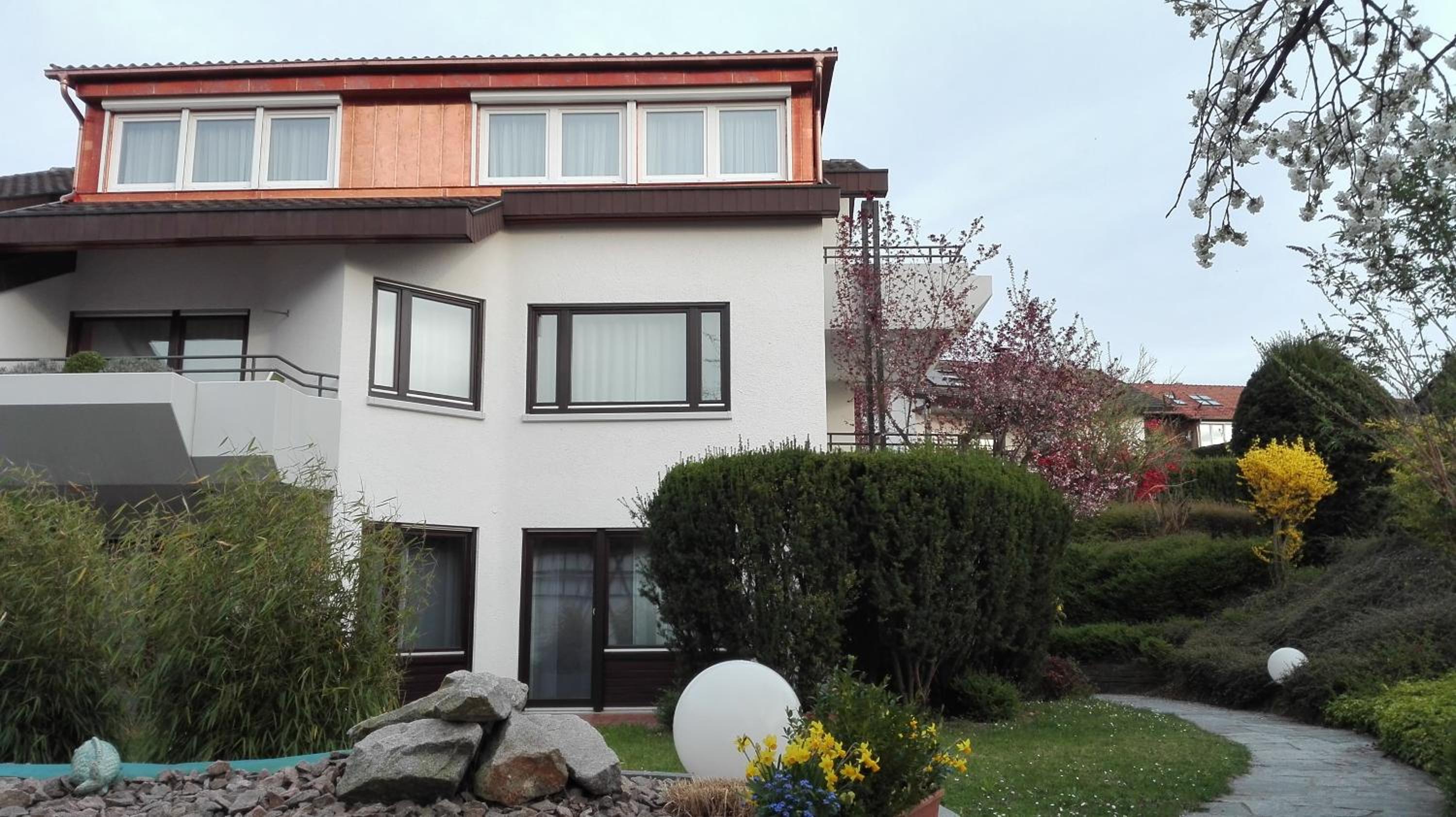 Sehr ruhig in einem schönen Einfamilienhaus- Quartier gelegen, grosse Wiese vorm Fenster mit alten Obstbäumen, die grad in herrlicher Blüte standen. Nette, offene Gastgeber... Liebevoll arrangiertes Frühstücksbuffet...