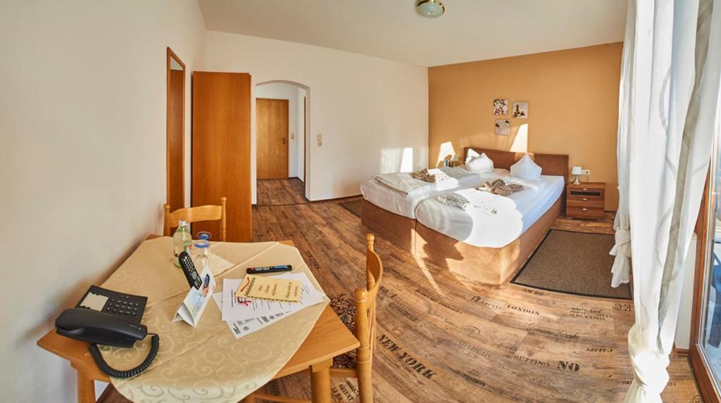 sehr freundlich, alles war problemlos zu regeln, sauber und das bad ist gut ausgestattet, super dusche, sehr gutes bürgerliches restaurant, parkplatz.