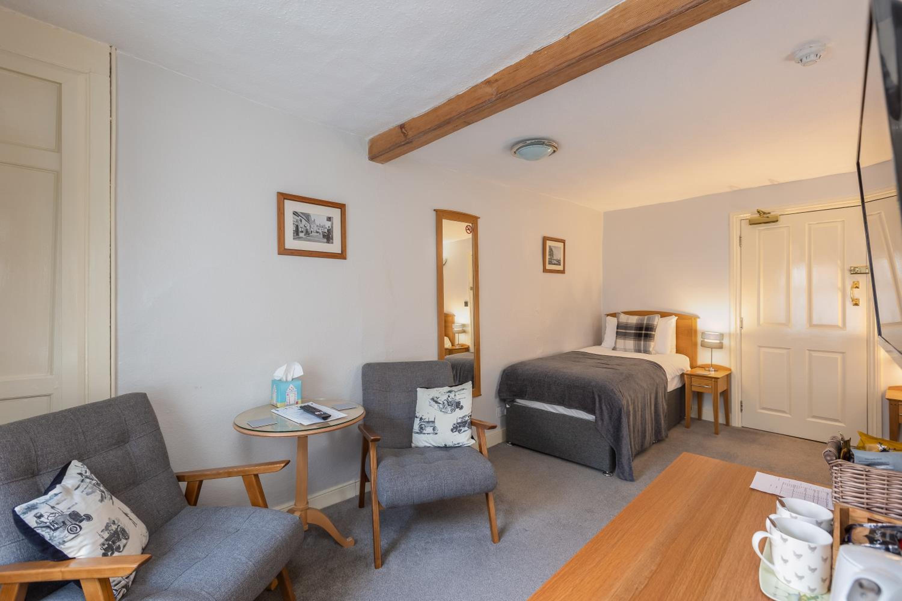 We decided to stay an extra night and they were very accommodating.For a hotel we found the drinks and food a good price.Old and quirky and the rooms quiet from other guests would highly recommend it’s all so lovely pretty and nice.Close to the local bus drop off,shops,amenities,restaurants and pubs.