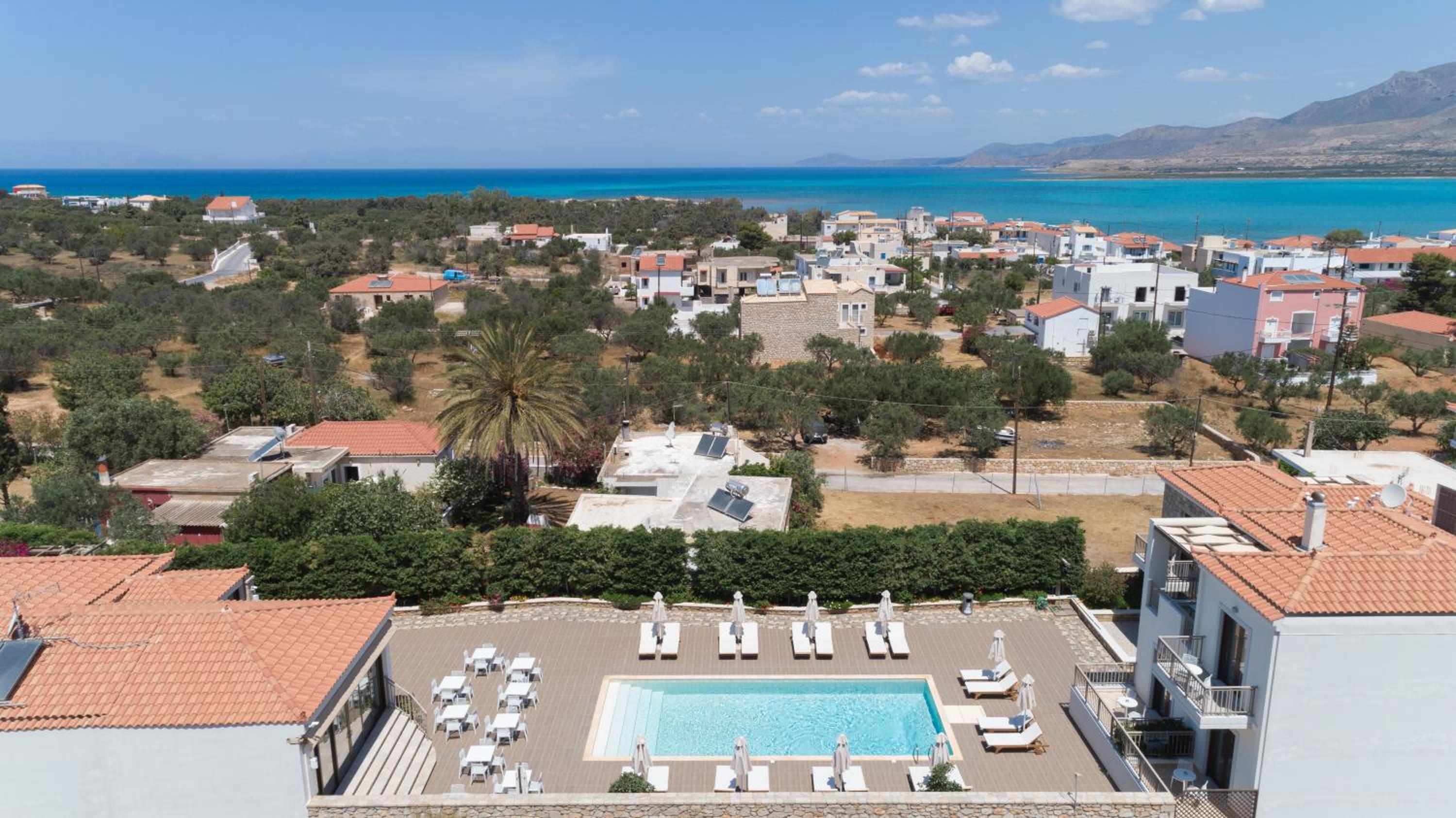 Établissement tenu par une famille grecque, locale, très accueillante. Nous avons passé un très bon séjour. C’est très propre moderne, les chambres sont agréables confortables, beaucoup de place pour le rangement dressing. Le ménage est fait cinq fois par jour dans les parties communes. La piscine est top, elle est transat très confortable.
