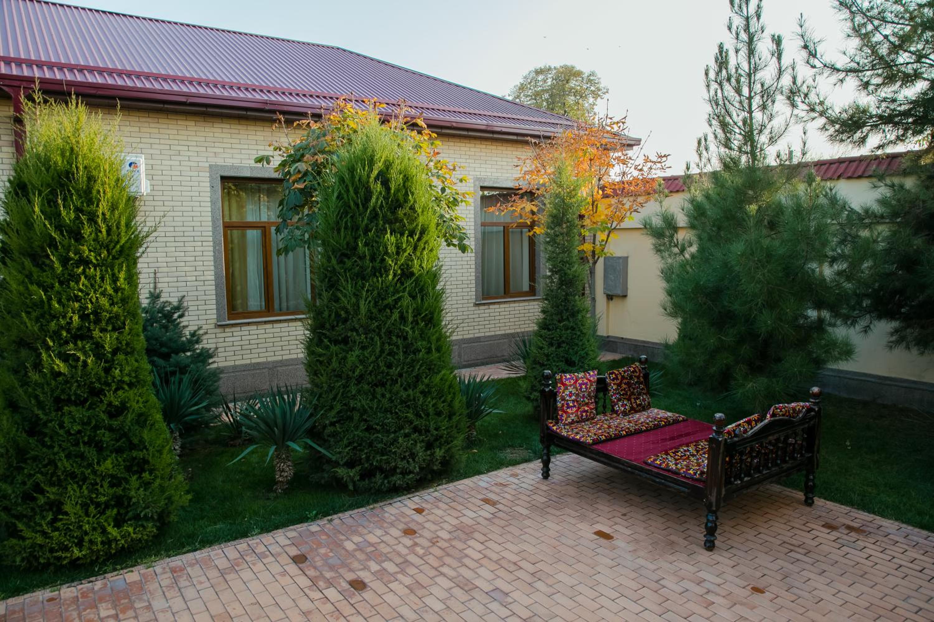 Garden Oasis: Majestic Palace Hotel offers a serene garden where you can unwind and relax amidst nature after a day of exploring Samarkand.