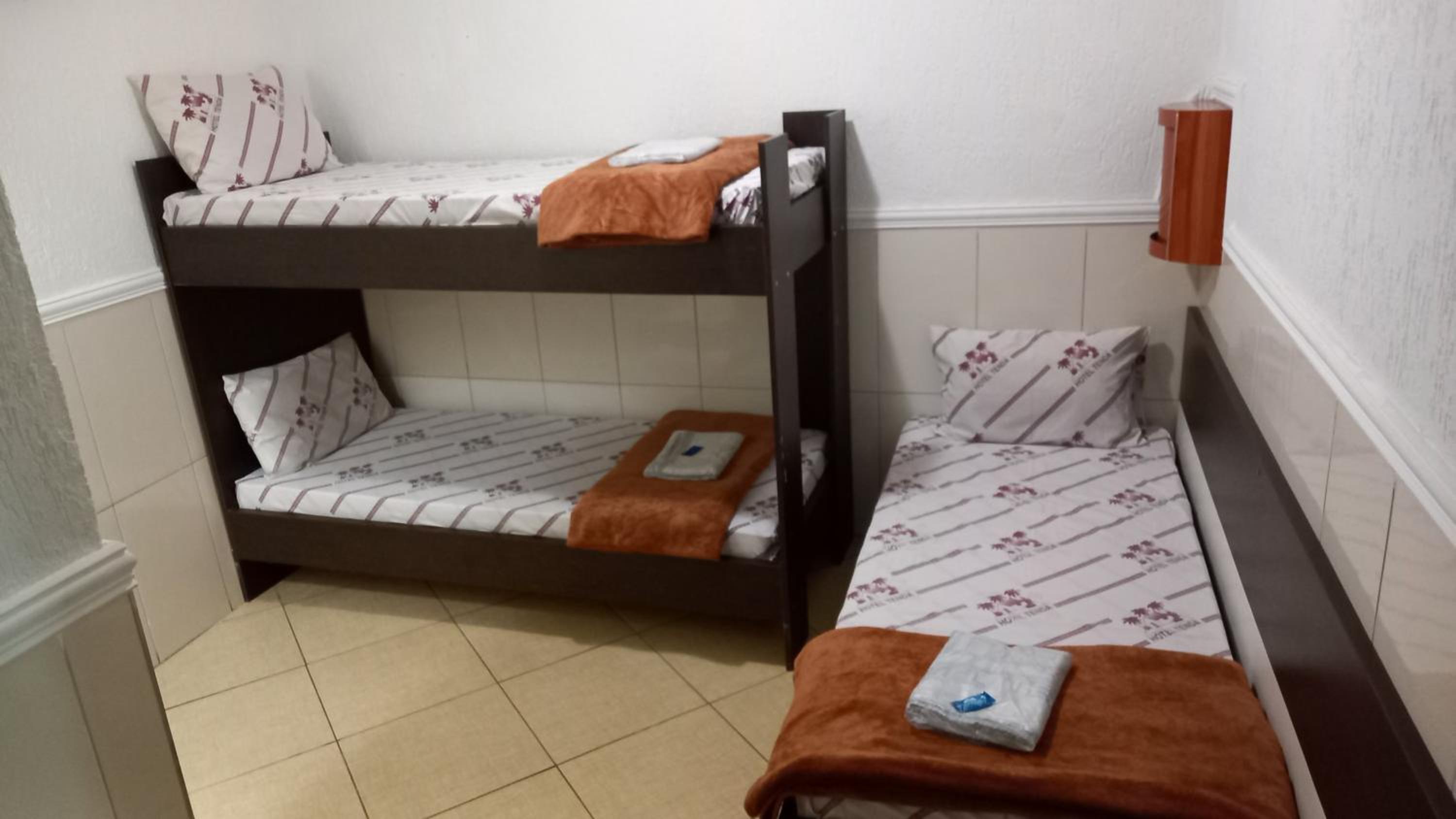 Each unit at our hotel features a flat-screen TV and a private bathroom with modern amenities like a shower and slippers, ensuring a comfortable stay for our guests.