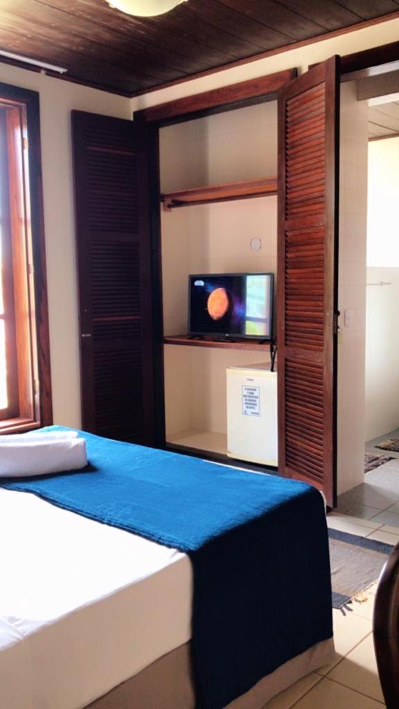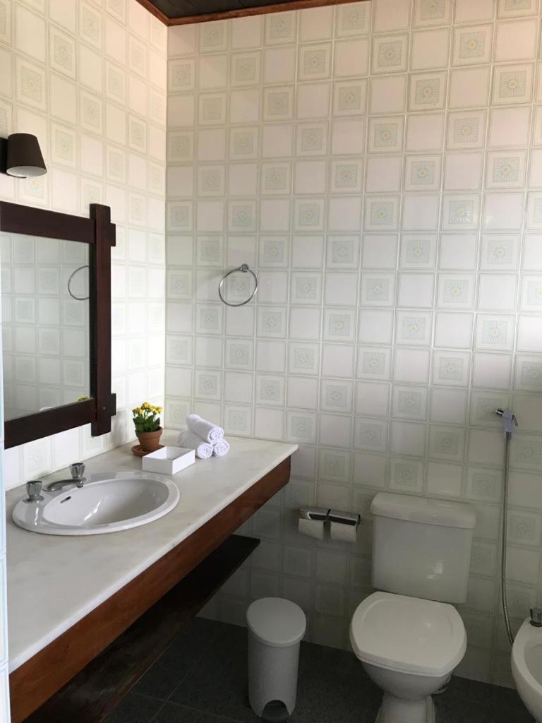 O quarto. Móveis antigos, banheiro com banheira precisando de reforma