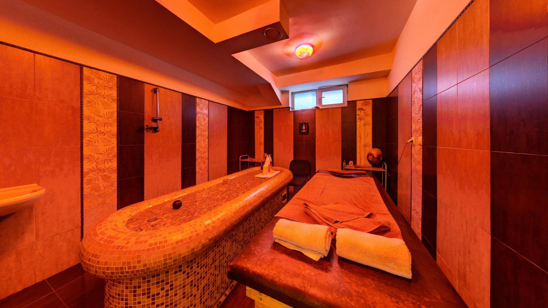 Luxurious Spa Centre: Indulge in relaxation at our spa centre offering a hot tub, sauna, and hot spring bath. Whether you prefer the indoor pool or the year-round outdoor pool, rejuvenation awaits at Balneo Hotel Aura.