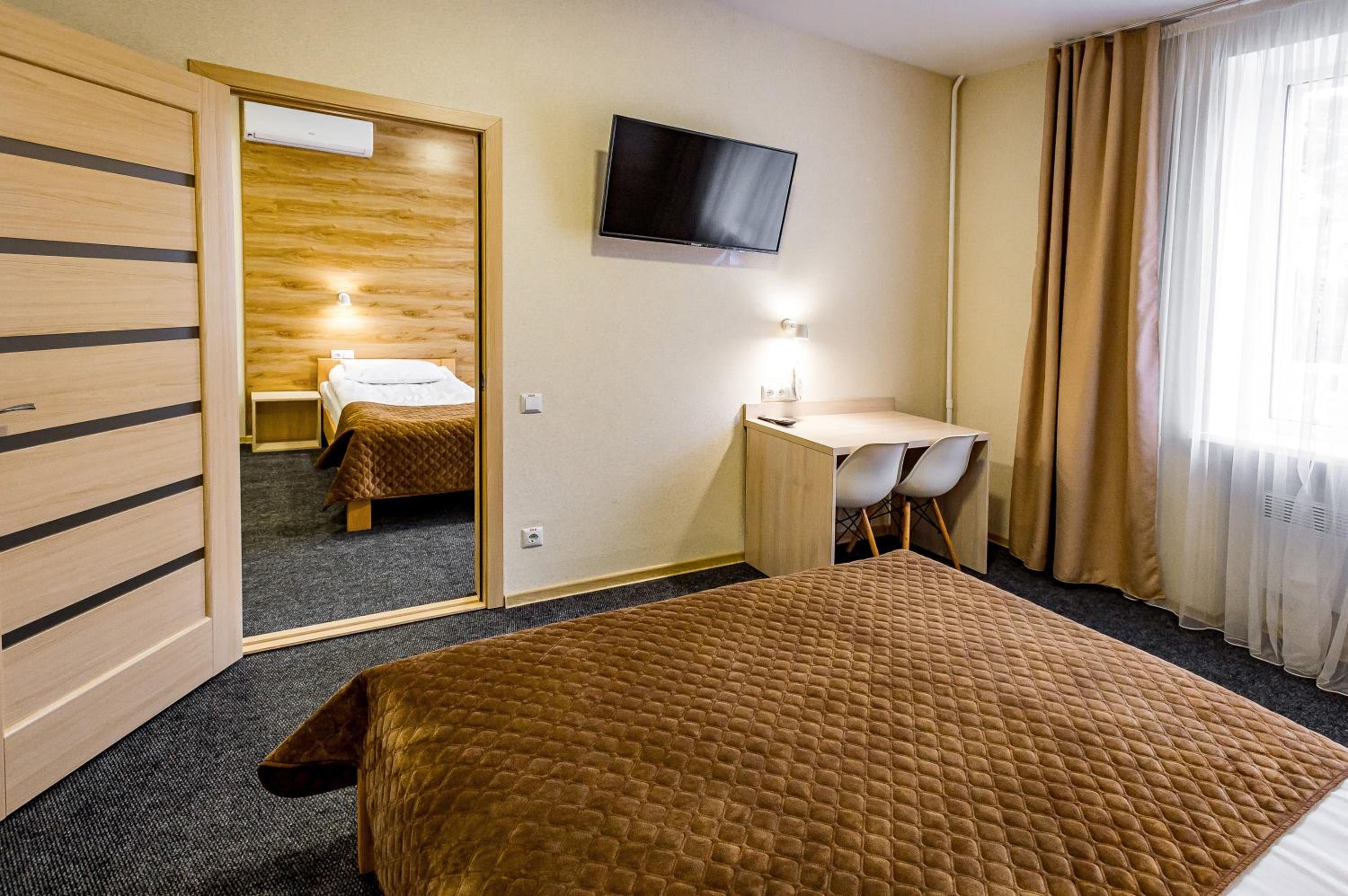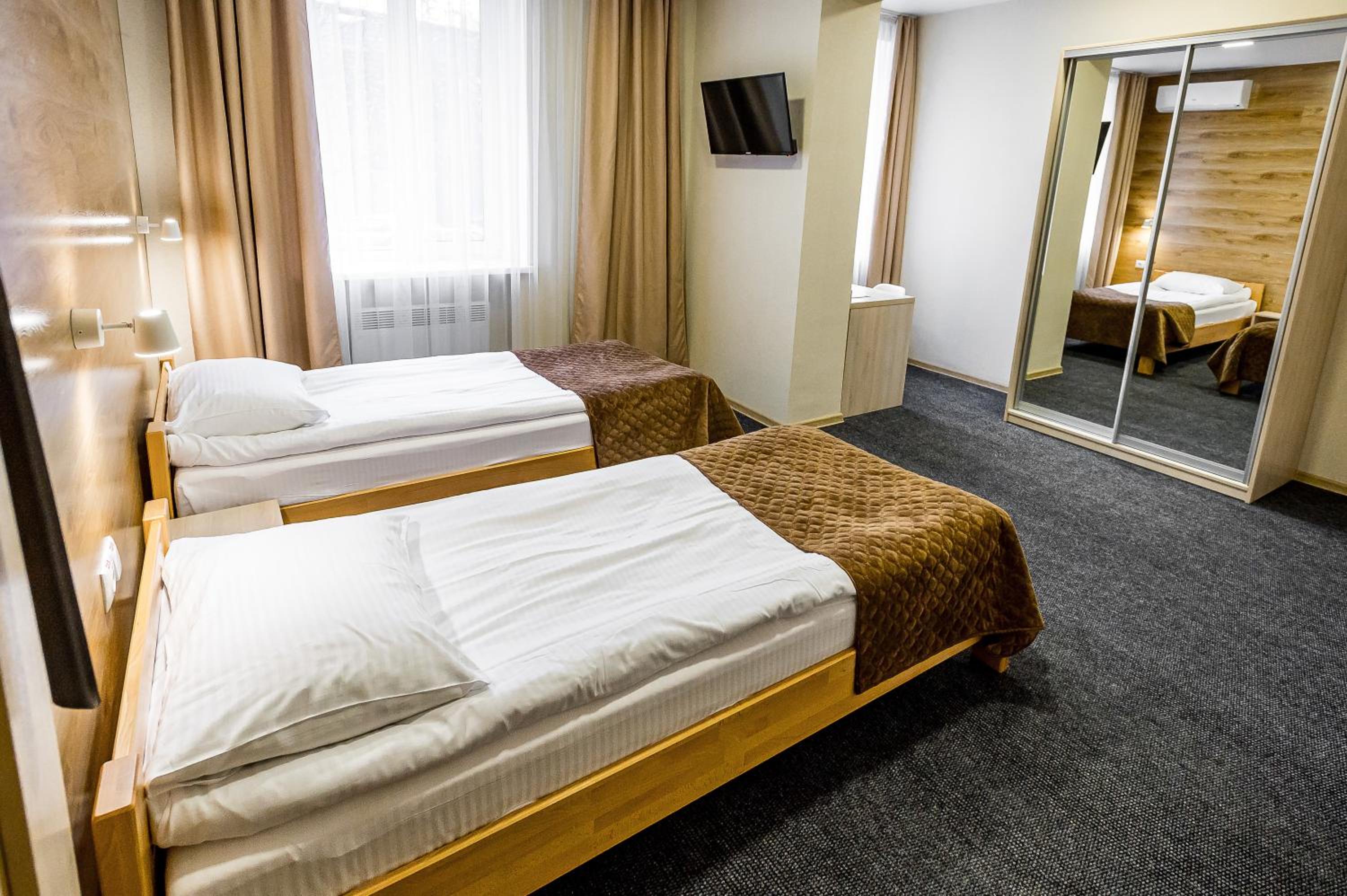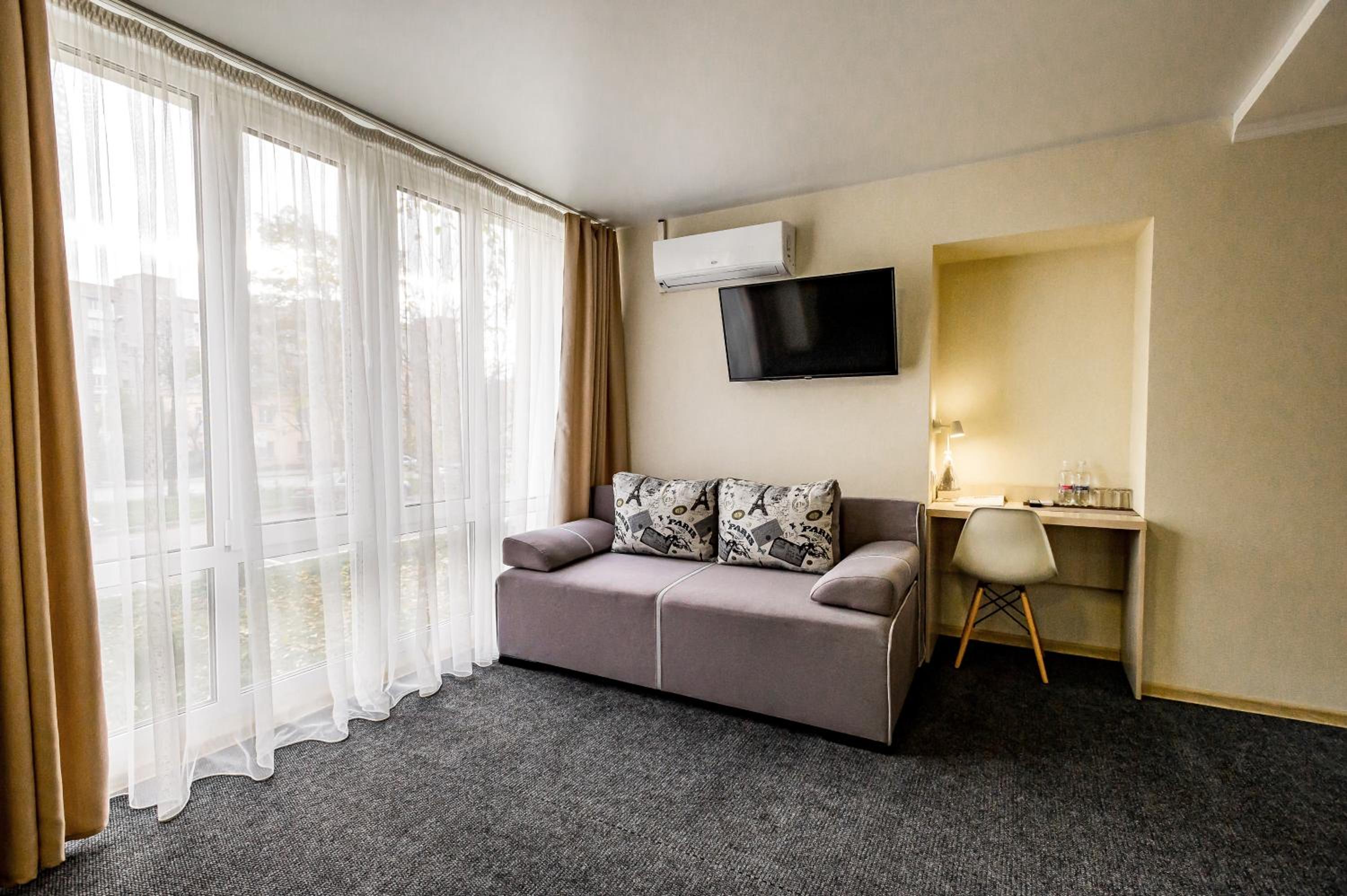 Experience the perfect blend of comfort and style at Rooms Hotel in Vinnytsya. Each 3-star room offers stunning city views and access to a beautiful garden and terrace. Enjoy modern amenities such as air conditioning, a flat-screen TV, and a coffee machine, ensuring a relaxing stay.