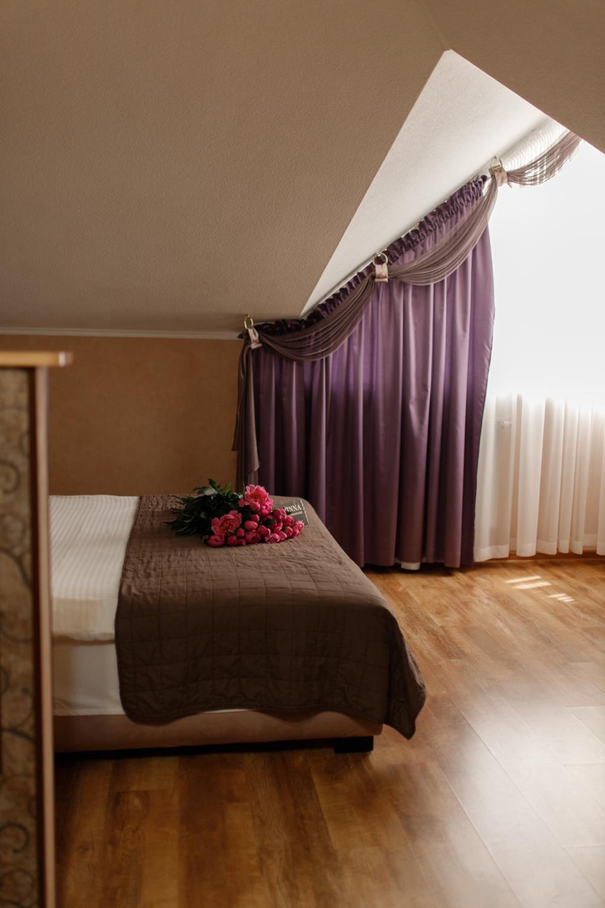 Готель розташован в тихому районі. Близько є продуктовий магазин та хвилин 10 пішки є АТБ. Жив на 3 поверсі. Кімната велика, простора, тепла , але трохи напрягає скошений дах. Білизна чиста, кровать зручна. Персонал дуже привітний. Дуже сподобалось можливість прийняти спа процеду в готелі( хамам та масаж) . Завтраки смачні і можна вибрати.