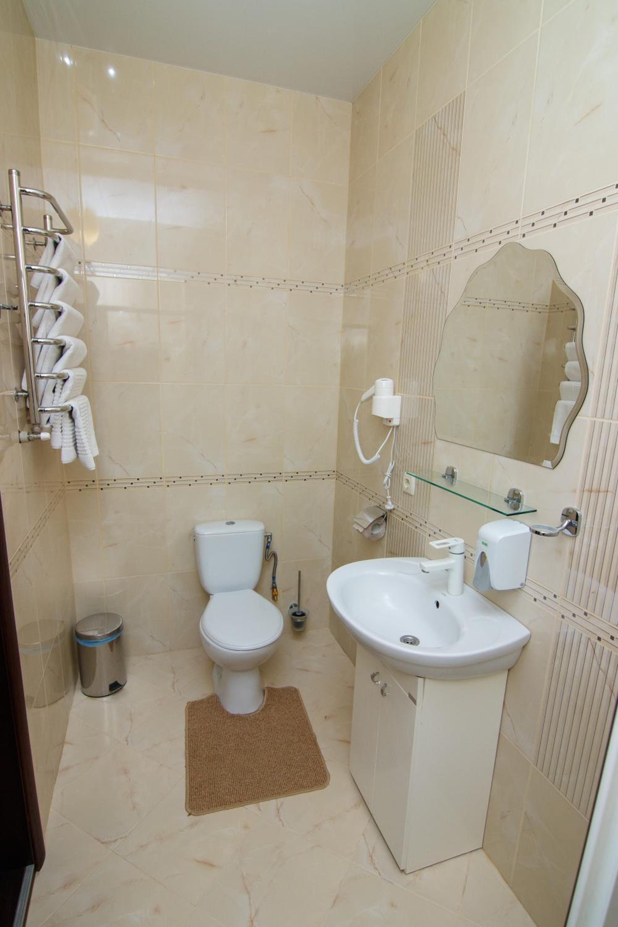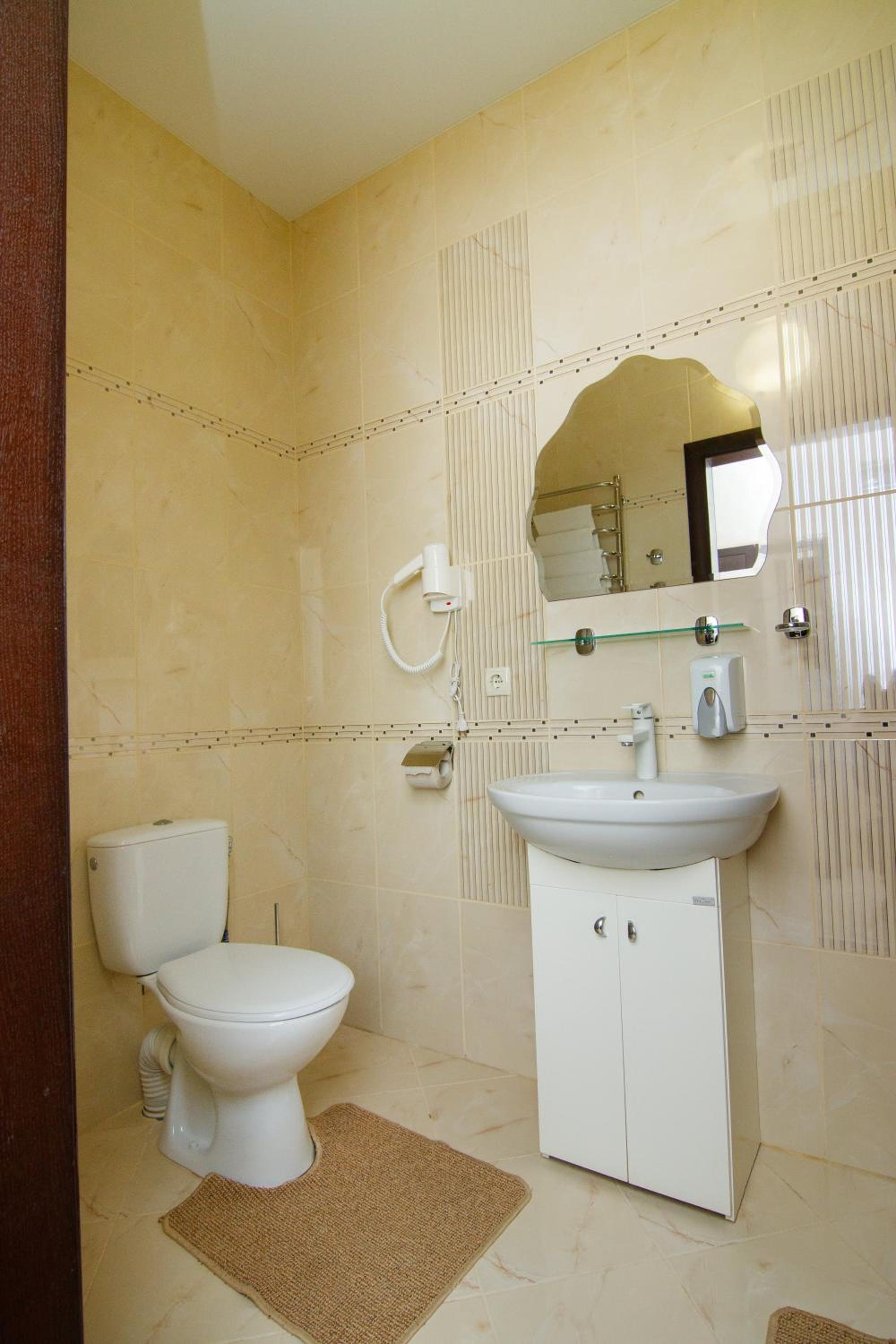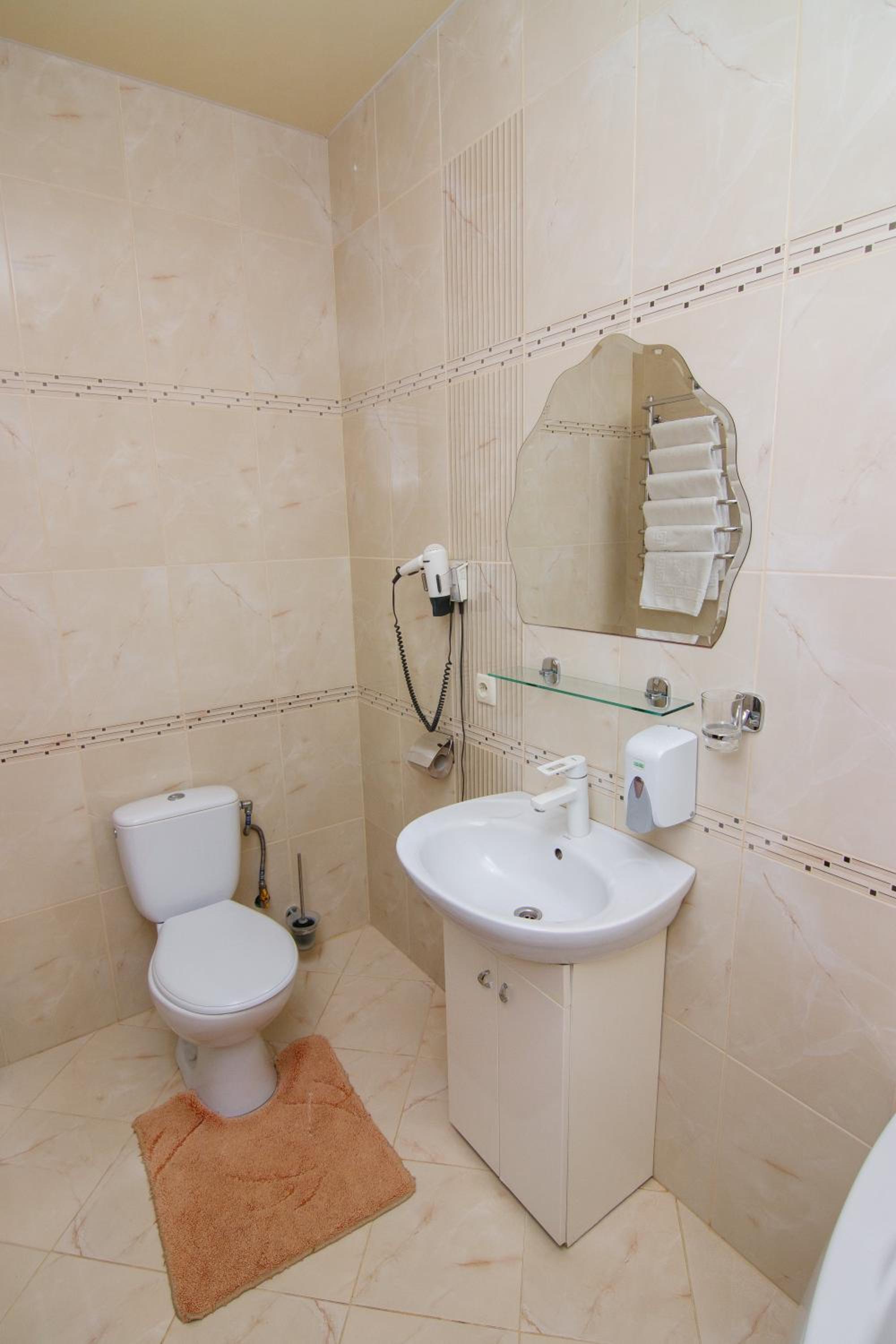 Теплий просторий номер, велика ванна, наявність фену, просторе ліжко, якісний матрас.