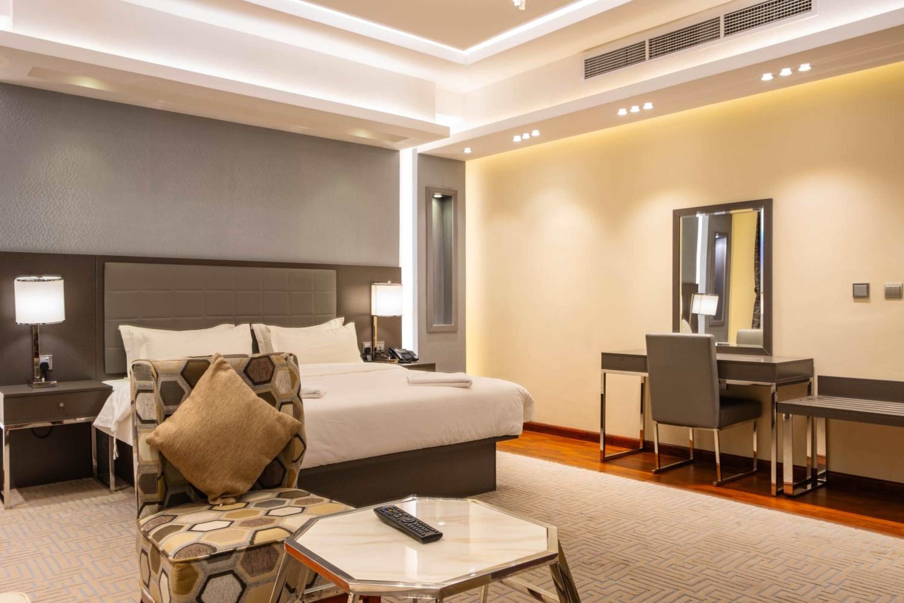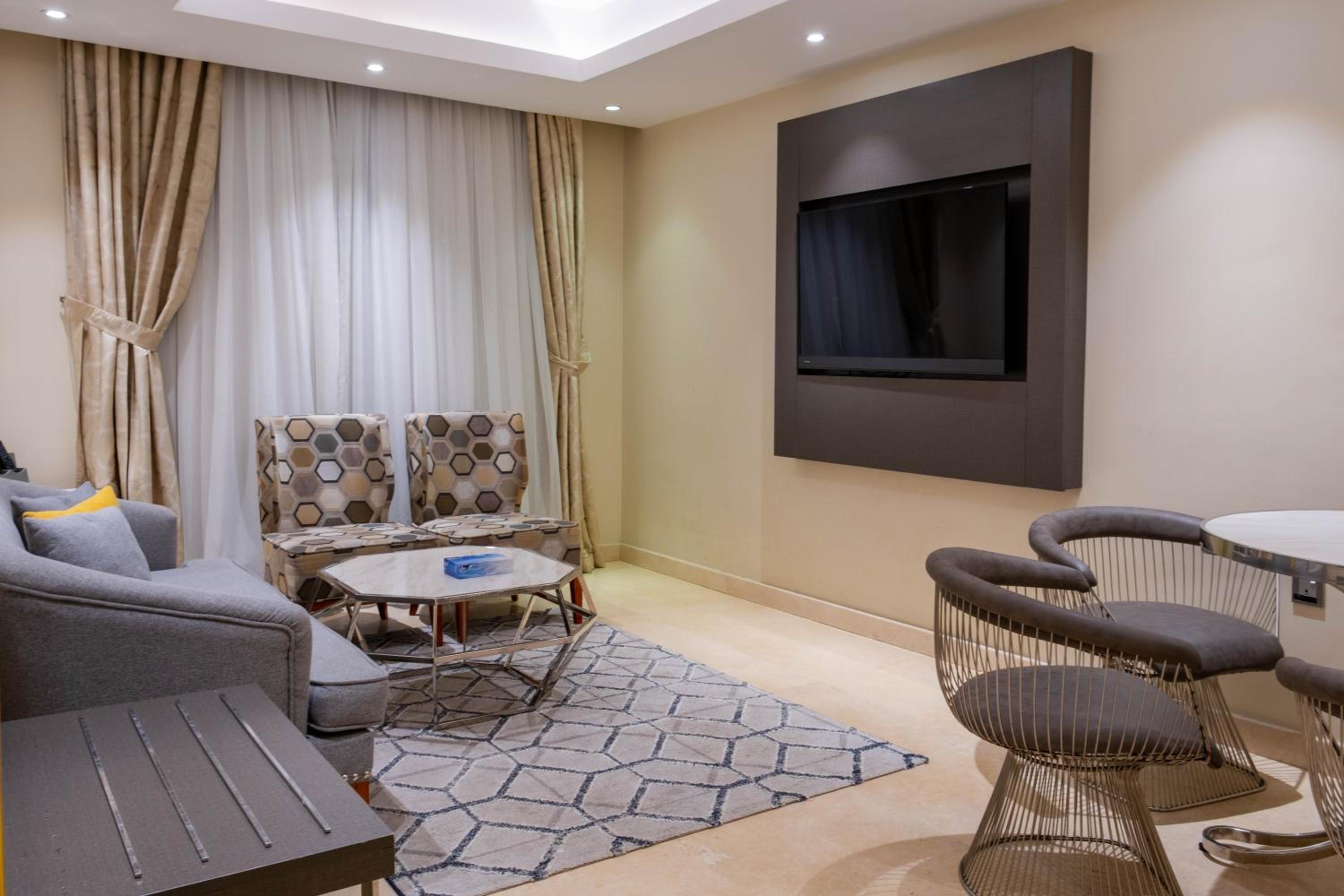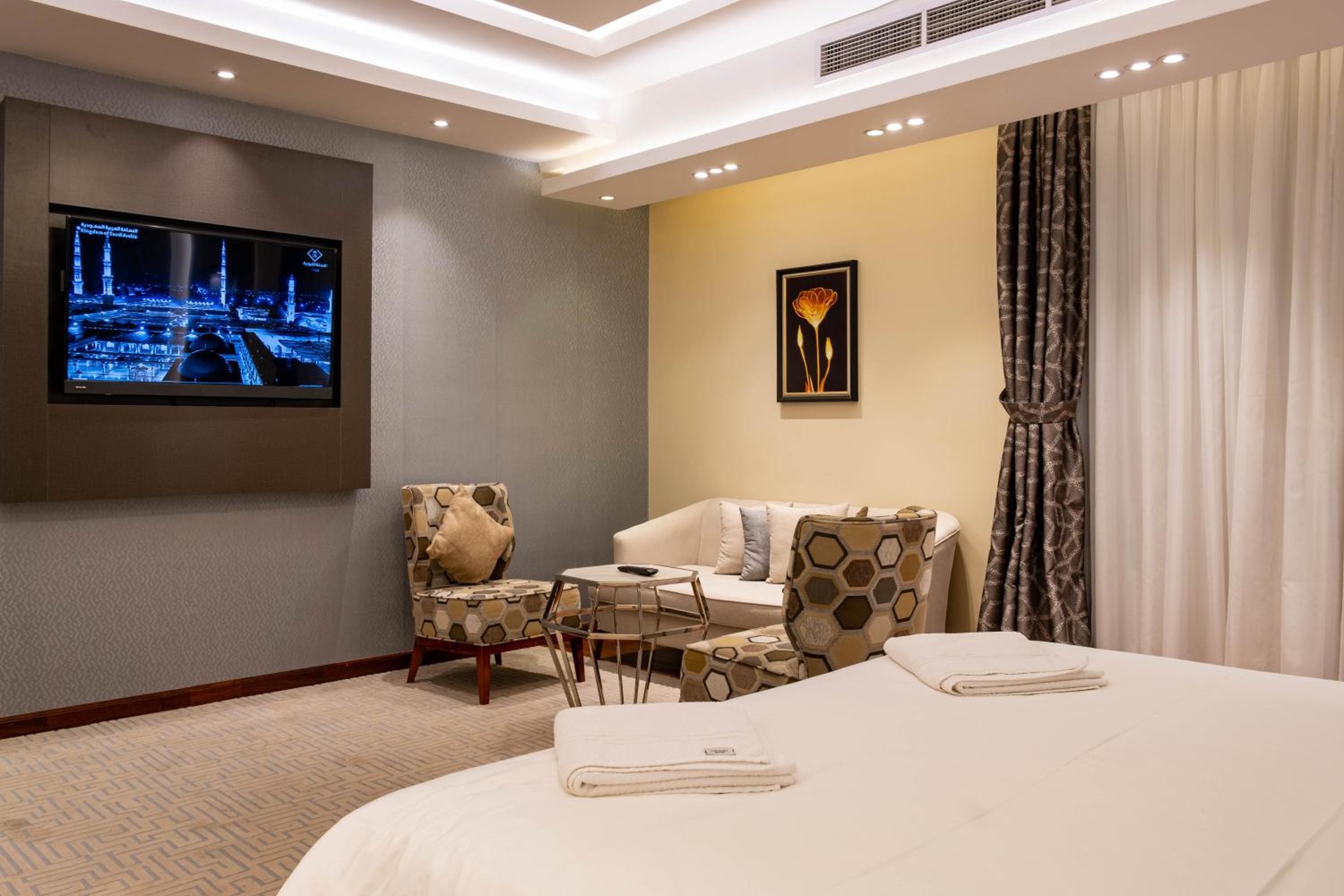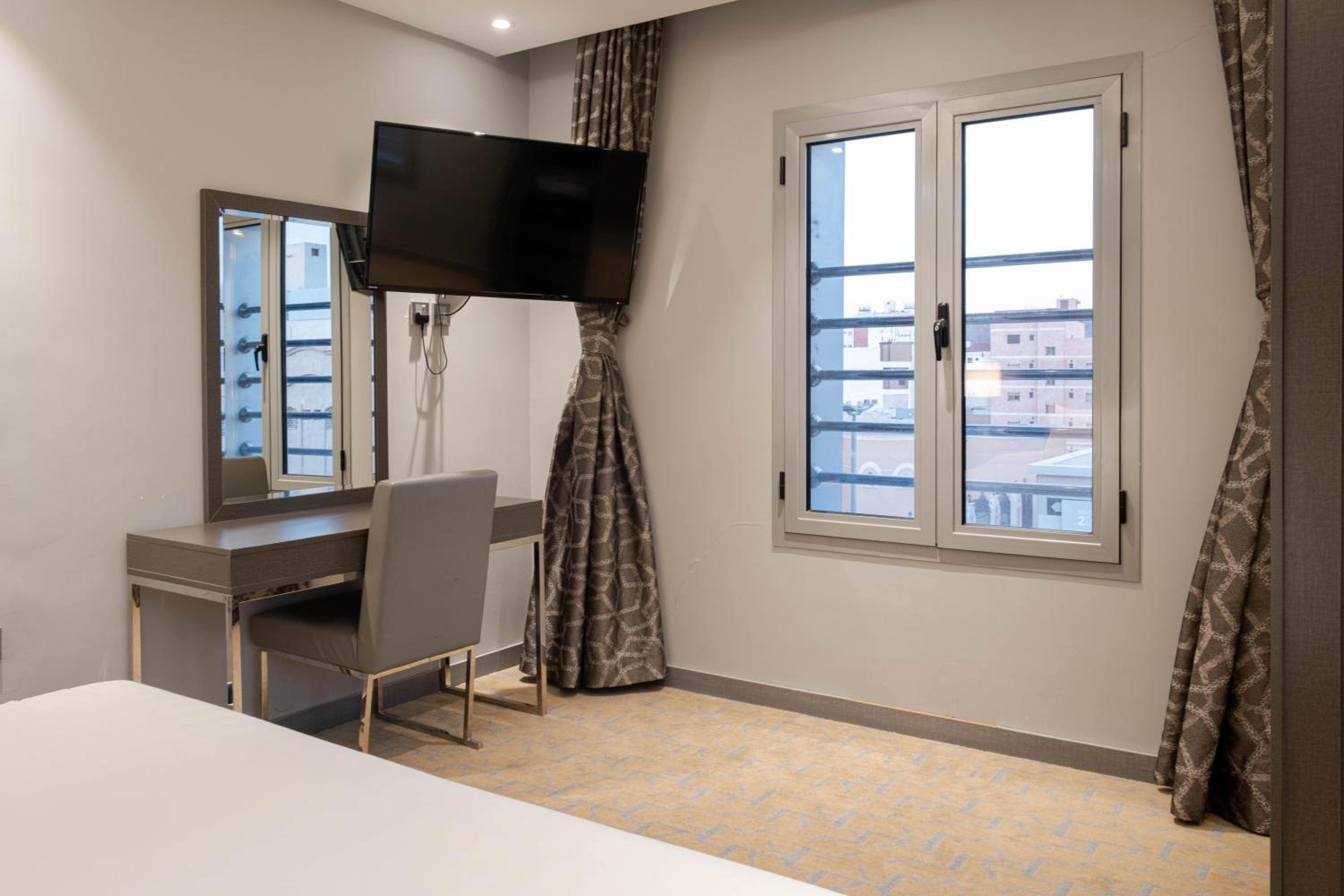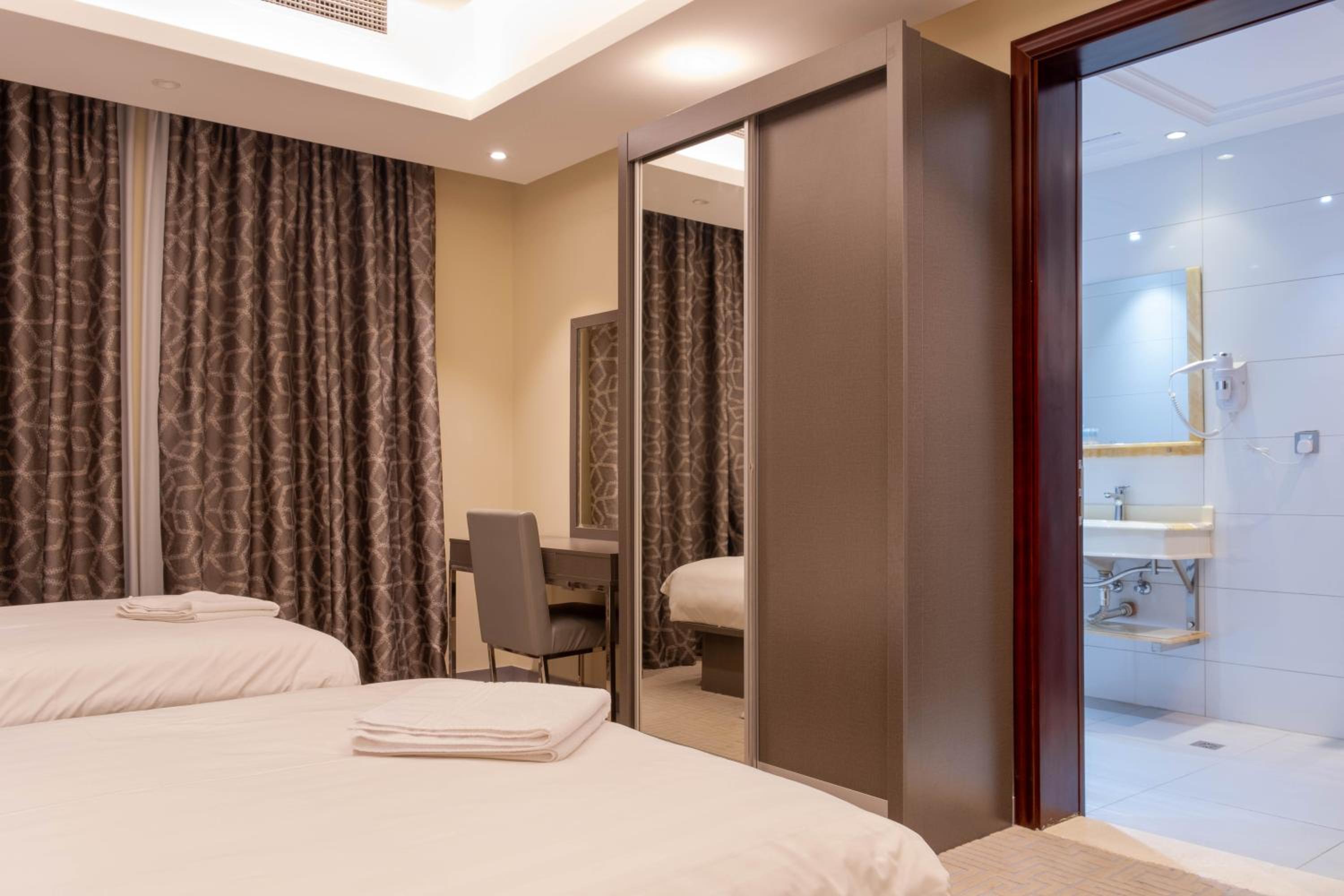 Nersyan Taiba Hotel Apartments in Al Madinah offers air-conditioned rooms with modern amenities, ensuring a comfortable stay for guests. Each room is equipped with a wardrobe, kettle, safety deposit box, flat-screen TV, and a private bathroom for convenience.