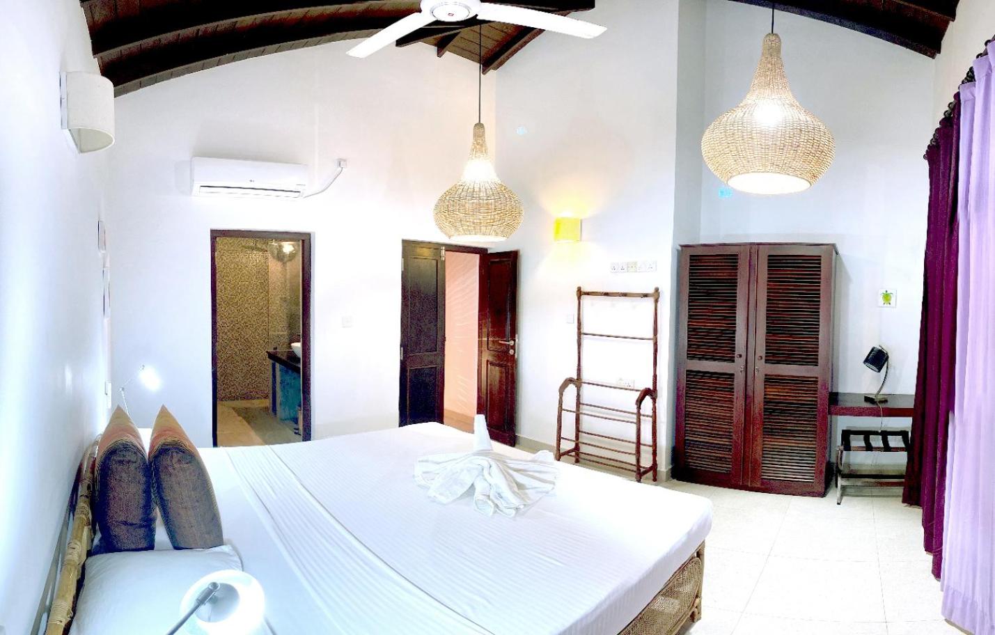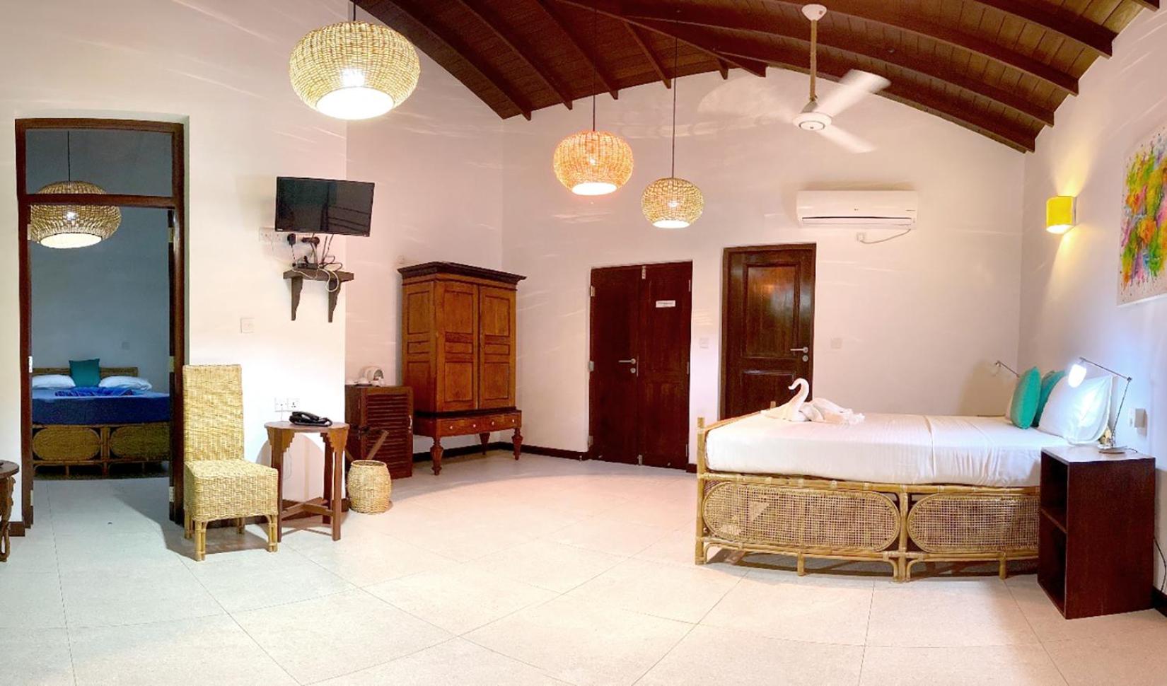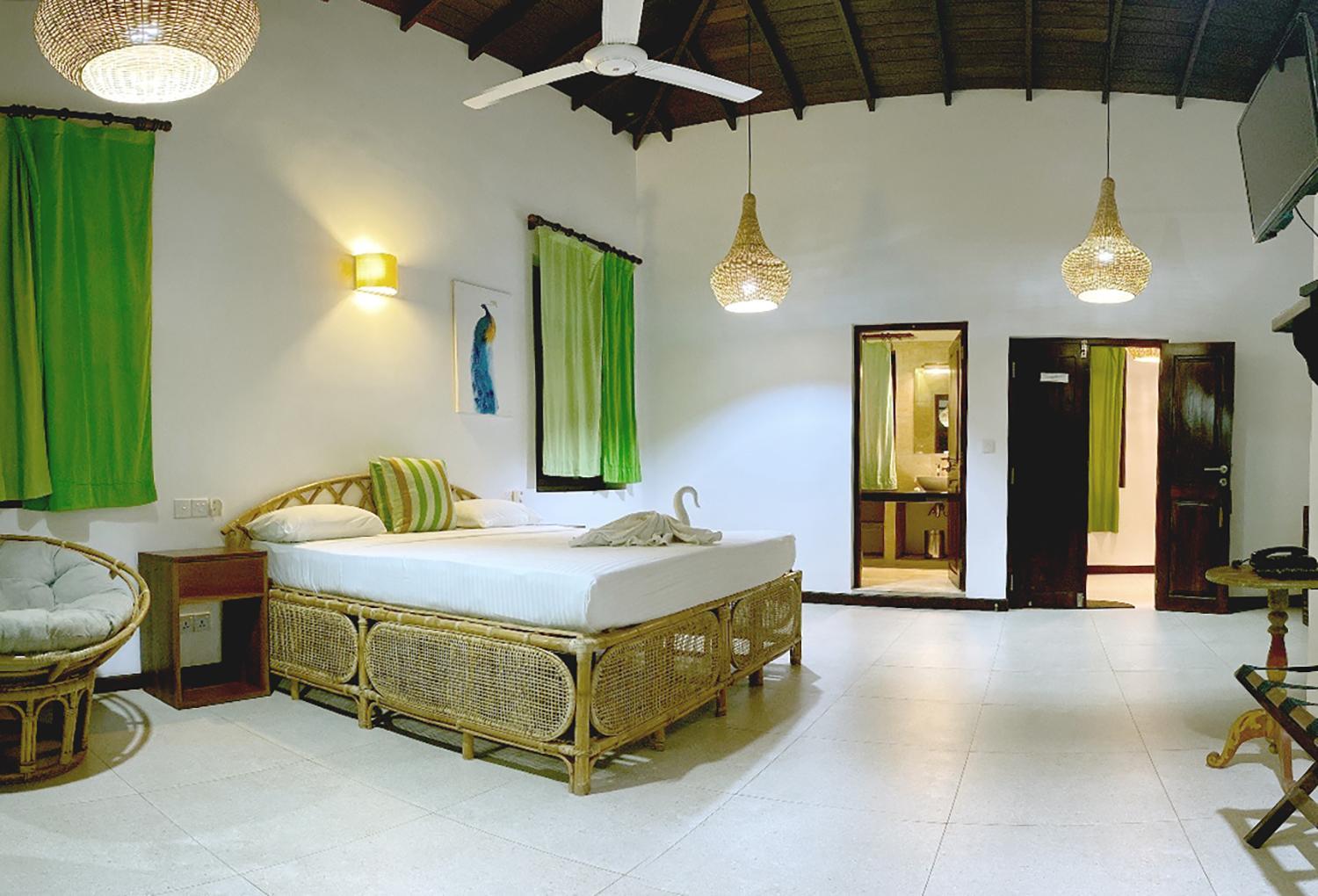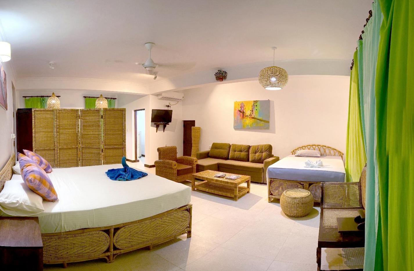 We had a spacious apartment nicely air-conditioned and good shower facilities. The pool area was great for lounging and for kids to enjoy. Nice touch with the outdoor shower near pool to rinse off too. The menu has lots of variety and the pizza and fresh fish selection was delicious. Fresh fruit juice every morning and I’d recommend the Sri Lankan omelette for breakfast if you like a bit of spice. The staff particularly the bar/restaurant were incredibly kind and we felt really looked after. Nothing was too much trouble for them. We enjoyed a live acoustic night with a local talented artist. The resort is literally on the beach. The beaches were stunning. There are safer areas to swim closer to the boat area and it seems to be an attractive spot for surfers. The staff organized travel for us to and from the resort to Arugum Bay (about 10-15mins drive in Tuk Tuk) and on our departure to Columbo which was super helpful. We would definitely stay again.