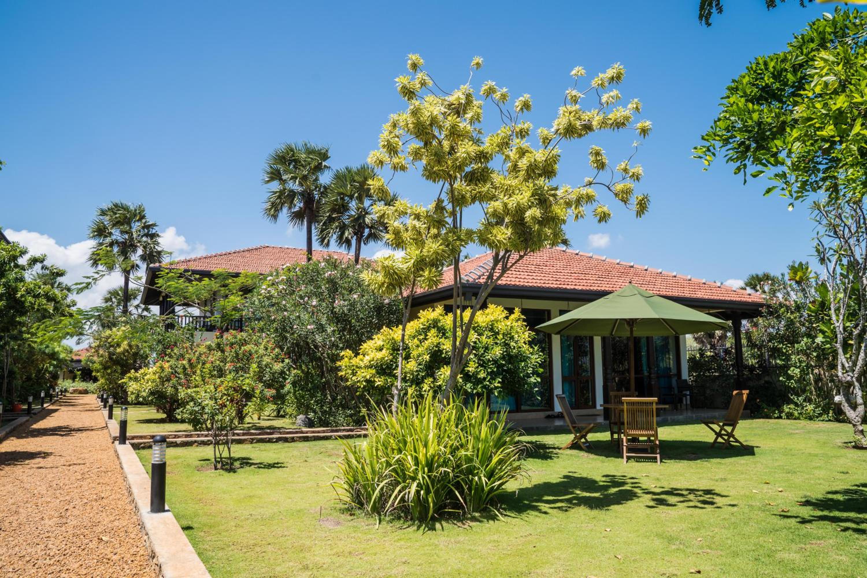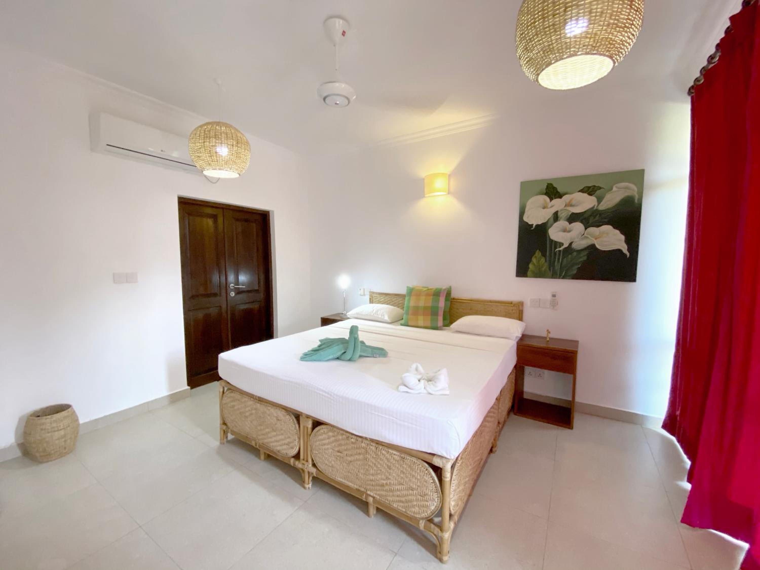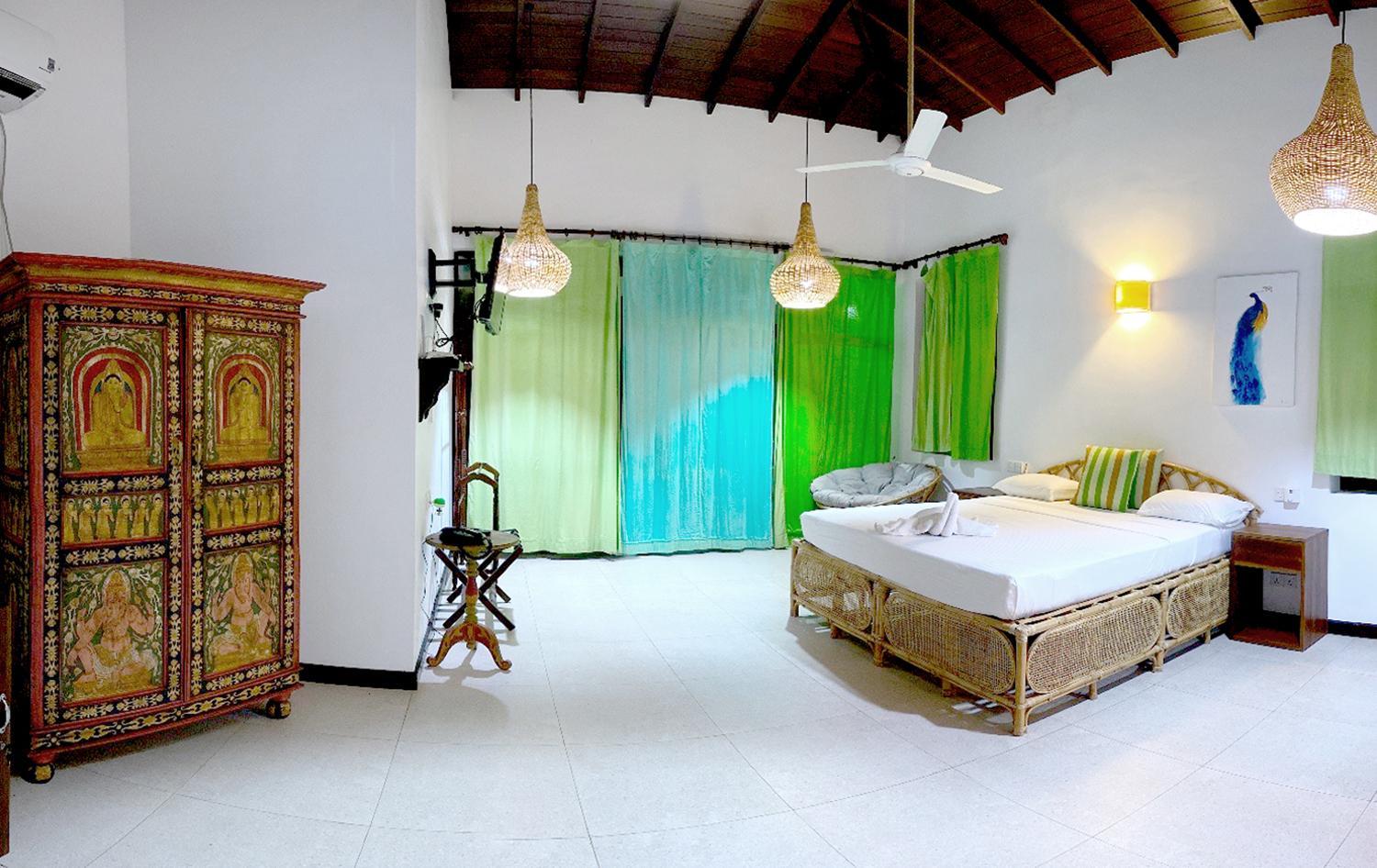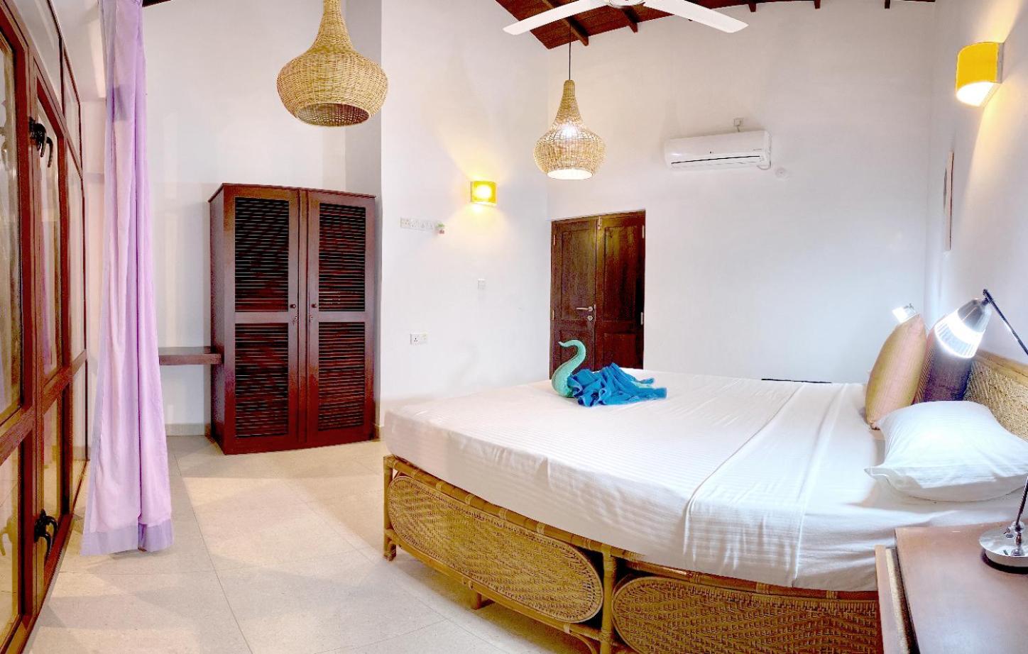 We had a spacious apartment nicely air-conditioned and good shower facilities. The pool area was great for lounging and for kids to enjoy. Nice touch with the outdoor shower near pool to rinse off too. The menu has lots of variety and the pizza and fresh fish selection was delicious. Fresh fruit juice every morning and I’d recommend the Sri Lankan omelette for breakfast if you like a bit of spice. The staff particularly the bar/restaurant were incredibly kind and we felt really looked after. Nothing was too much trouble for them. We enjoyed a live acoustic night with a local talented artist. The resort is literally on the beach. The beaches were stunning. There are safer areas to swim closer to the boat area and it seems to be an attractive spot for surfers. The staff organized travel for us to and from the resort to Arugum Bay (about 10-15mins drive in Tuk Tuk) and on our departure to Columbo which was super helpful. We would definitely stay again.