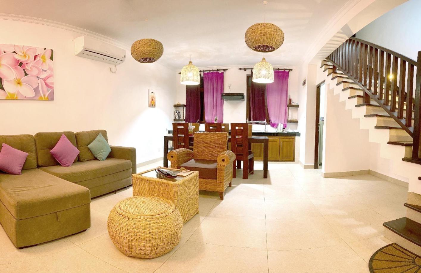 The rooms are spacious and comfortable, featuring large beds, air conditioning, multiple fans, and a fully equipped kitchen for those who want to prepare their own meals. Around the area, there are plenty of activities: surfing, safaris, quiet beaches like Peanut Farm Beach, and even walks through lagoons and mangroves. It’s the perfect combination of relaxation and adventure.