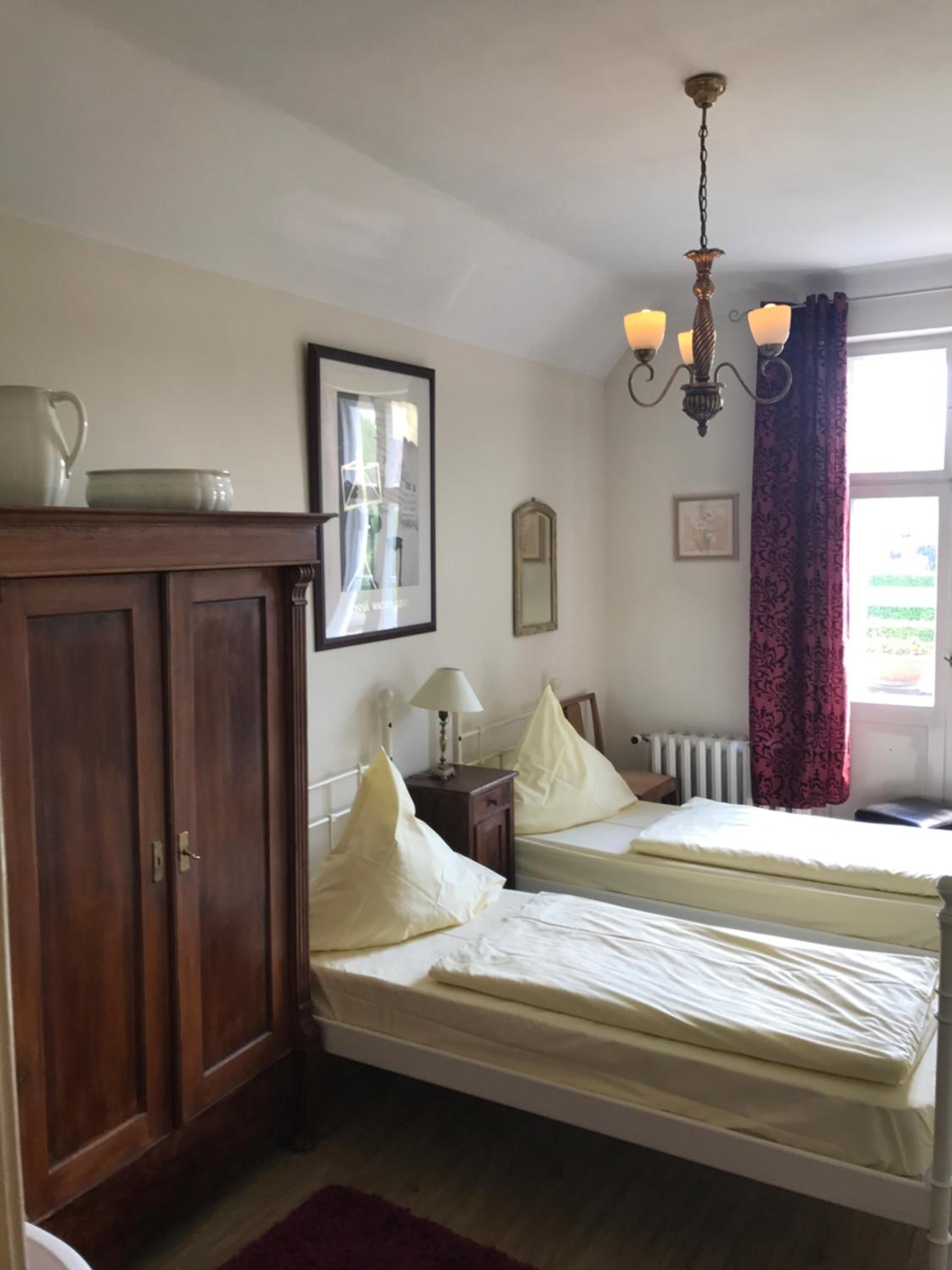 Die kleinen Zimmer im DG sind recht neu und gemütlich durch die Schrägen.