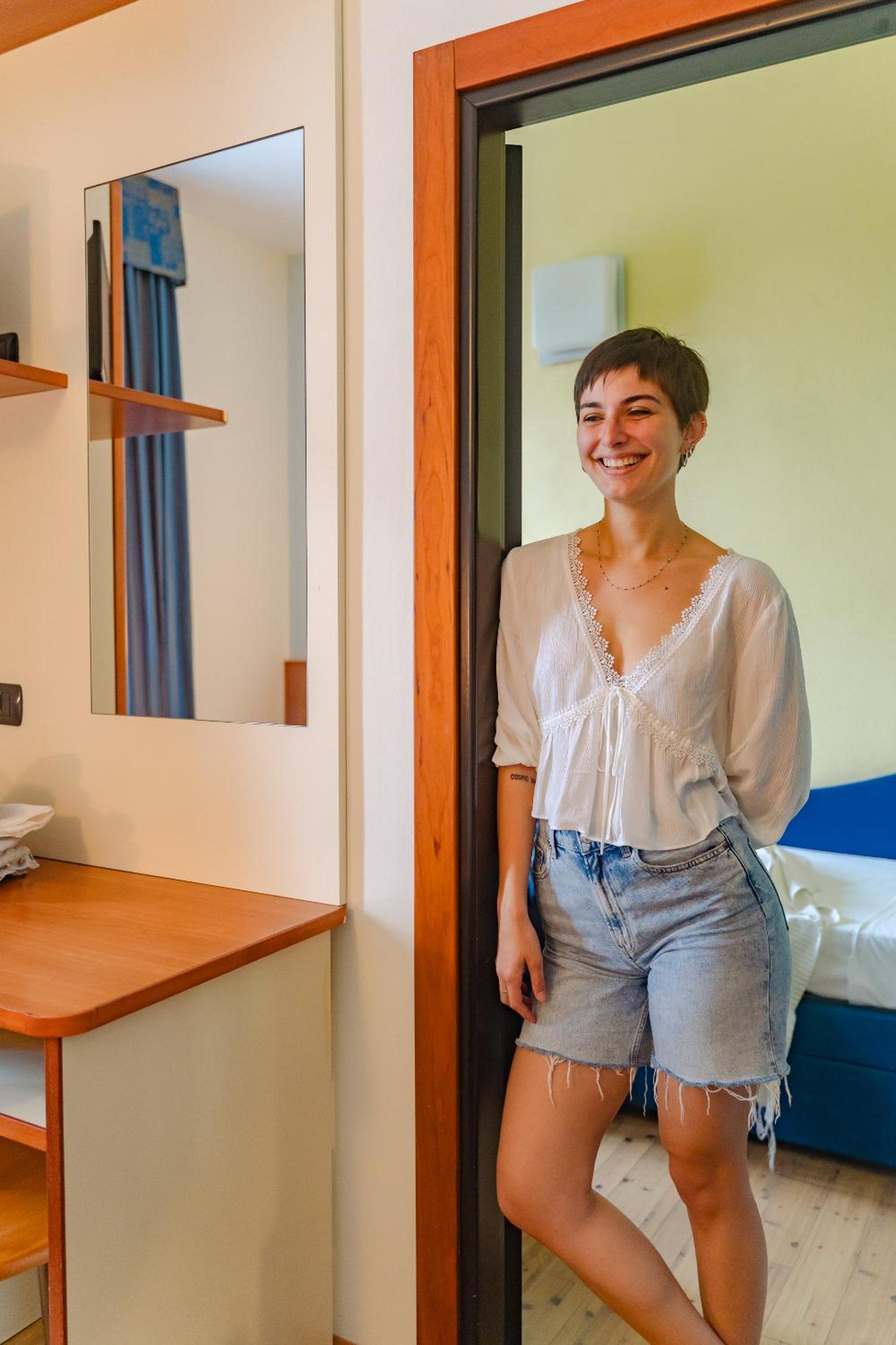 La camera è un po’ datata e con spazi piuttosto ristretti, ma nel complesso accogliente e funzionale